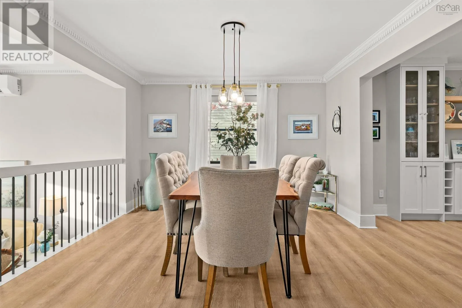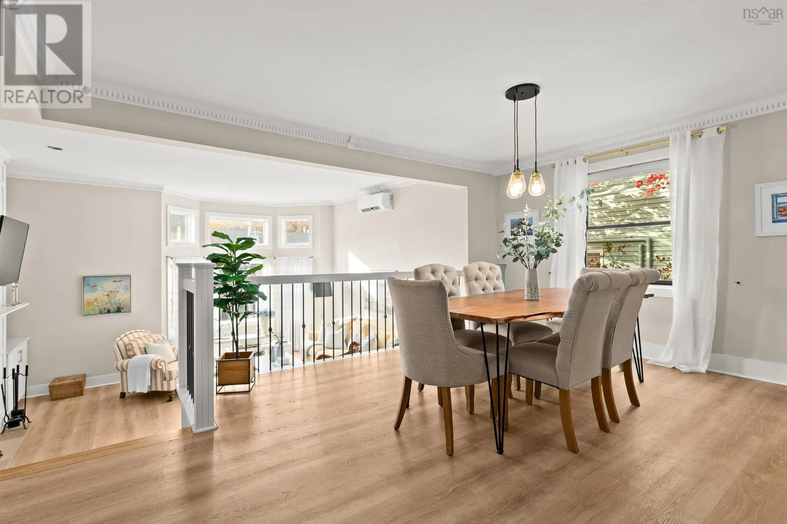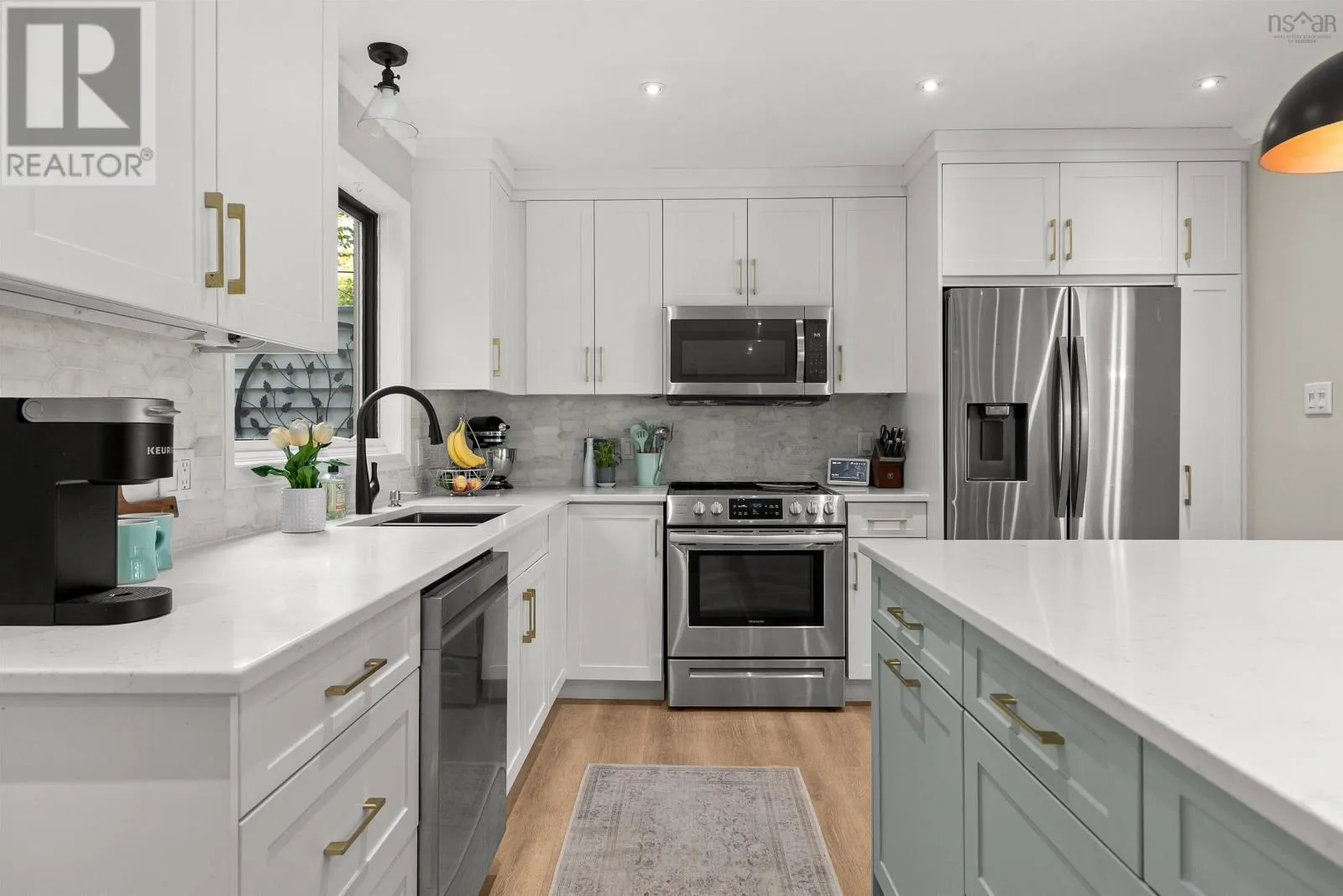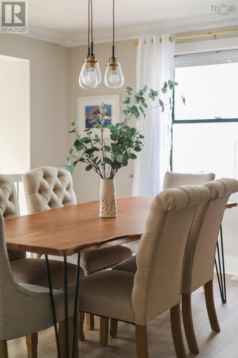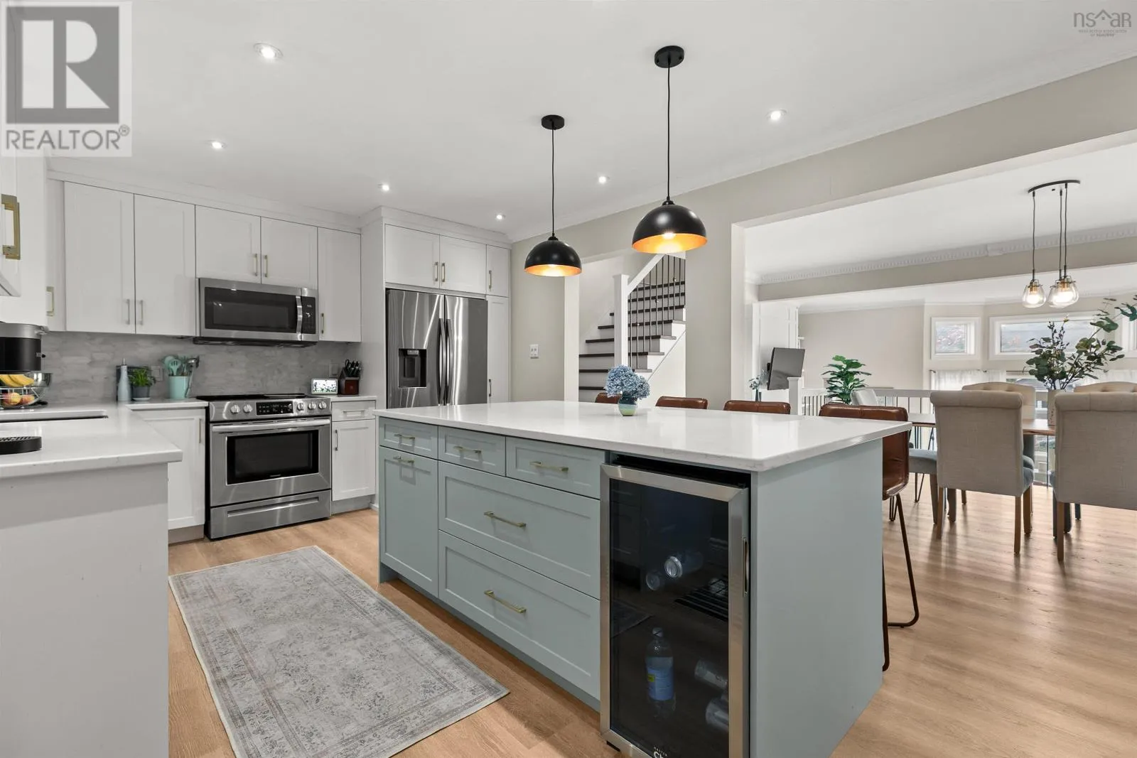 Purcell Cove Road to Anchor to Spinnaker Welcome to 201 Spinnaker Drive, an elegant seaside townhome in the highly sought-after Regatta Point community, one of Halifaxs most picturesque enclaves where coastal living meets urban convenience. Step inside to a spacious foyer with access to the garage, leading up to the second level featuring a bright bedroom or den and a full bathroom, ideal for guests or a home office. The third floor invites you to the heart of the home: a sunken living room with oversized windows and a cozy fireplace that set the tone for warmth and comfort. The adjoining dining area flows seamlessly into the custom Mother Hubbards kitchen (2022), a true showpiece complete with quartz countertops, a spacious island, built-ins, pendant lighting, and new appliances including a fridge and stove (2022), dishwasher (2023), and washer and dryer (2022). This level opens onto a private, sun-soaked deck surrounded by mature trees, the perfect spot to unwind or entertain. The home has been painted top to bottom (2022) with the front exterior refreshed (2025), adding to its crisp curb appeal. Upstairs, the expansive primary suite features dual closets and water views, while two additional bedrooms (currently combined for an extra-spacious layout) and a full main bath complete this level. The loft offers a versatile flex space filled with natural light from skylights, perfect for a studio, fourth bedroom, or peaceful retreat. Additional updates include two new ductless heat pumps (Dec 2023), a new front roof (2024), and thoughtful design upgrades throughout. Finished on all five levels with an attached garage, this townhome blends timeless style with modern convenience. Just steps from your door, enjoy scenic coastal walking trails, the Armdale Yacht Club, and the vibrant amenities of downtown HalifaxRegatta Point truly offers the best of both worlds: serene seaside living with the energy of the city at your fingertips. (id:27476)
