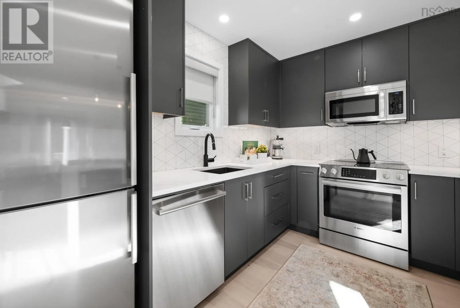 Morris St to Dresden This truly is an exceptional and rare find nestled in the heart of the historic Halifax Peninsula. This architecturally designed townhouse condo offers 2-3 bedrooms, one and a half bathrooms, and the highly coveted convenience of a private garage plus two outdoor parking spaces. The entire space is beautifully sun-drenched, courtesy of dramatic floor-to-ceiling windows and an open stairwell designed to draw light into every corner. The home features a newly renovated eat-in kitchen boasting sleek quartz countertops and top-of-the-line Bosch appliances. For cozy evenings, the living room includes a small balcony and a traditional wood-burning fireplace. The layout is designed for flexibility, with one bedroom/den/office on the main floor and two additional bedrooms situated privately on the third floor. The crowning feature is the top-floor access to a sunny, southwest-facing private rooftop patio, offering stunning views of the downtown skyline. The location is simply unbeatable, positioned just 1.5 blocks from Spring Garden Road and within easy walking distance of the hospital, universities, and all of downtown Halifax's best restaurants and shopping. This is urban luxury and convenience redefined. (id:27476)