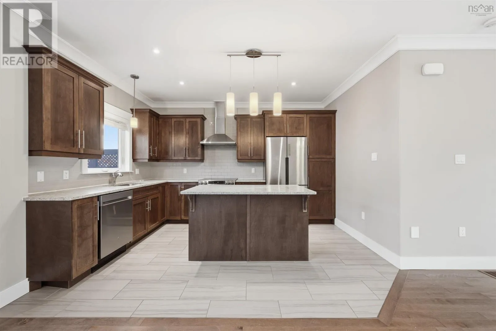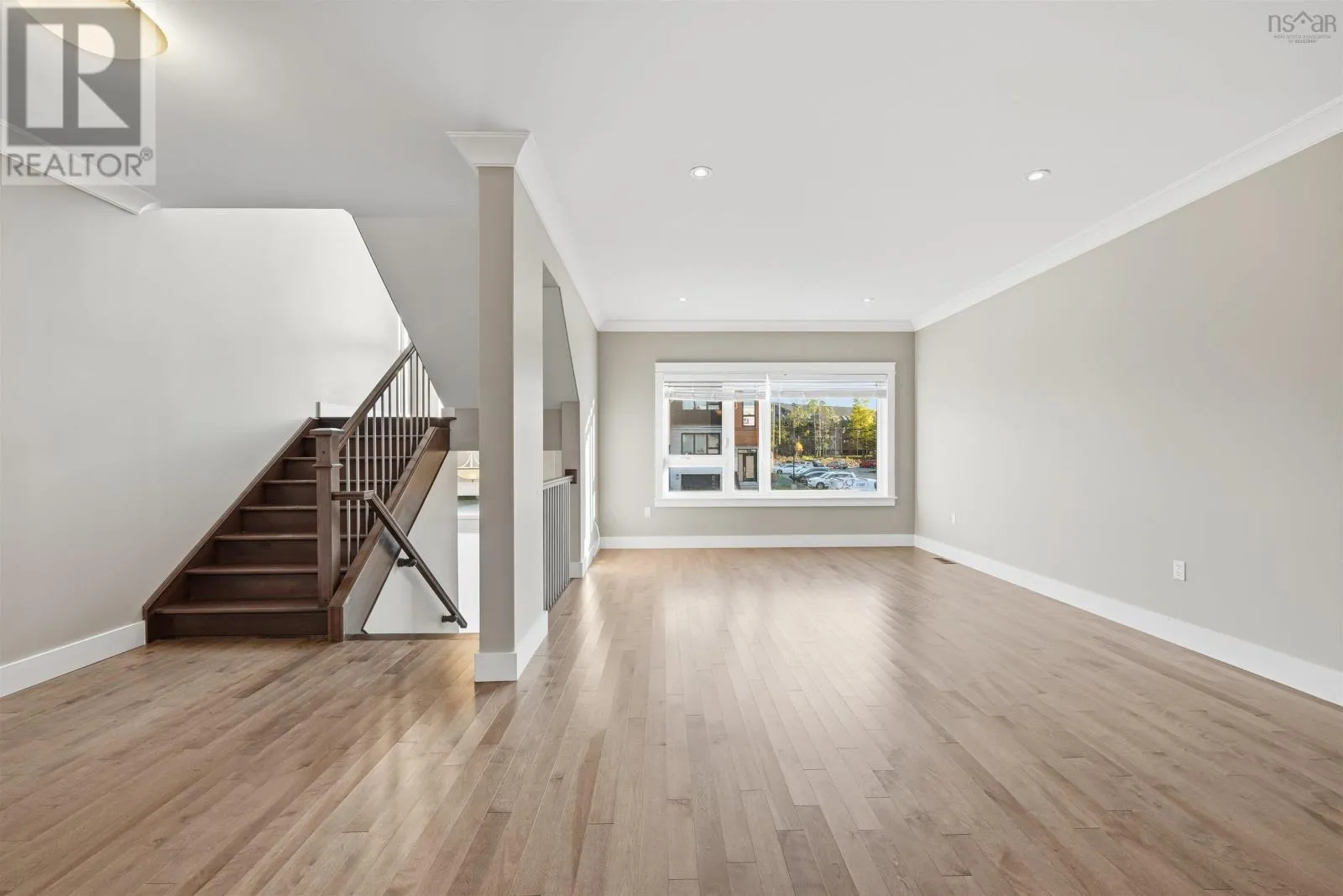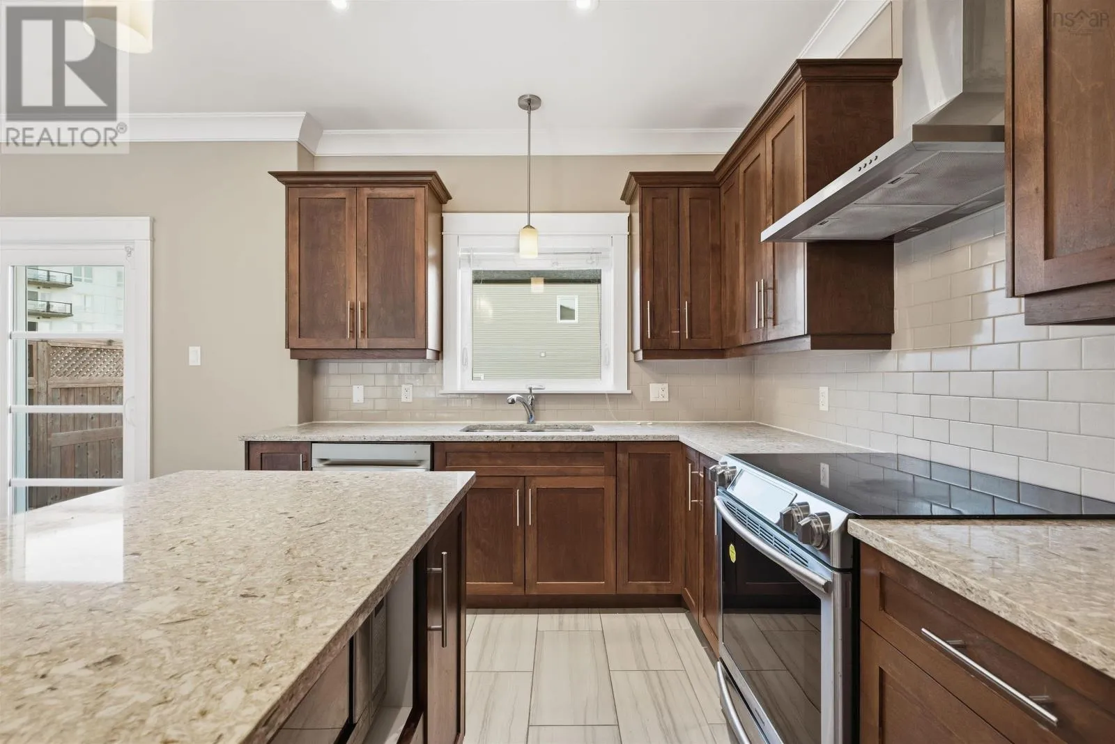 Dunbrack to Wentworth to Eliza Ritchie Welcome to this contemporary executive townhouse located in the highly sought-after Rockingham South community.Perfectly positioned just minutes from Highway 102, Bedford Highway, and all the conveniences of Clayton Park andBayers Lake, this home offers both tranquility and excellent accessibility. Set in a quiet, family-friendly neighbourhood, the property is filled with natural light streaming through large windows. The main floor features an inviting open-concept design with solid hardwood and ceramic flooring throughout. The modern kitchen impresses with granite countertops, stainless steel appliances, a large island ideal for gatherings, and direct access to a spacious deckperfect for outdoor relaxation or entertaining. A convenient powder room completes the main level. Upstairs, the bright and spacious primary bedroom includes a walk-in closet and a beautiful ensuite. Two additional bedrooms, a main bathroom, and a laundry area complete the upper floor, offering both comfort and practicality. The lower level provides access from a private lane to an oversized single-car garage, along with a versatile family or recreation room that could serve as a fourth bedroom or home office, plus another full bathroom. This home is ready for you to move in! (id:27476)