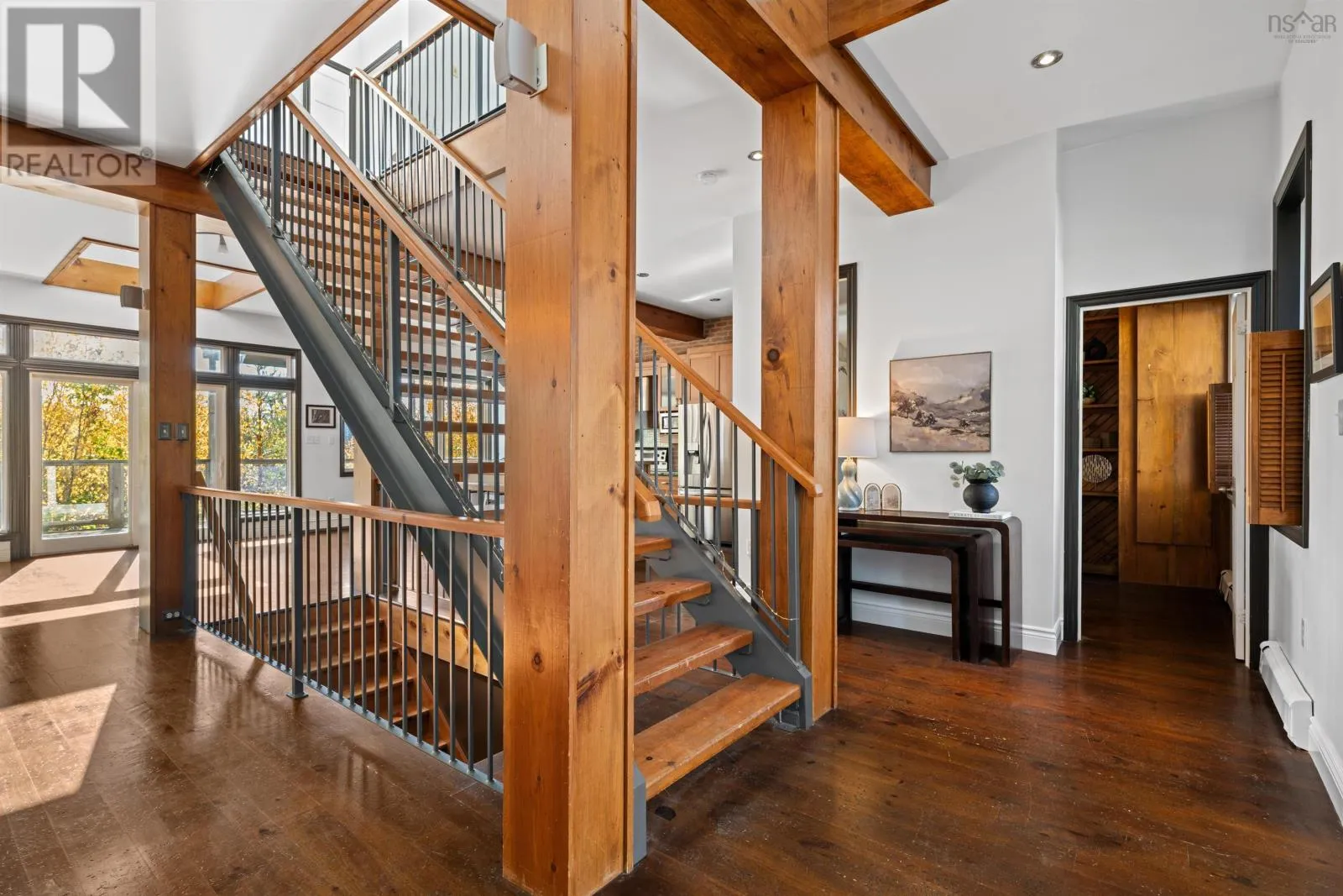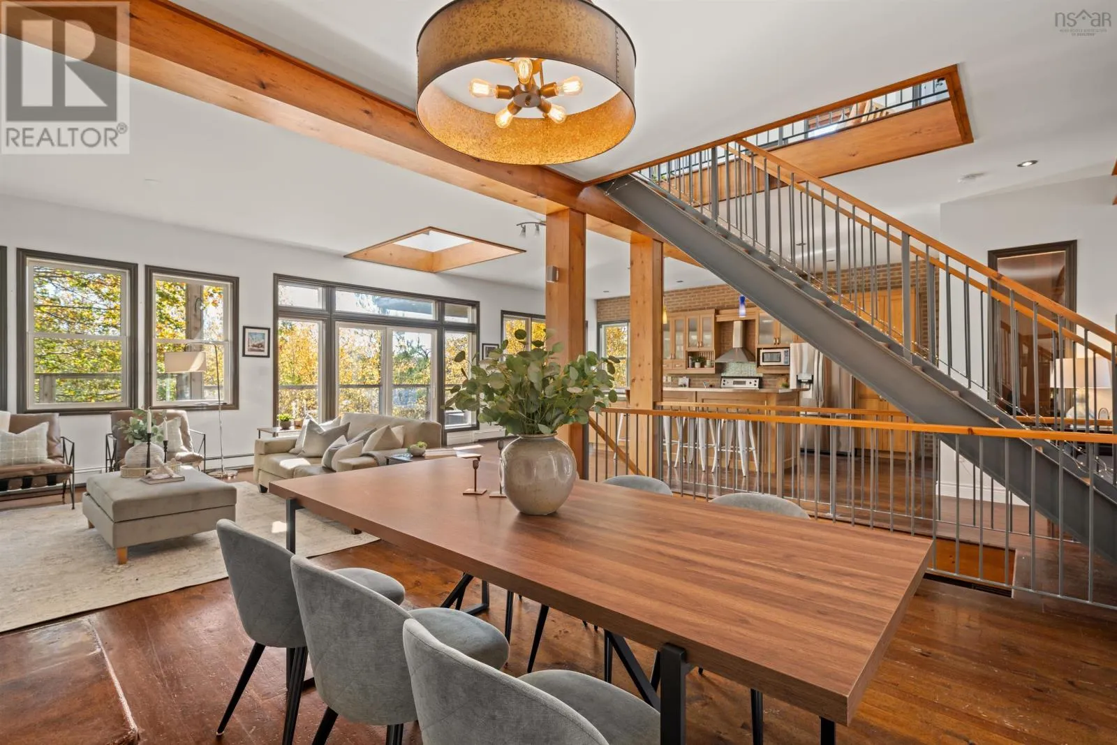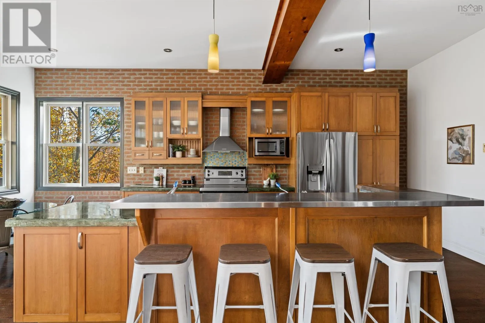 Oxford to Quinpool An entertainers dream with a musical heart, The Heights Studio stands proudly among the stately homes of Halifaxs South End. Perched high on Quinpool Road amid mature trees, this residence offers over 3,000 sq. ft. of inspired living - a rare blend of creativity, character, and comfort. Step inside and youll feel it immediately - the rhythm of a home where world-class musicians once performed, recorded, and gathered. The open layout flows naturally around a striking central staircase, where light spills across exposed brick and honey-toned pine floors - oh, if those floors could talk. Warm wood cabinetry, stainless-steel appliances, and a large island make the kitchen both stylish and social - the perfect spot for lively dinners or late-night jam sessions. The main level connects seamlessly to the dining and living areas, unified by rustic beams and an inviting sense of openness. An office and powder room add everyday functionality to the charm. Upstairs, the thoughtful layout ensures privacy, with each bedroom uniquely positioned so none share a wall. The primary suite features vaulted ceilings, a walk-out balcony with seasonal peeks of the Northwest Arm, a walk-in closet, and a serene ensuite with soaker tub. Between the secondary bedrooms, an airy mezzanine nook offers space for an office, creative retreat, or a fourth bedroom. The lower level brings the story full circle - a soundproofed, 13-foot-ceiling studio space complete with wet bar, theatre area, and room for a gym or workshop. Whether recording, relaxing, or entertaining, this level offers endless versatility. Outside, enjoy a low-maintenance lot with four parking spaces and a turn-around driveway - a rarity in the South End. In the coveted Tupper School District, moments from Flynn Park, the Waegwoltic Club, universities, hospitals, and downtown amenities yet just a short drive from peaceful country settings The Heights Studio is a home that lives and plays in perfect harmony. (id:27476)
