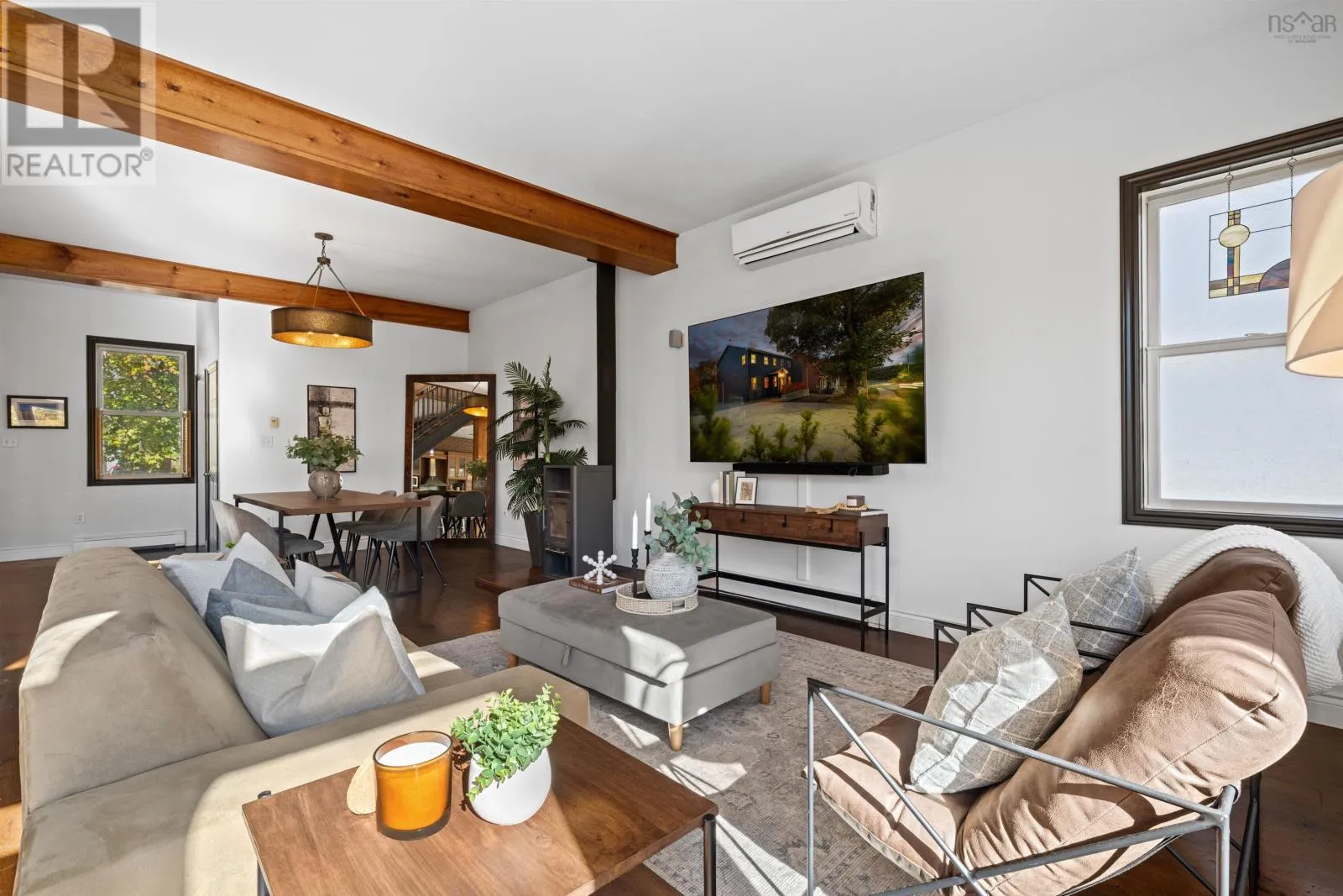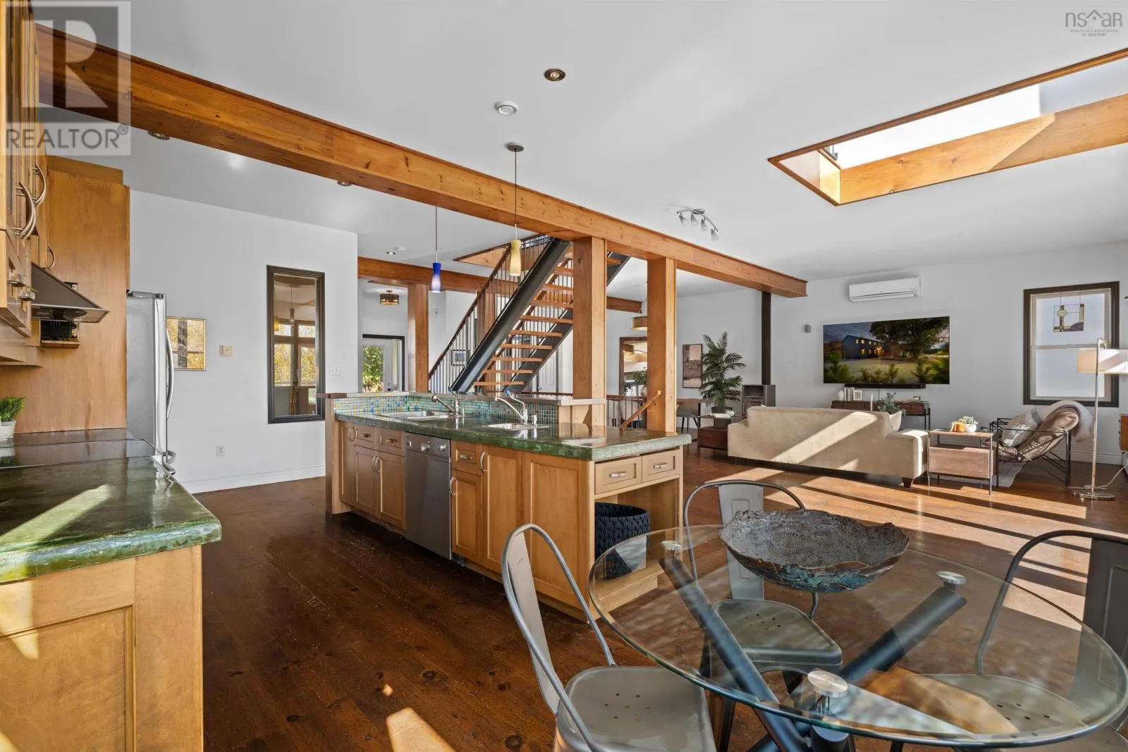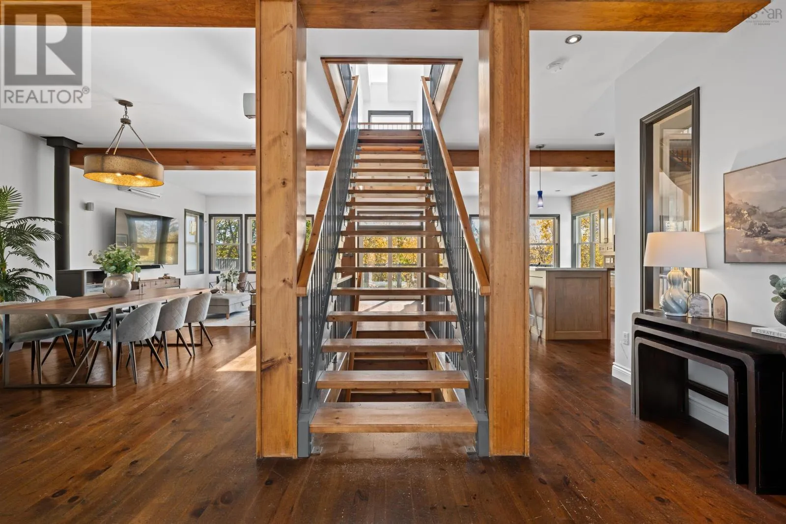 Oxford to Quinpool An entertainers dream with a musical heart, The Heights Studio stands proudly among the stately homes of Halifaxs South End. Perched high on Quinpool Road amid mature trees, this residence offers over 3,000 sq. ft. of inspired living - a rare blend of creativity, character, and comfort. Step inside and youll feel it immediately - the rhythm of a home where world-class musicians once performed, recorded, and gathered. The open layout flows naturally around a striking central staircase, where light spills across exposed brick and honey-toned pine floors - oh, if those floors could talk. Warm wood cabinetry, stainless-steel appliances, and a large island make the kitchen both stylish and social - the perfect spot for lively dinners or late-night jam sessions. The main level connects seamlessly to the dining and living areas, unified by rustic beams and an inviting sense of openness. An office and powder room add everyday functionality to the charm. Upstairs, the thoughtful layout ensures privacy, with each bedroom uniquely positioned so none share a wall. The primary suite features vaulted ceilings, a walk-out balcony with seasonal peeks of the Northwest Arm, a walk-in closet, and a serene ensuite with soaker tub. Between the secondary bedrooms, an airy mezzanine nook offers space for an office, creative retreat, or a fourth bedroom. The lower level brings the story full circle - a soundproofed, 13-foot-ceiling studio space complete with wet bar, theatre area, and room for a gym or workshop. Whether recording, relaxing, or entertaining, this level offers endless versatility. Outside, enjoy a low-maintenance lot with four parking spaces and a turn-around driveway - a rarity in the South End. In the coveted Tupper School District, moments from Flynn Park, the Waegwoltic Club, universities, hospitals, and downtown amenities yet just a short drive from peaceful country settings The Heights Studio is a home that lives and plays in perfect harmony. (id:27476)