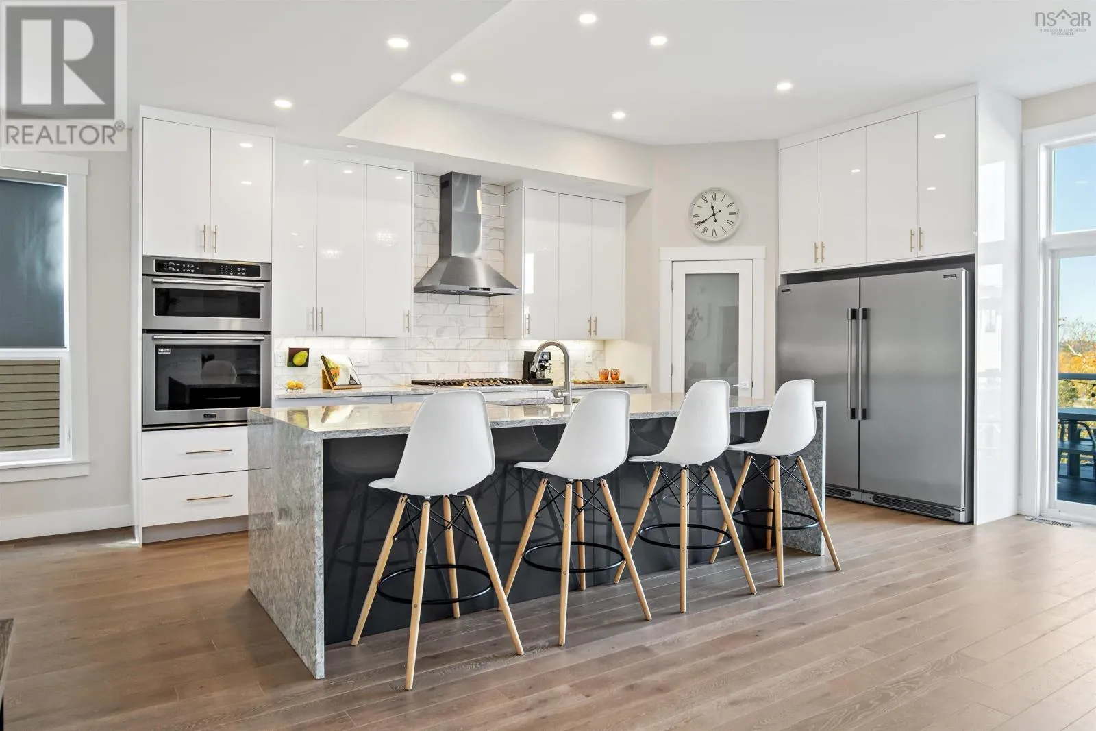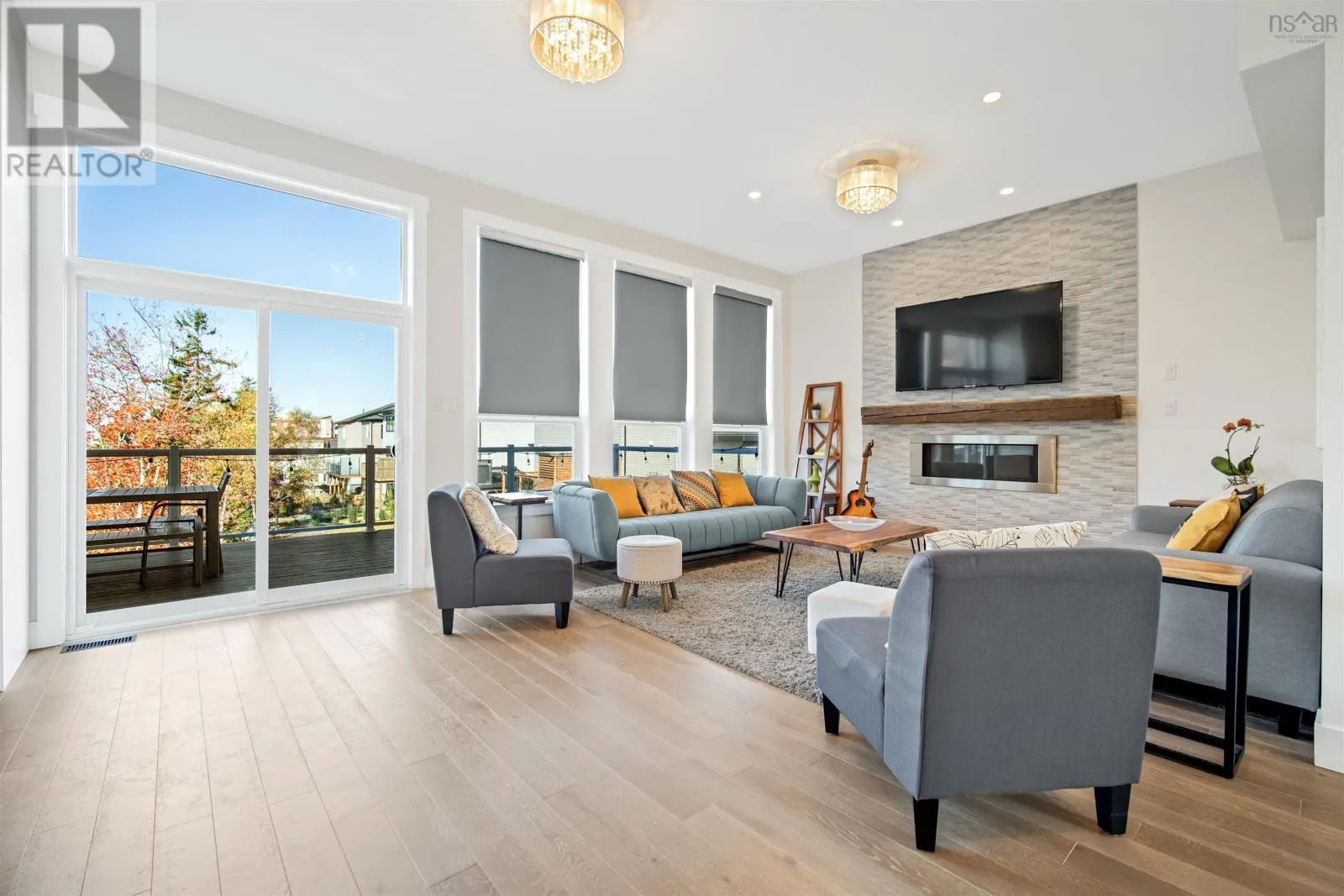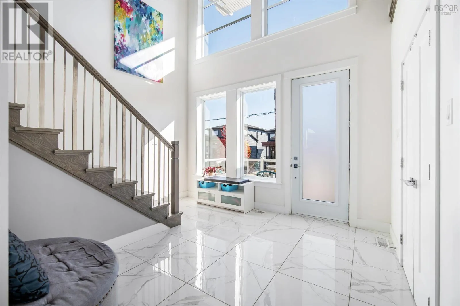 Larry Uteck Blvd. to Starboard Drive to Transom Drive Welcome to 322 Transom Drive, a stunning 5-bedroom, 3.5-bath executive home offering over 3,800 sq. ft. of meticulously crafted living space in one of Halifaxs most desirable neighbourhoods. Perfectly blending modern design, timeless comfort, and functionality, this luxurious home showcases exceptional craftsmanship and refined sophistication throughout. Step into the grand two-storey foyer, where 18-foot ceilings and abundant natural light create an unforgettable first impression. The open-concept main level features 9-foot ceilings and a seamless flow between the living, dining, and kitchen areas ideal for everyday living and elegant entertaining. At the heart of the home lies a chef-inspired custom designed kitchen with floor-to-ceiling custom cabinetry, quartz countertops with double waterfall edges, a large centre island, walk-in pantry, and premium stainless-steel appliances, including a gas range. The adjoining dining area and family room, complete with a cozy natural gas fireplace and three soaring windows open onto an expansive back deck, perfect for outdoor gatherings overlooking the landscaped yard. Upstairs, the primary suite is a true retreat, featuring a spa-inspired ensuite with a freestanding soaker tub, custom tiled shower, double vanity, and both a walk-through closet and an additional step-down walk-in closet. Two additional spacious bedrooms, a main bath with quartz countertops, and a convenient upper-level laundry room complete this level. The fully finished walk-out lower level offers two more bedrooms, a large recreation room, and a full bathroom, ideal for guests, a home gym, or a media space. Year-round comfort is ensured with a fully ducted natural gas heat pump system for efficient heating and cooling. Located just minutes from top-rated schools, parks, Larry Uteck shopping plazas, restaurants, and walking trails, this home offers the ultimate blend of elegance, comfort, and convenience in one of Halifaxs most sought-after commun (id:27476)