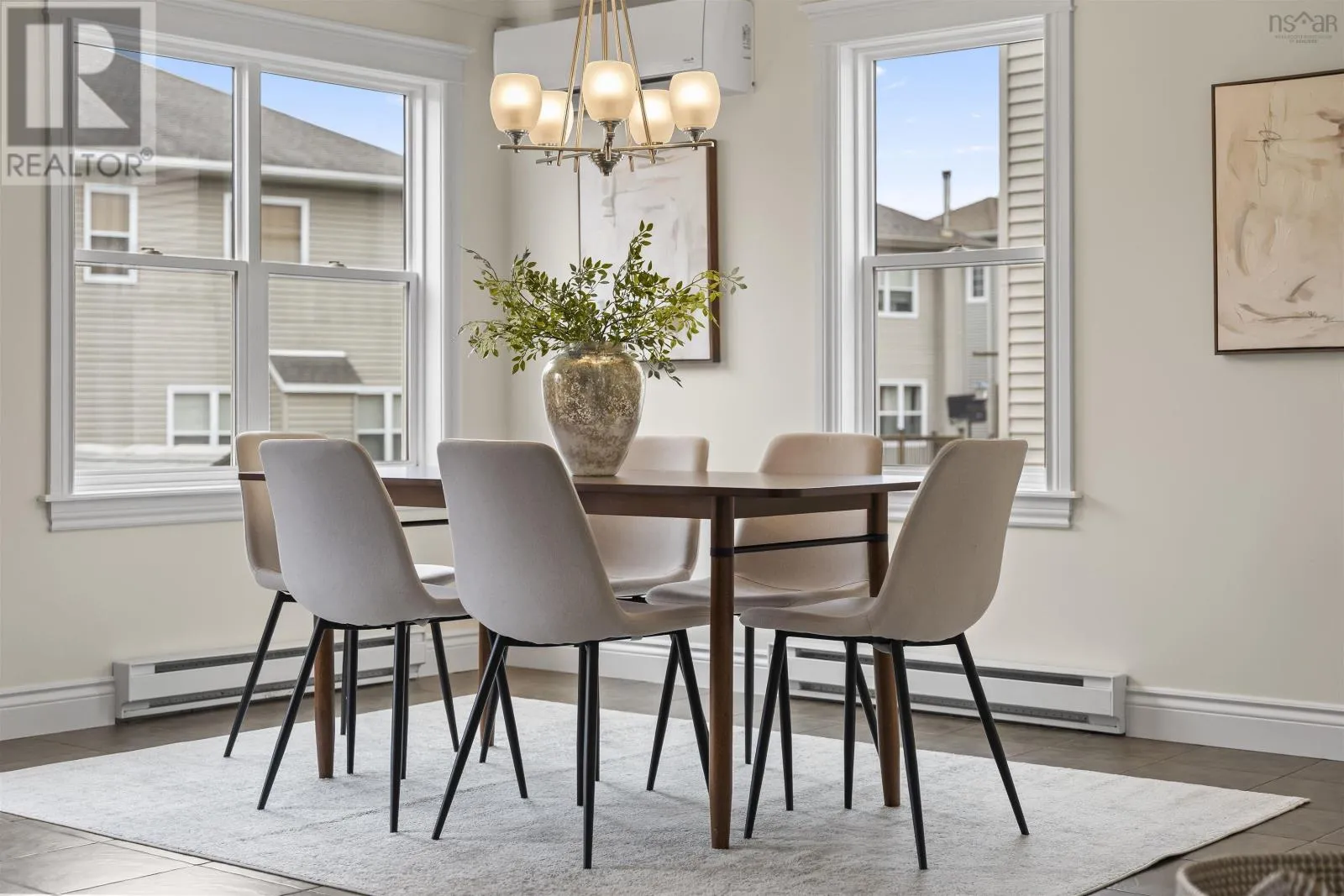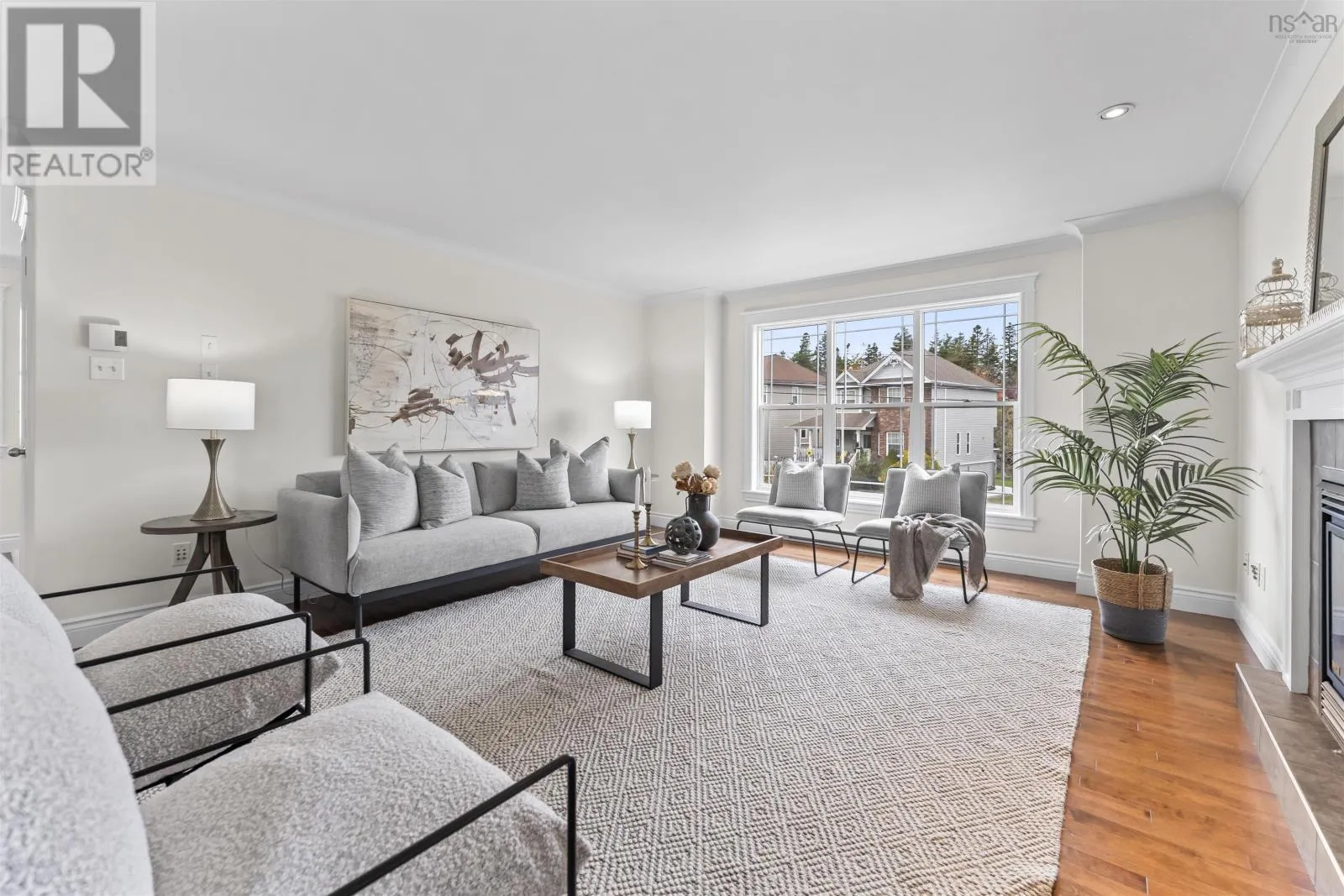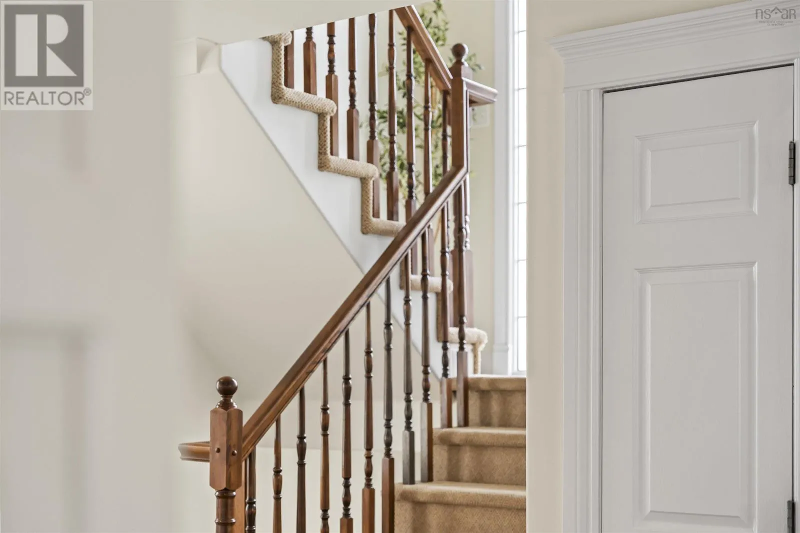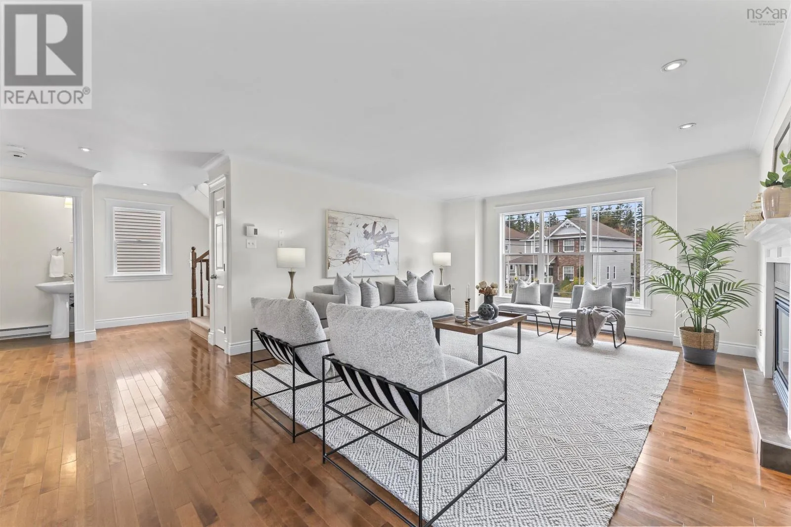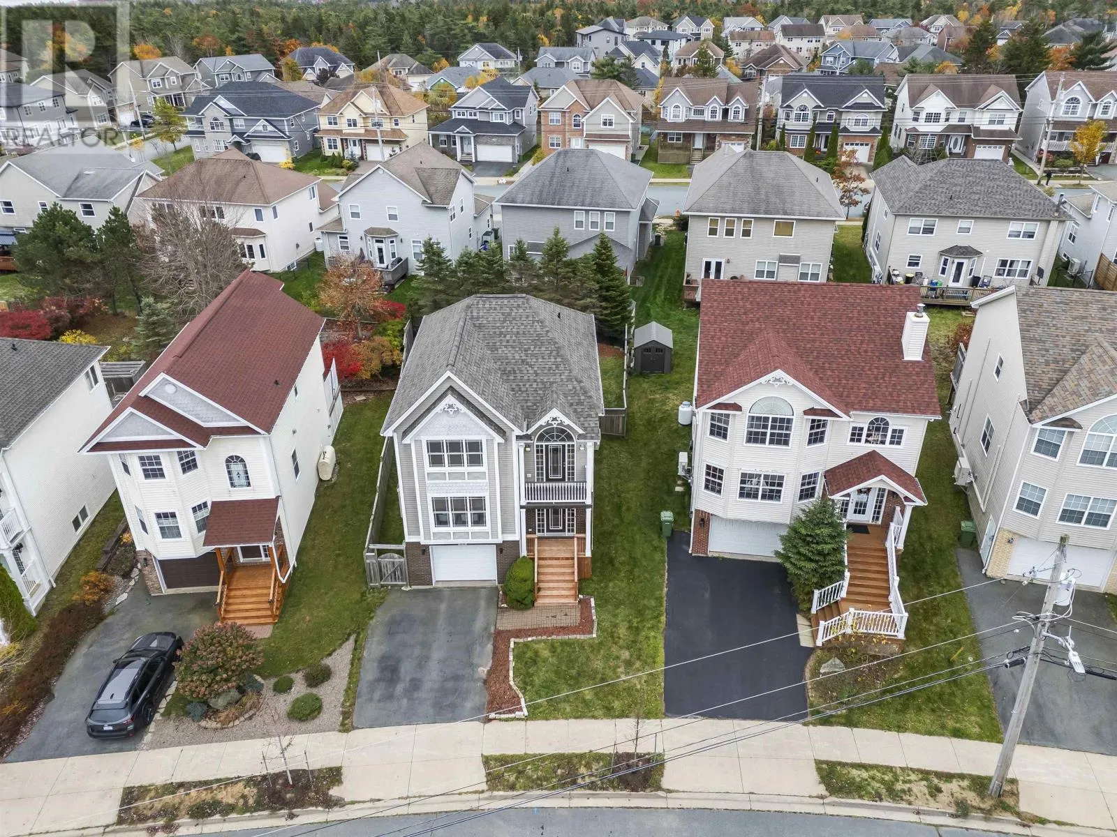 Larry Uteck Boulevard to Starboard Drive to Cutter Drive Your happily ever after awaits in the beautiful Royale Hemlocks neighbourhood! Perfectly positioned on a fully fenced lot near excellent schools and scenic parks, this stunning family home is less than 30 minutes to Downtown Halifax and moments from everyday amenities. Explore the famous Heart Shaped Pond at nearby Hemlock Ravine Park or tire out the kids at Transom Drive Park playground. Inside, the spacious layout is filled with natural light from large windows, showcasing gleaming hardwood flooring and elegant crown moulding on the main level. The kitchen offers custom oak cabinetry, stainless steel appliances, and an abundance of both counter and storage space, making it ideal for everyday life and entertaining. The open concept main level also includes a bright living area with propane fireplace and a convenient powder room for guests. Upstairs, enjoy the charming balcony, generous secondary bedrooms, and a sprawling primary suite encompassing over 300 sq. ft. with a walk-in closet and spa inspired ensuite. Spend your mornings sipping coffee on the brand new deck and your evenings cozy by the fireplace. Take comfort in a ductless heat pump for year round efficiency and have peace of mind with a brand new roof with a 25-year transferable warranty. Your next chapter begins here in Royale Hemlocks, where comfort, convenience and charm perfectly align. (id:27476)