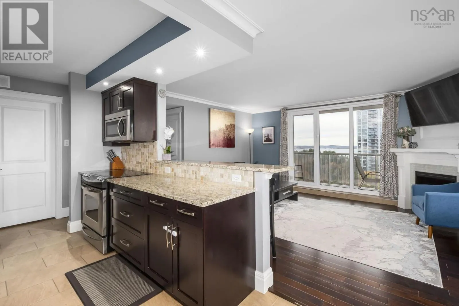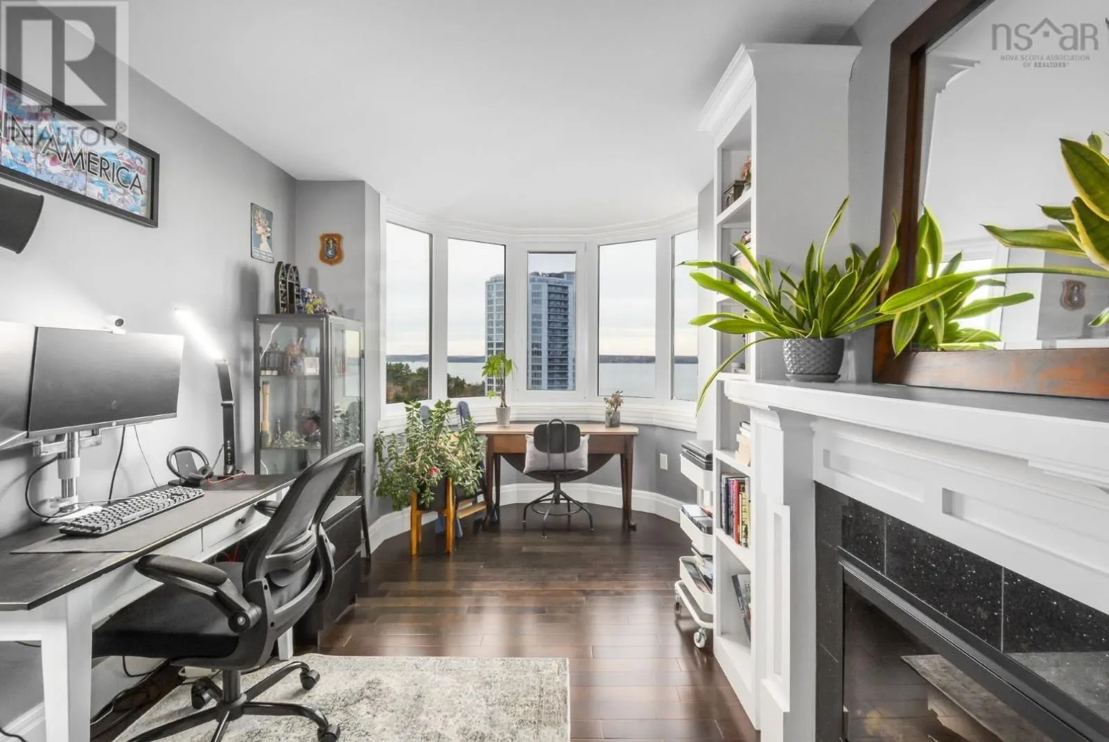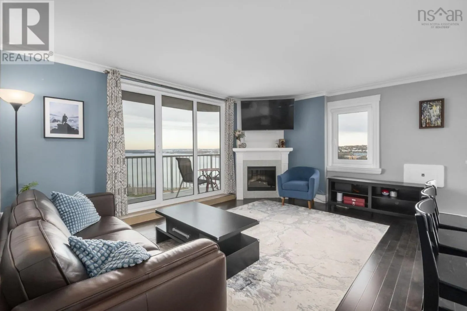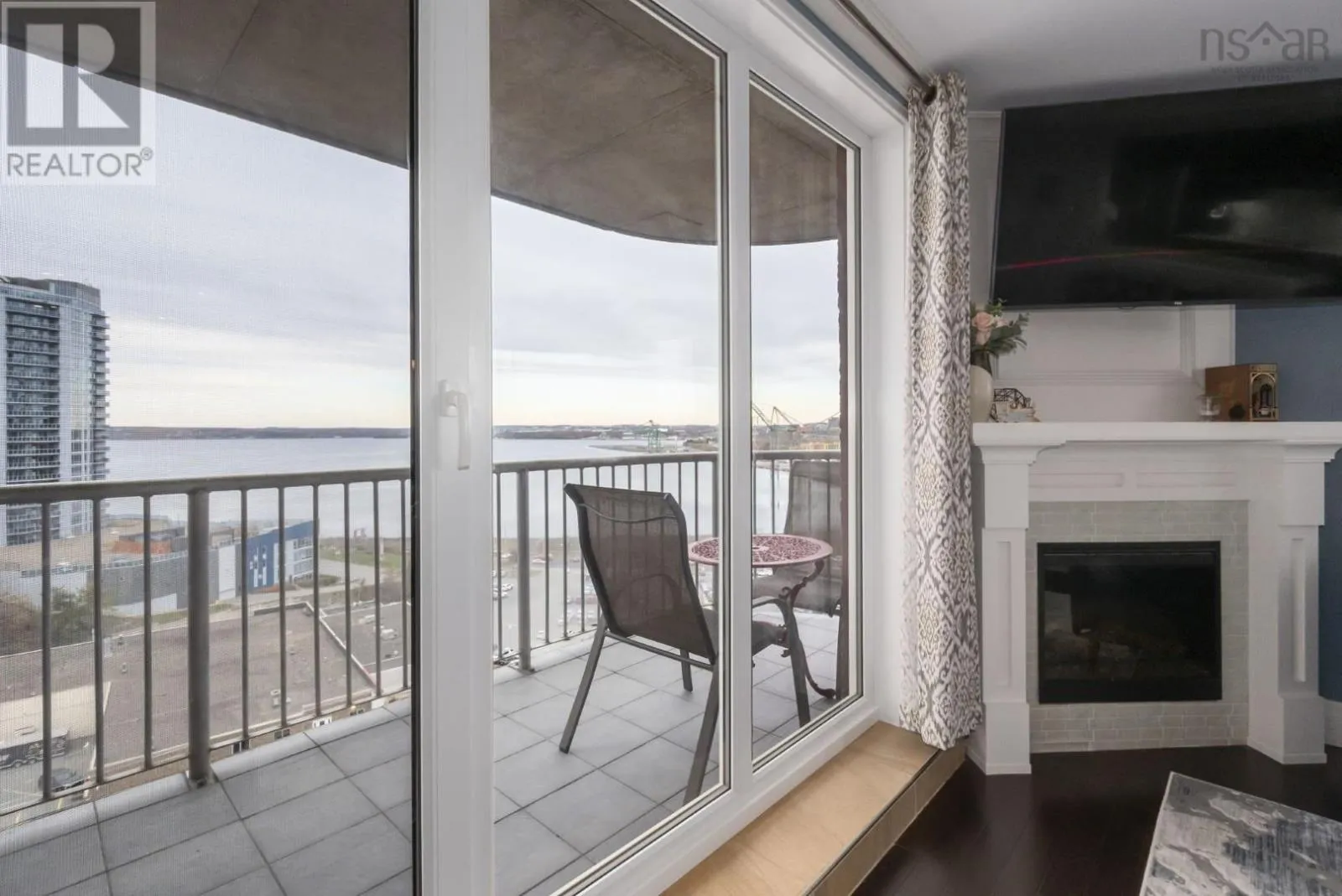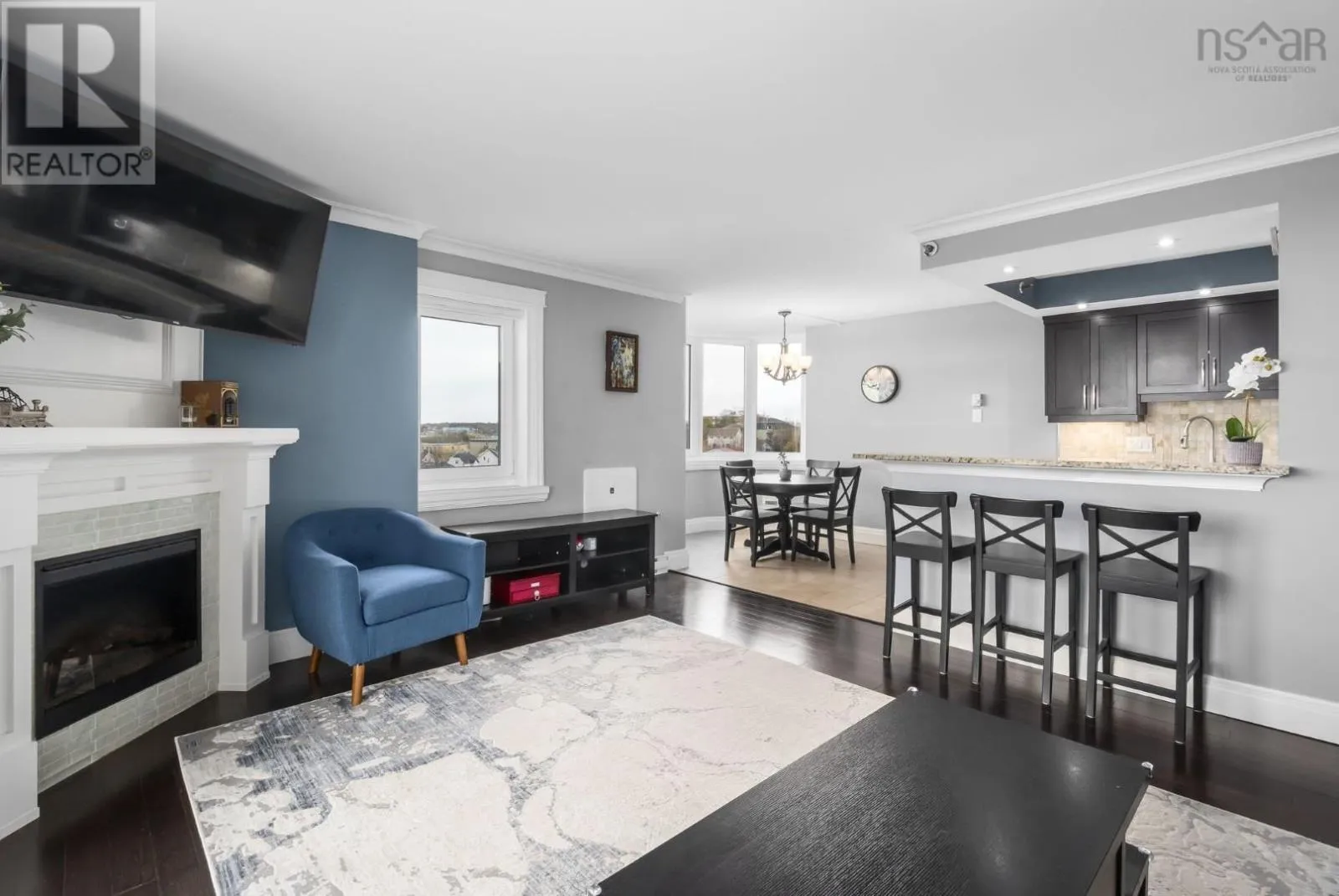 Lacewood or Titus to Vimy, left before Centennail arena Enjoy stunning harbour views from every window in this bright 3-bedroom, 2-bath condo! The open-concept living and dining area features an electric fireplace and walkout to a private balcony, while the well-planned kitchen flows seamlessly into the main space perfect for entertaining or unwinding at home. The primary suite offers a walk-in closet and ensuite, and the third bedroom, with its electric fireplace and custom built-ins, makes an ideal home office or den. Thoughtful details include an in-unit laundry room and a vent opening designed for easy connection of a portable AC unit. With a prime location just minutes from downtown Halifax, Bayers Lake, and all amenities, this condo combines comfort, style, and convenience with unbeatable views of the harbour, ships, and city lights. (id:27476)
