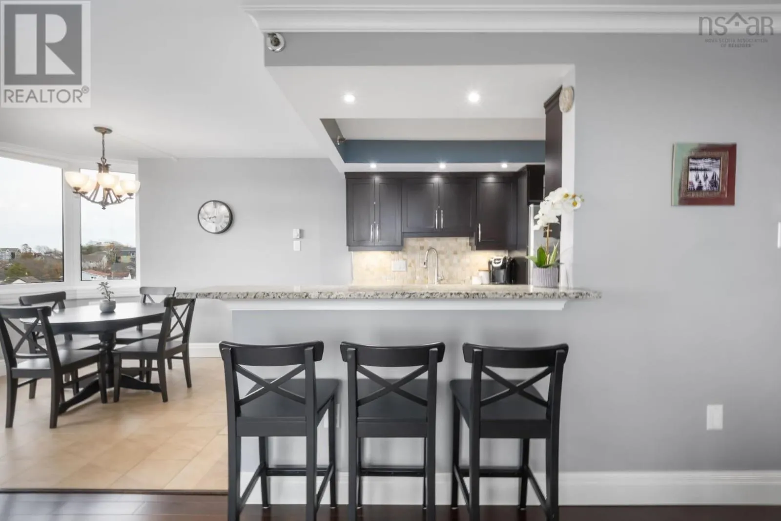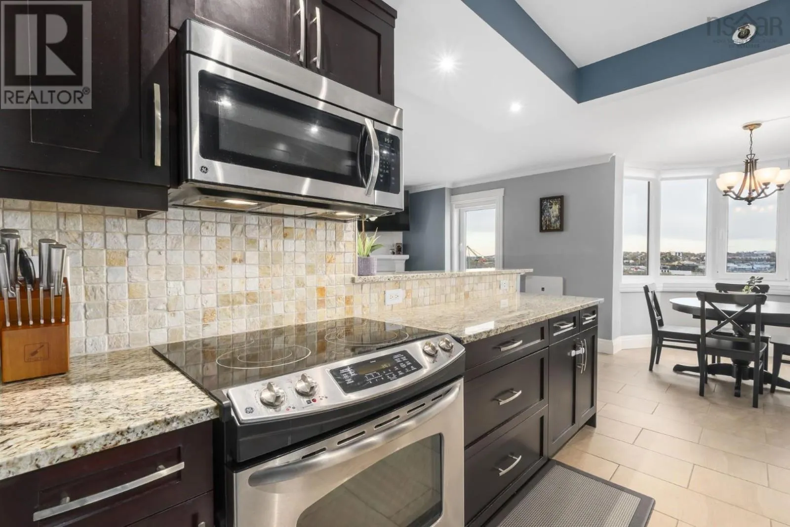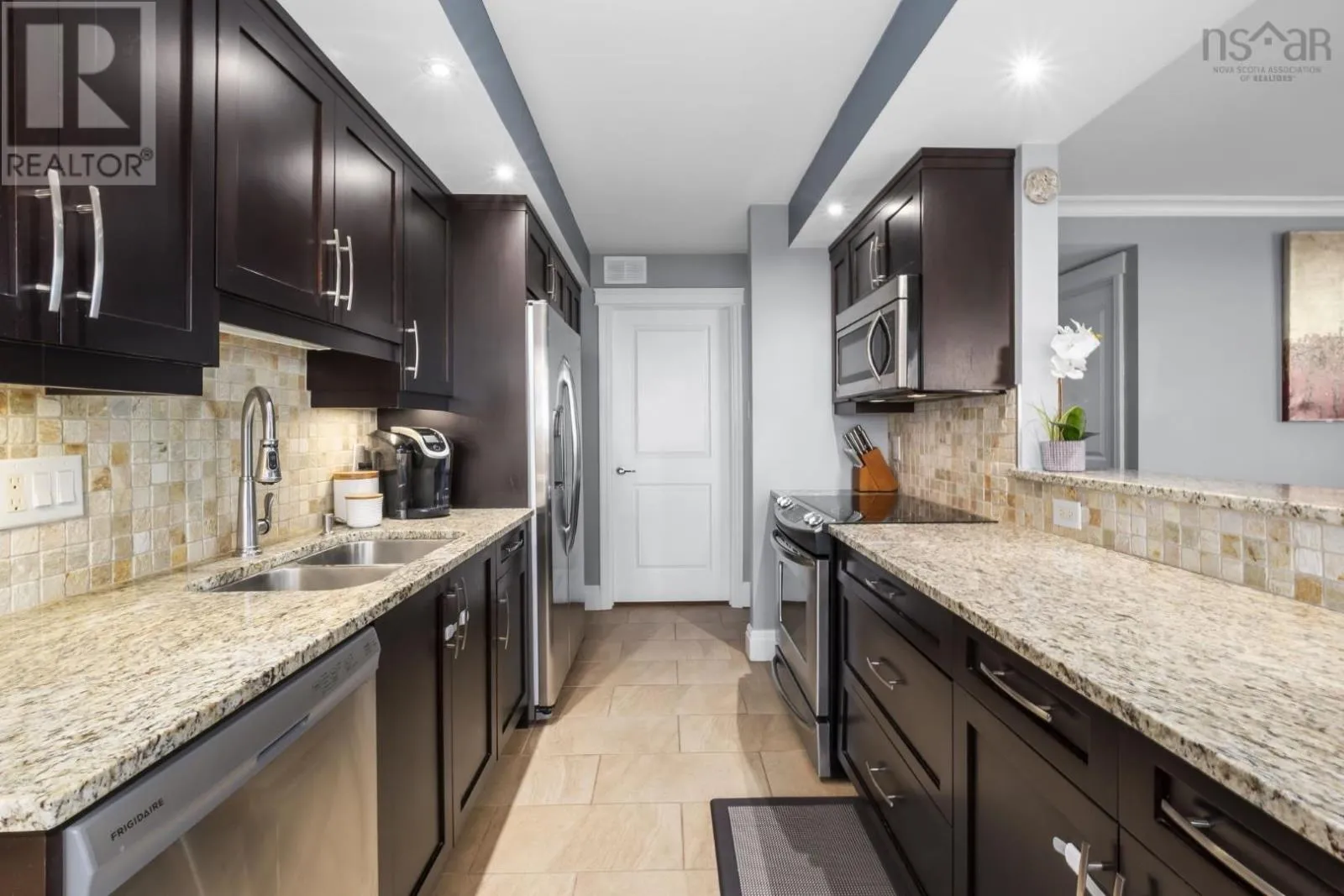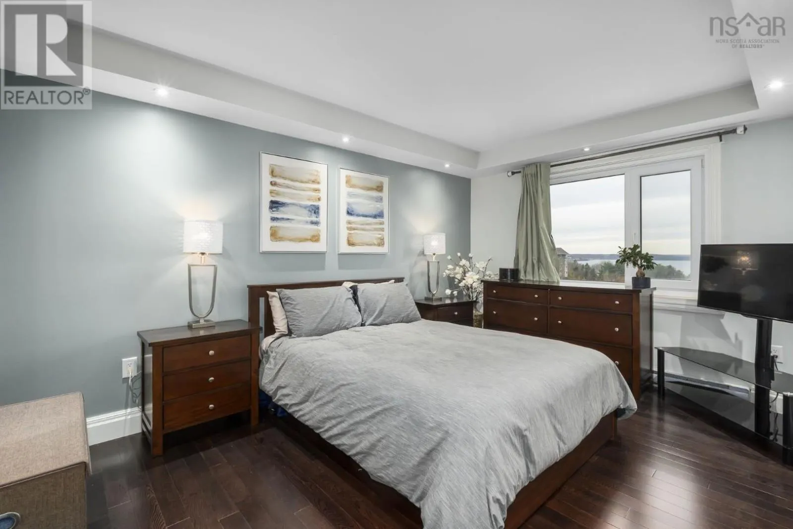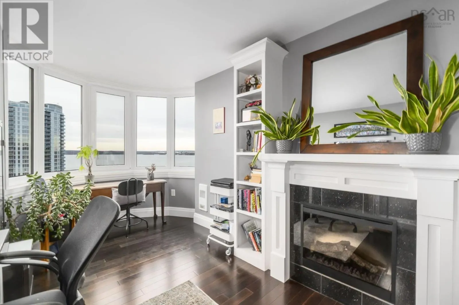 Lacewood or Titus to Vimy, left before Centennail arena Enjoy stunning harbour views from every window in this bright 3-bedroom, 2-bath condo! The open-concept living and dining area features an electric fireplace and walkout to a private balcony, while the well-planned kitchen flows seamlessly into the main space perfect for entertaining or unwinding at home. The primary suite offers a walk-in closet and ensuite, and the third bedroom, with its electric fireplace and custom built-ins, makes an ideal home office or den. Thoughtful details include an in-unit laundry room and a vent opening designed for easy connection of a portable AC unit. With a prime location just minutes from downtown Halifax, Bayers Lake, and all amenities, this condo combines comfort, style, and convenience with unbeatable views of the harbour, ships, and city lights. (id:27476)