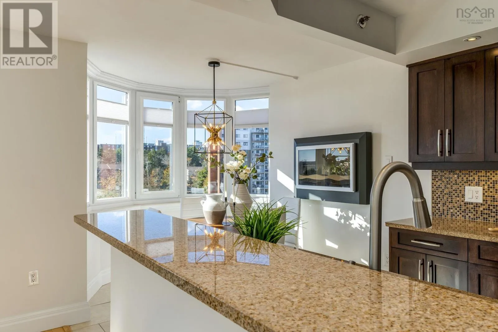Lacewood to Vimy Ave. Welcome to Unit 710 at the infamous Granbury Place, a one-of-a-kind, inviting two-bedroom, two-full-bath condo offering flexible living space in a well-managed building with fantastic amenities. This thoughtfully designed layout features a spacious in-unit coat and storage closet, hardwood flooring in the main living areas, updated ceramic flooring throughout, custom blinds, and fresh paint. The open eat-in kitchen offers great functionality with an extended coffee or beverage bar with a wine fridge, plus extra seating at the peninsula. The spacious living room opens to a private balcony, an added bonus for fresh air and relaxation, and a feature only some units offer. Both bedrooms are generously sized, with the primary featuring a walk-through closet leading to a full ensuite. A second full bathroom adds convenience for guests or shared living, along with a linen closet for extra storage and in-unit laundry with a hot water tank updated in 2021. Granbury Place is known for its strong management, live-in superintendent and general manager, fitness room, common room, and two high-speed elevators with backup generators, and the windows were replaced post-Covid for added peace of mind. Parking options include free outdoor parking or secure underground parking for $100/month. Condo fees are $446.50 and cover building maintenance and shared amenities. Centrally located near shopping, transit, parks, and all the conveniences of Clayton Park, Unit 710 offers comfort, practicality, and great value! (id:27476)