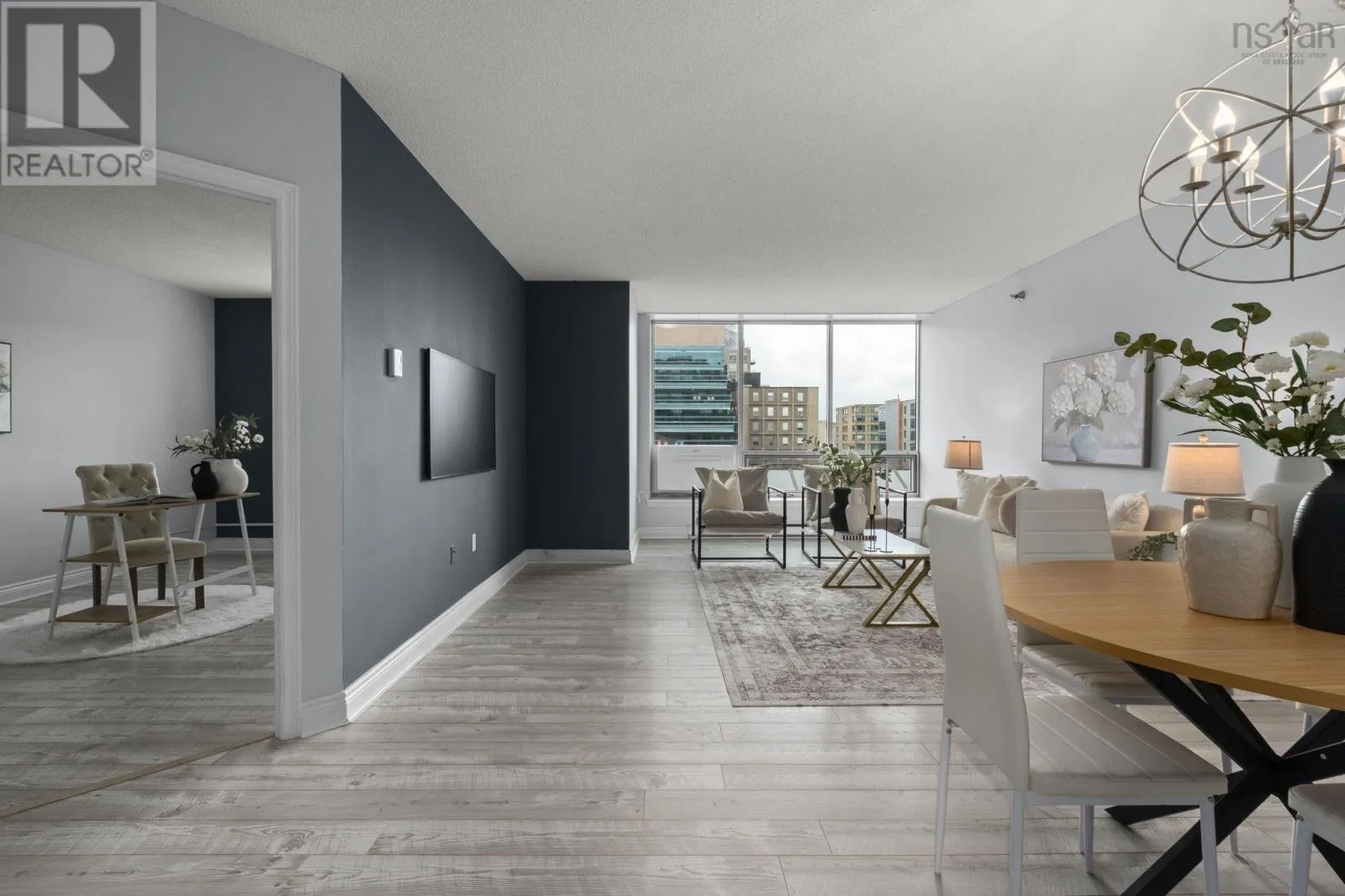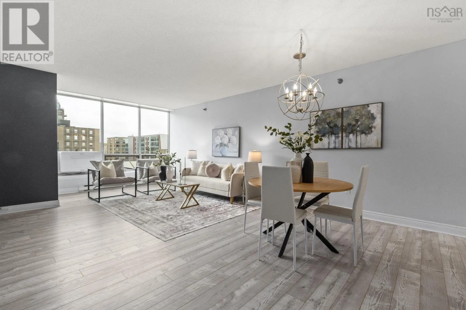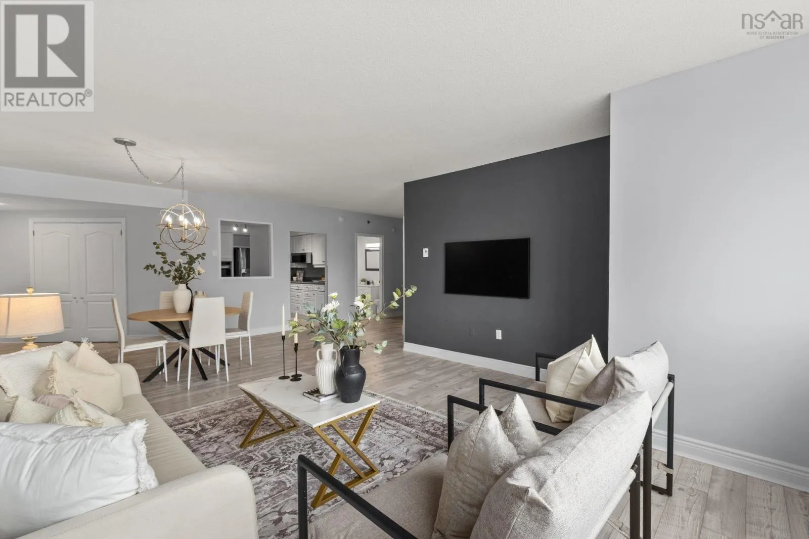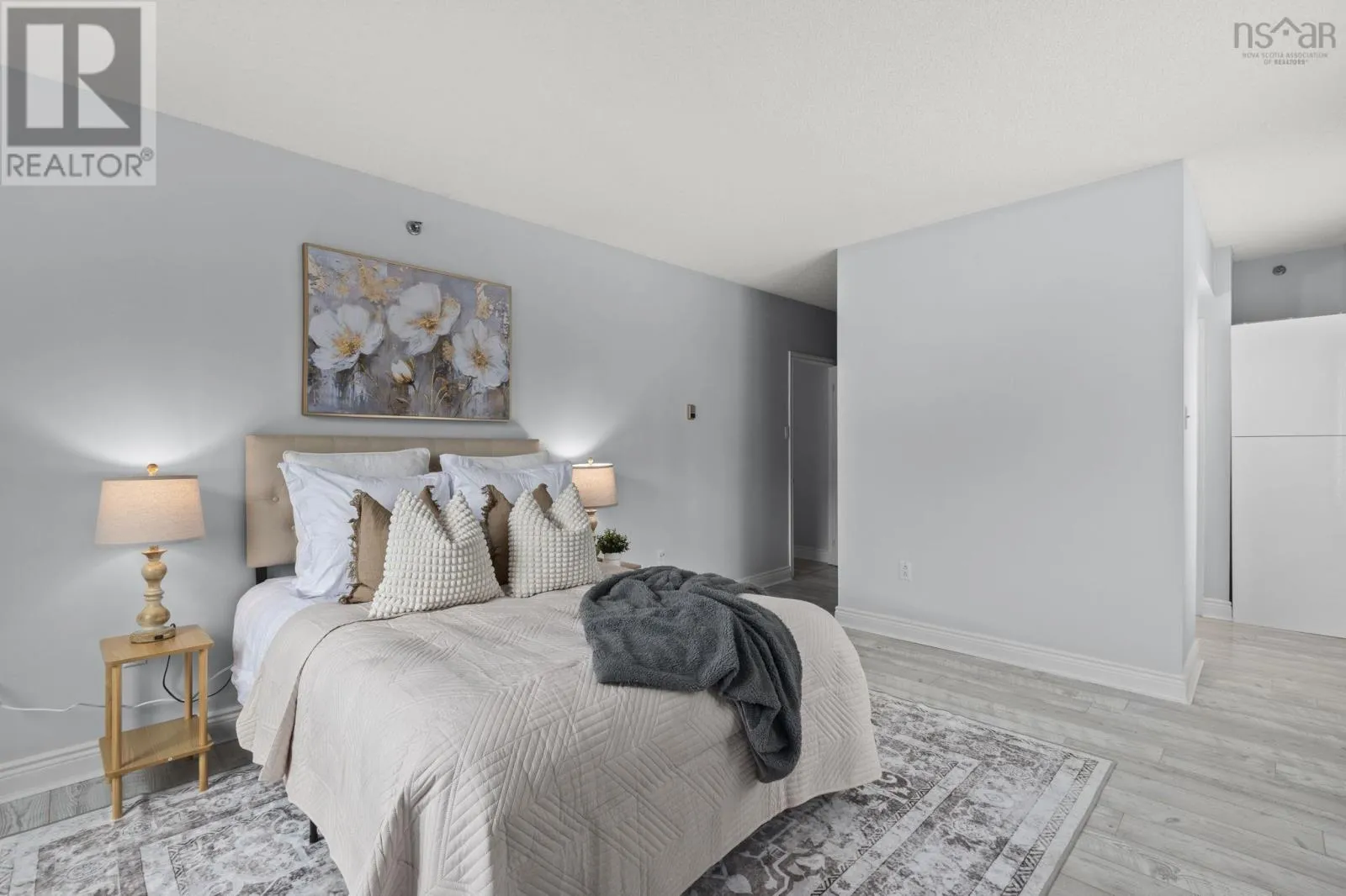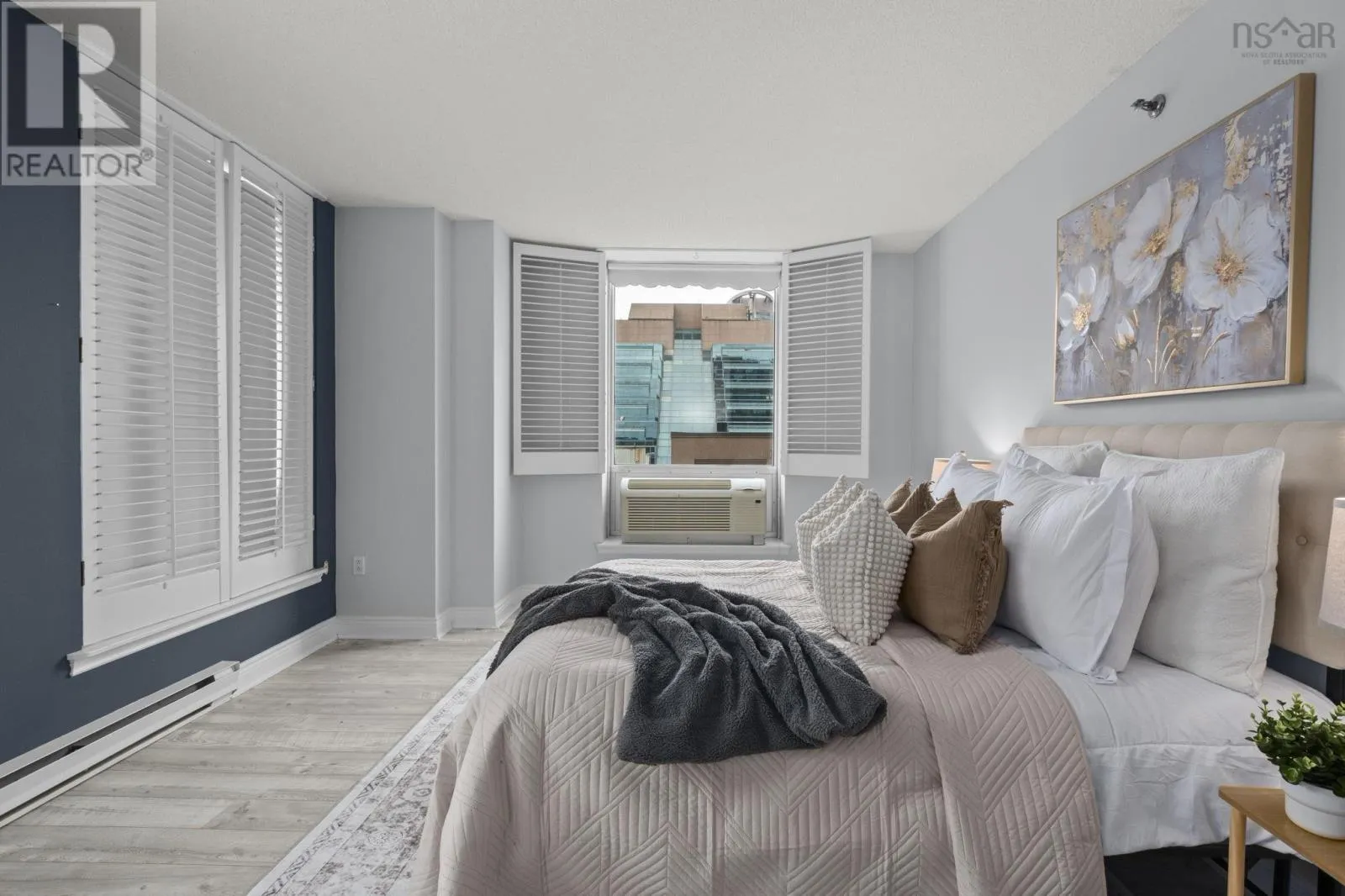 Clyde to Brenton Street Welcome to Unit 702 at the prestigious CharterHouse, a spacious 2-bedroom, 2-bath condo apartment perfectly positioned in vibrant downtown Halifax. Nestled within the popular Spring Garden Place, this unit offers unmatched access to hospitals, universities, the historic waterfront, the Public Gardens, and the culinary delights of Petes Frootique. Inside, the condo boasts an airy, open layout with vinyl and laminate flooring, custom blinds, and an upgraded kitchen featuring a double-wide sink and all appliances have been replaced within the past five years. Both bedrooms are generously sized, with the primary featuring a walk-through closet leading to a spacious 4-piece ensuite. Enjoy the convenience of in-unit laundry (stackable washer/dryer under 2 years old), two included TVs and wall mounts, and 3 air conditioning units. CharterHouse residents enjoy exceptional amenities including a fully equipped fitness center with sauna, a rooftop garden, a party room, and indoor access to banks, shops, and services, perfect for stormy days. The $827.00 monthly condo fee covers water, a building superintendent, cleaning, and all maintenance and building repairs. Parking is available for rent through Universal Properties. Experience the best of downtown living in this elegantly appointed condo apartment! (id:27476)