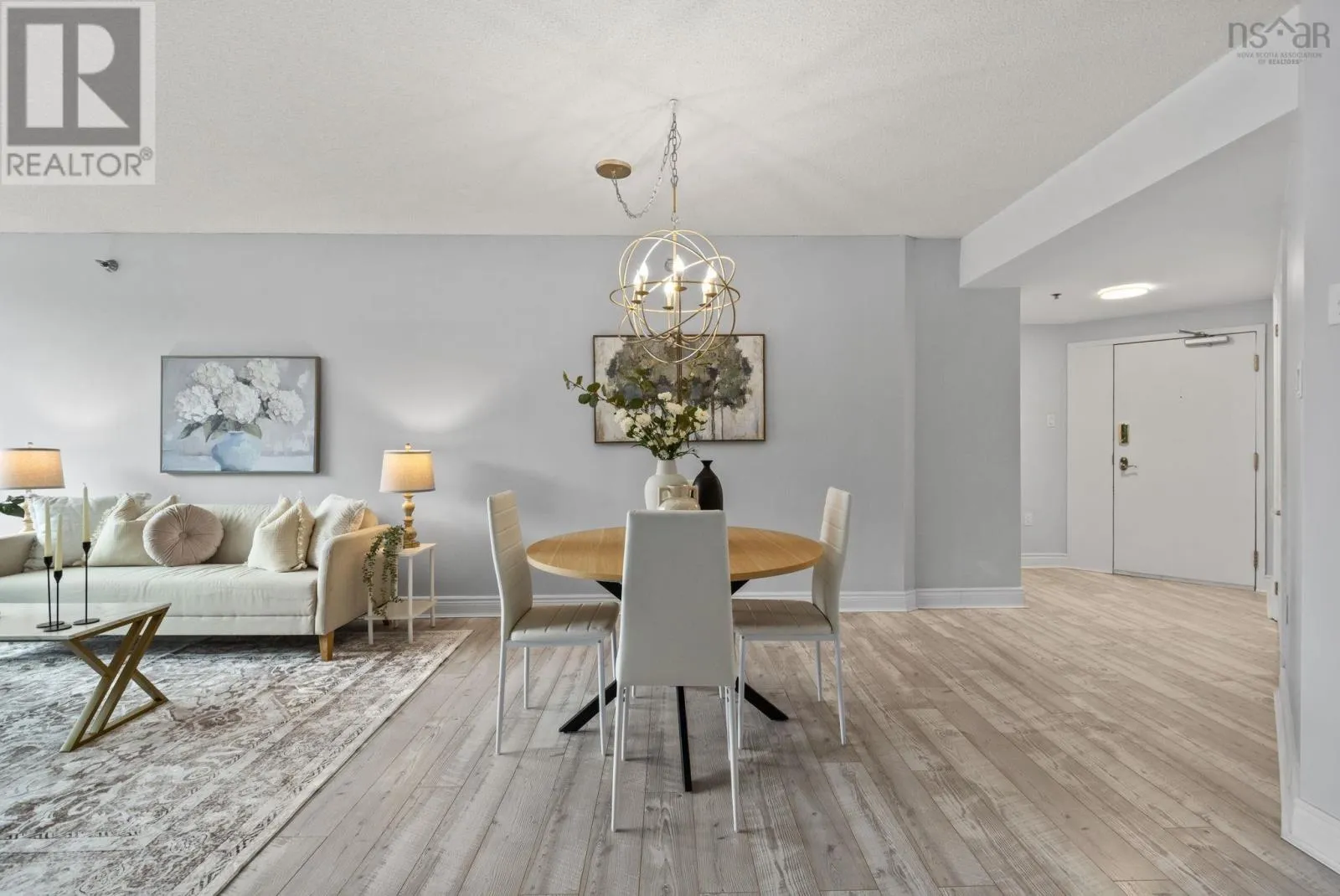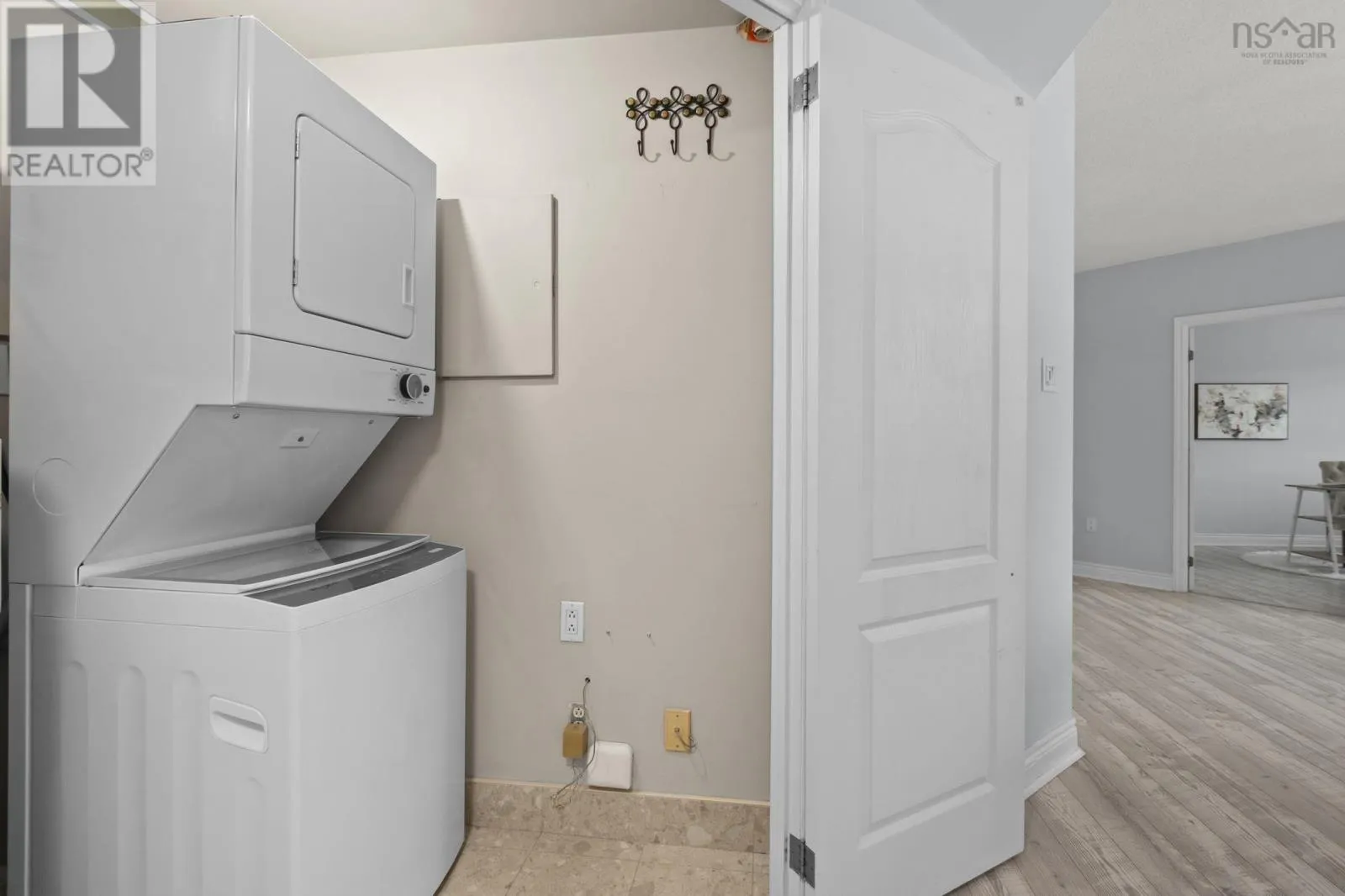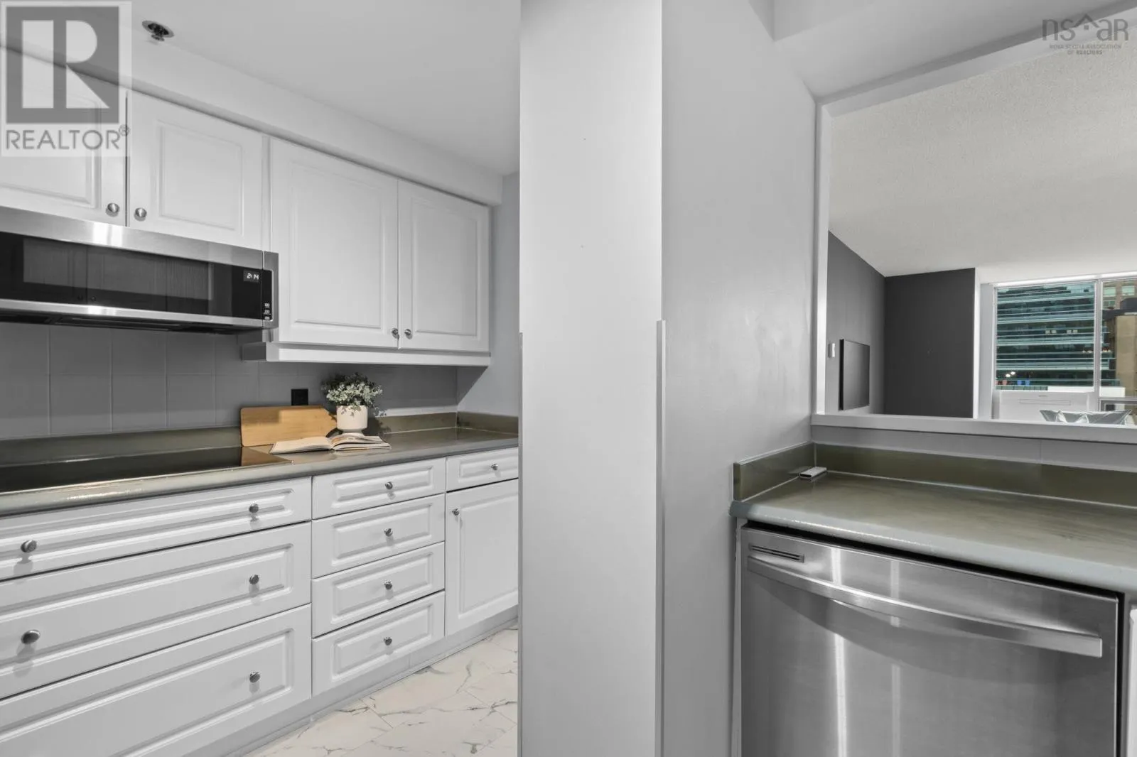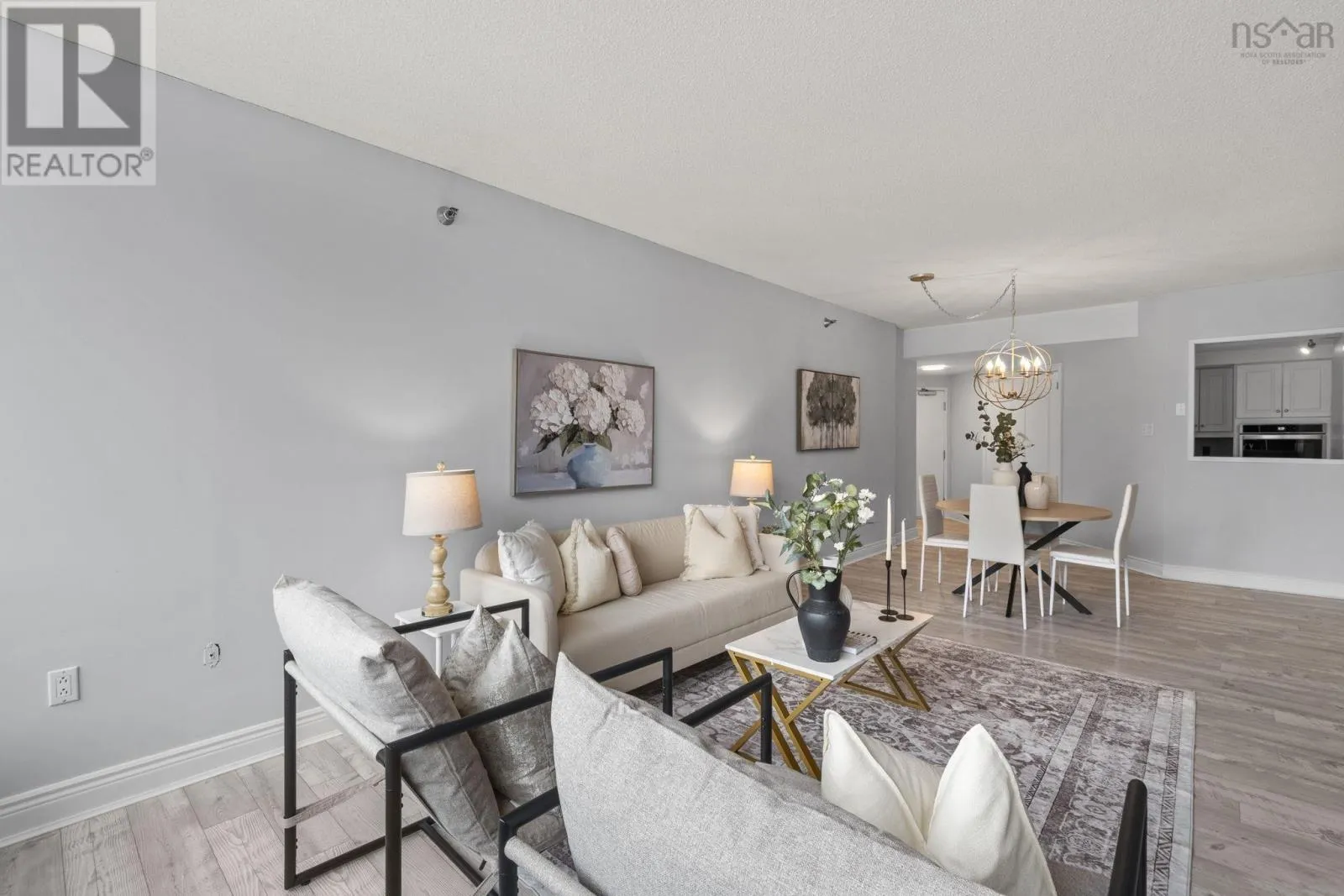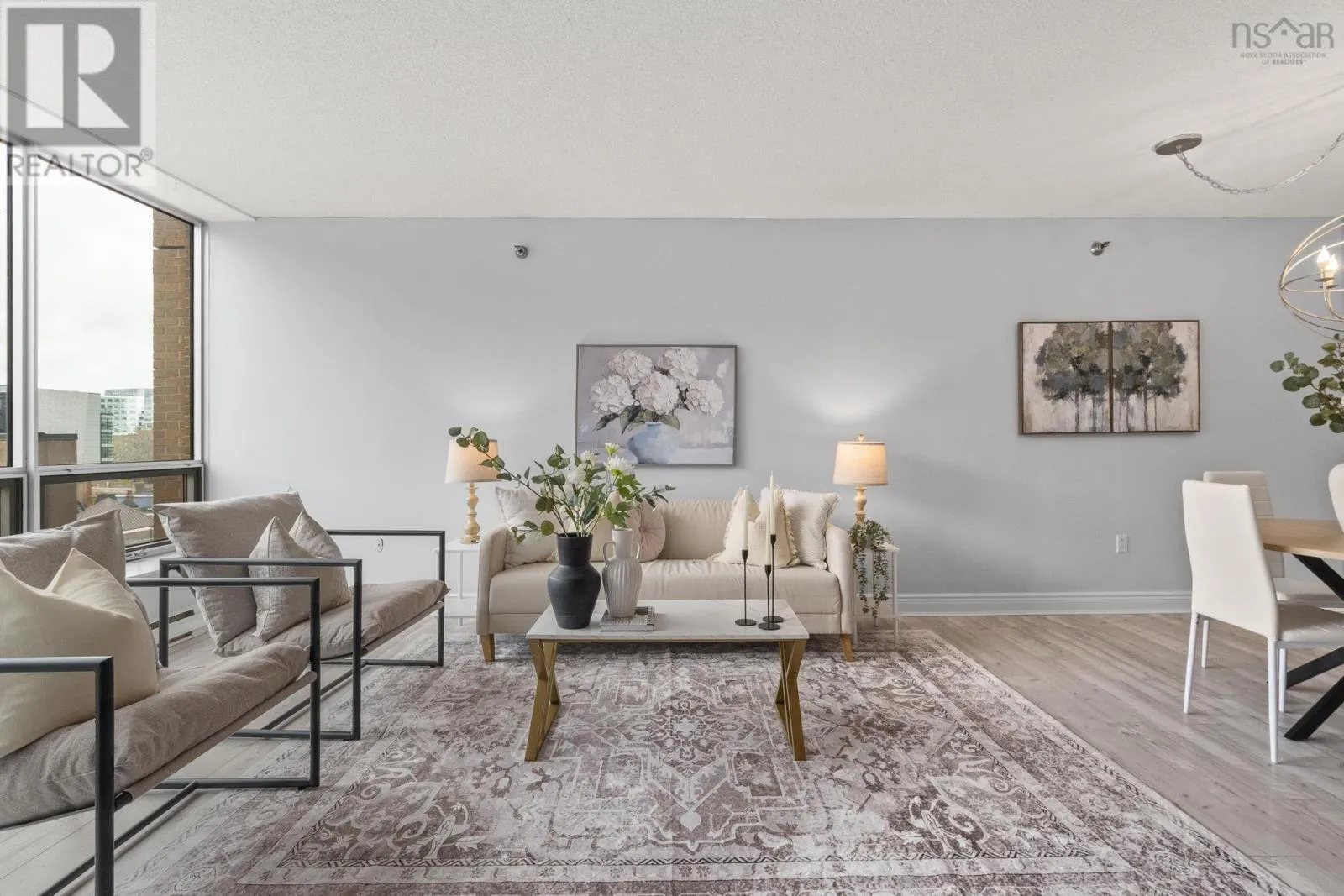 Clyde to Brenton Street Welcome to Unit 702 at the prestigious CharterHouse, a spacious 2-bedroom, 2-bath condo apartment perfectly positioned in vibrant downtown Halifax. Nestled within the popular Spring Garden Place, this unit offers unmatched access to hospitals, universities, the historic waterfront, the Public Gardens, and the culinary delights of Petes Frootique. Inside, the condo boasts an airy, open layout with vinyl and laminate flooring, custom blinds, and an upgraded kitchen featuring a double-wide sink and all appliances have been replaced within the past five years. Both bedrooms are generously sized, with the primary featuring a walk-through closet leading to a spacious 4-piece ensuite. Enjoy the convenience of in-unit laundry (stackable washer/dryer under 2 years old), two included TVs and wall mounts, and 3 air conditioning units. CharterHouse residents enjoy exceptional amenities including a fully equipped fitness center with sauna, a rooftop garden, a party room, and indoor access to banks, shops, and services, perfect for stormy days. The $827.00 monthly condo fee covers water, a building superintendent, cleaning, and all maintenance and building repairs. Parking is available for rent through Universal Properties. Experience the best of downtown living in this elegantly appointed condo apartment! (id:27476)