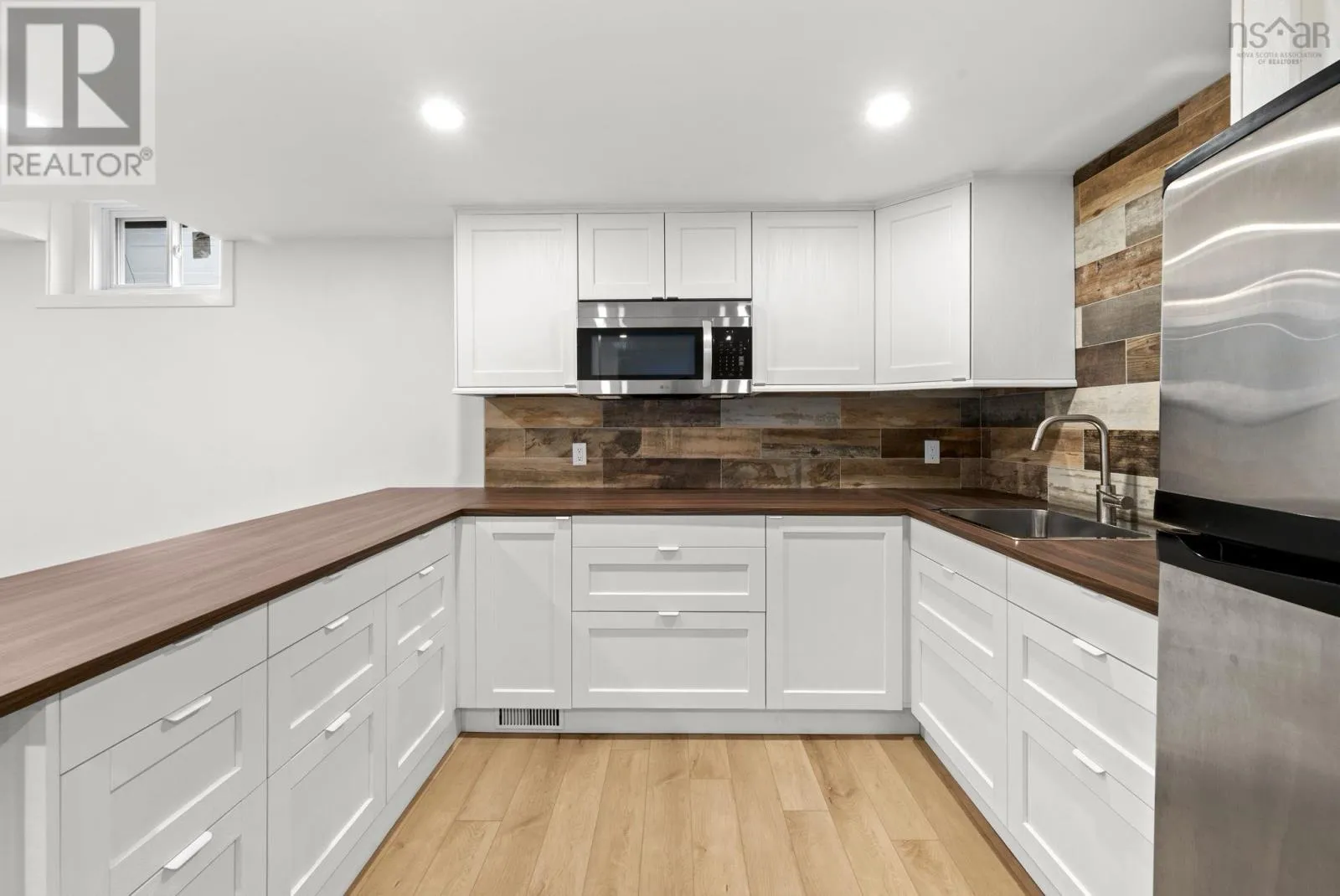 Bayer's Rd to Romans Ave Welcome to 3162 Romans Ave, a delightful residence nestled in the highly sought-after West End of Halifax. This centrally located property offers easy access to all amenities, making it an ideal choice for families and professionals alike. The main house features five spacious bedrooms and two full baths, while a newly added full basement includes a versatile in-law suite with two additional bedrooms and a full bath. Upon entering, youll be greeted by a beautifully renovated interior, accentuated by stunning hardwood floors that flow seamlessly throughout the main level. The kitchen has been thoughtfully updated, creating a stylish and functional space for culinary endeavors. The bathrooms have also been modernized, featuring luxurious in-floor heating that ensures comfort during the winter months. The basement in-law suite is a standout feature, offering a welcoming and self-contained living space complete with a completely redone kitchen from the past year. Each of the two bedrooms in this suite is equipped with convenient Murphy beds, optimizing space while providing comfort for guests or extended family. Additional enhancements of this home include energy-efficient blow-in insulation, all-new windows, and a contemporary heat pump system that guarantees year-round climate control. This well-appointed property combines comfort, style, and functionality, making it a perfect retreat in the heart of Halifax. (id:27476)