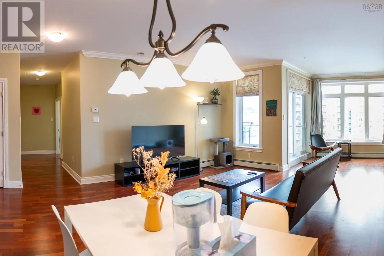 Take the Bedford Highway turn onto Larry Uteck Boulevard, turn right onto Bedros Lane, first building on the right. Experience low-maintenance condo living at 53 Bedros Lane in sought-after Bedford South! This sixth-floor corner suite features two bedrooms, a carpet-freeopen-concept layout with 9-foot ceilings, and approximately 1,268 square feet of comfortable living space.?Enjoy on-site amenities that make everyday life easier: take the elevator down to the buildings fitness room, skip winter scraping with your assigned heatedunderground parking space, and keep seasonal items organized in the generous storage room located directly behind your parking stall. The underground carwash bay lets you clean your vehicle year-round in comfort, and the in-unit laundry room adds another layer of convenience.?The building is professionally landscaped and well cared for, creating a tidy and welcoming environment. Your condo fee bundles many services into onepayment, including heat, hot and cold water, exterior upkeep, cleaning of common areas, access to the exercise and social rooms, a full-time live-insuperintendent, landscaping, garbage collection, and snow removal.Positioned between the Bedford Highway and Highway 102 via Larry Uteck Boulevard, this location offers quick access in all directions. Everyday essentialsand local favourites such as MSVU, Fishermans Market, Sobeys, Superstore, GoodLife Fitness, CIBC, BMO, Shoppers, and Popeyes are only a short drive away.?Reach out today to schedule a viewing and explore everything this condo and community have to offer! (id:27476)