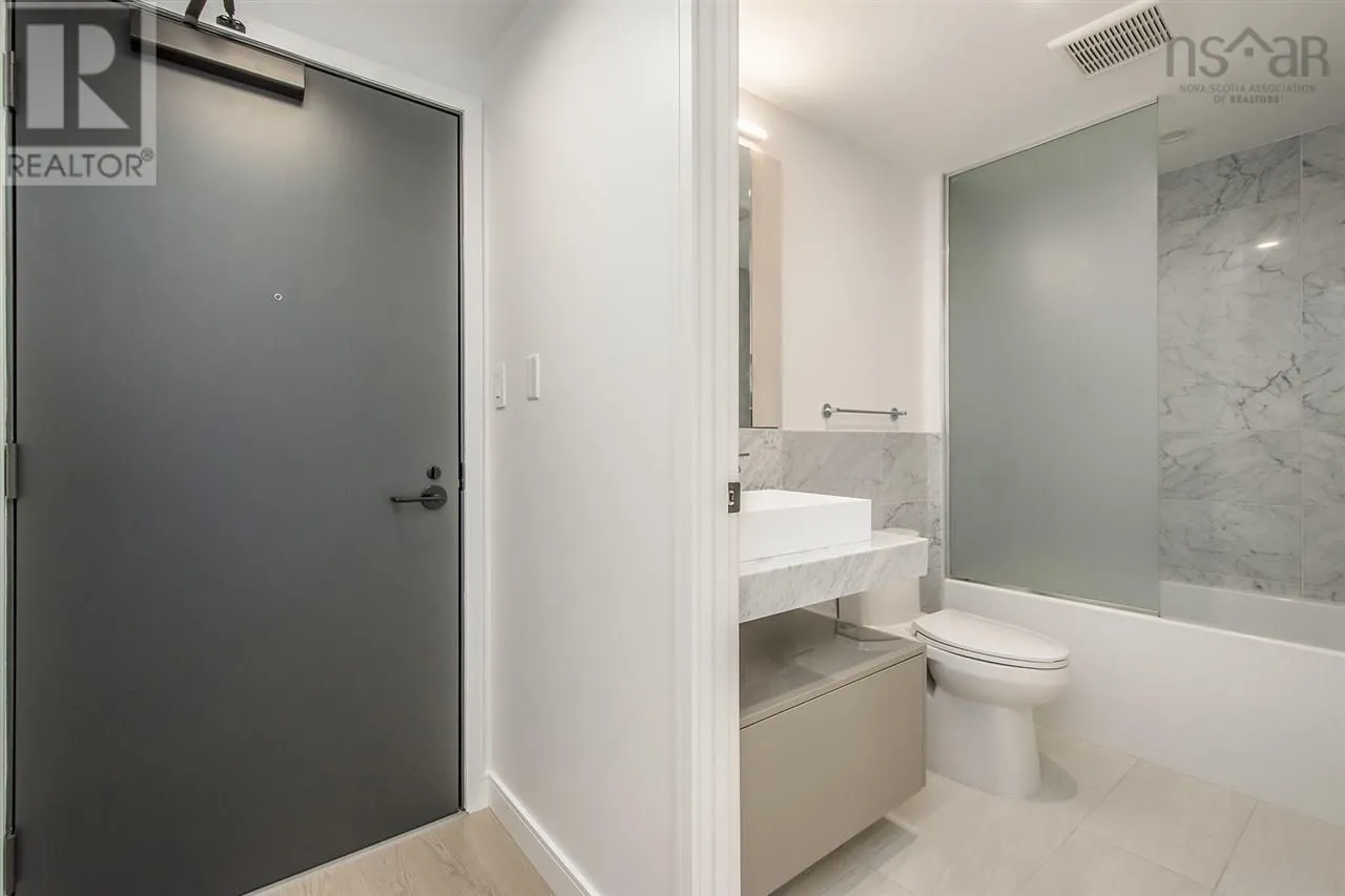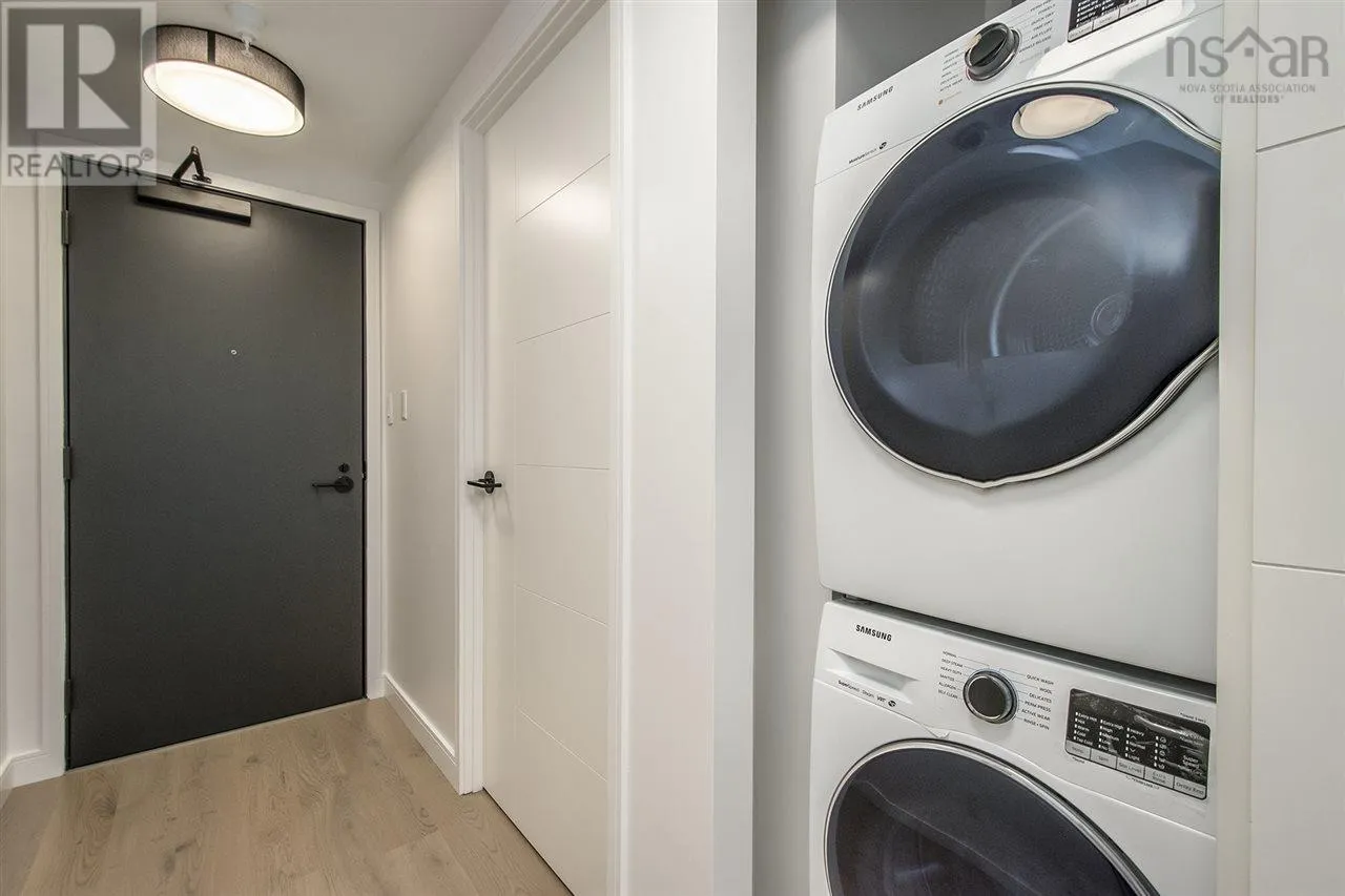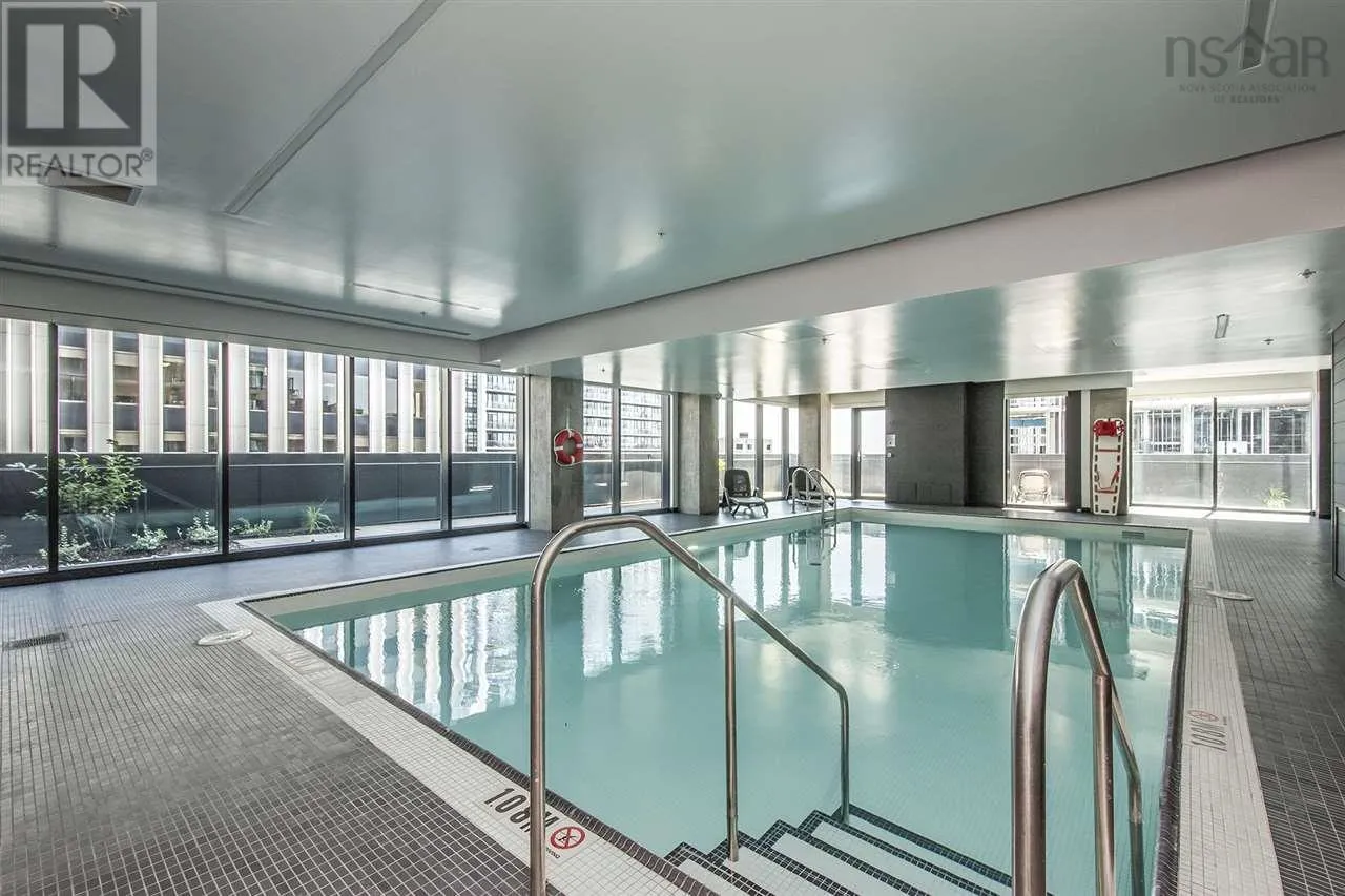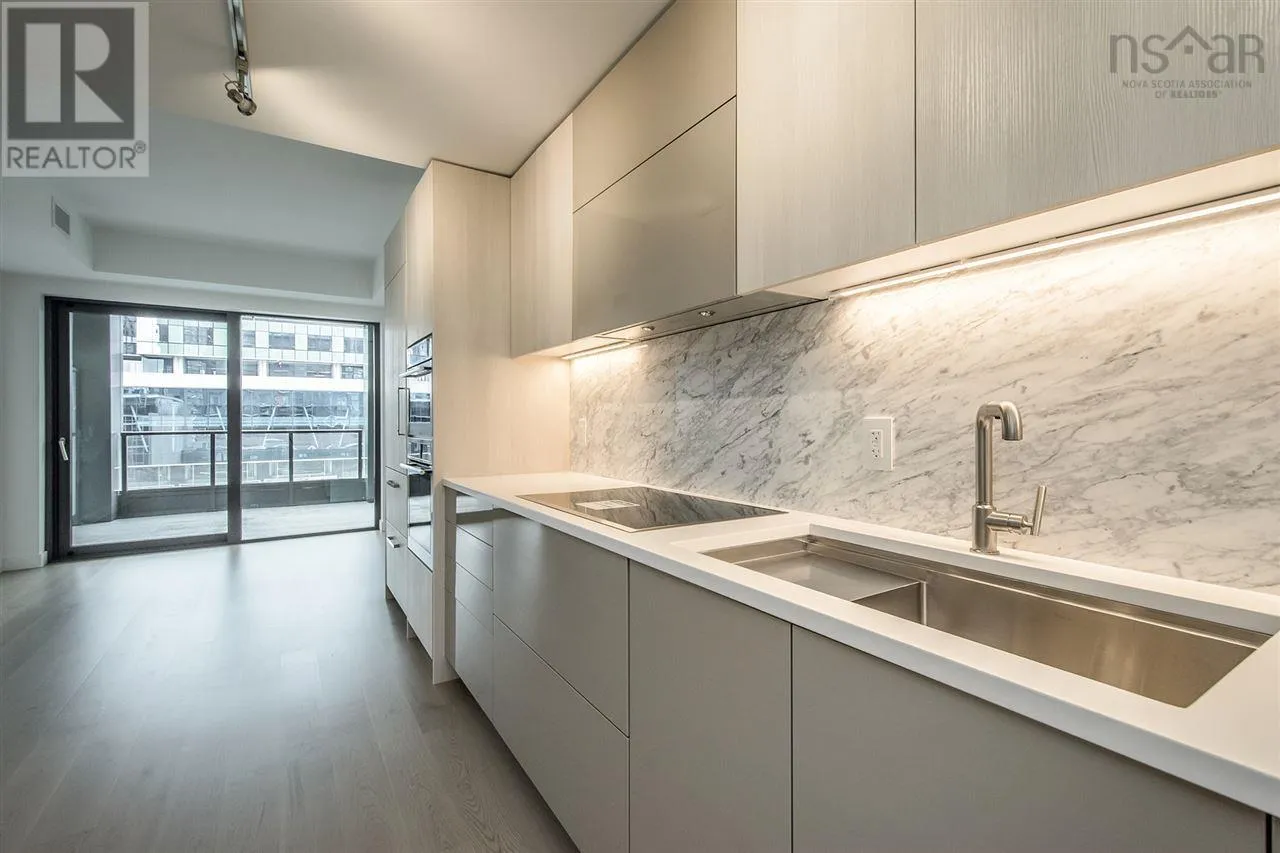 Sackville to Granville or Barrington to Sackville to Granville Welcome to The Roy in downtown Halifax! This 580+ square foot one bedroom features in unit laundry, 4 pc bath, built in kitchen appliances and cooktop, engineered hardwood flooring and a private 100 sq ft balcony. Just steps to Halifax harbour front and short walk to all the amenities the city has to offer with the best of restaurants, culture, shopping and entertainment venues. THE ROYs indoor and outdoor amenity spaces span the 8th floor. You can lounge by the rooftop fireplace, swim laps in the pool, or unwind with a relaxing sauna or steam. Wellness suites and modern fitness facilities provide access to a healthy lifestyle, while the theatre and entertainment rooms can be reserved for your exclusive use. This unit is ideal for young professional. (id:27476)