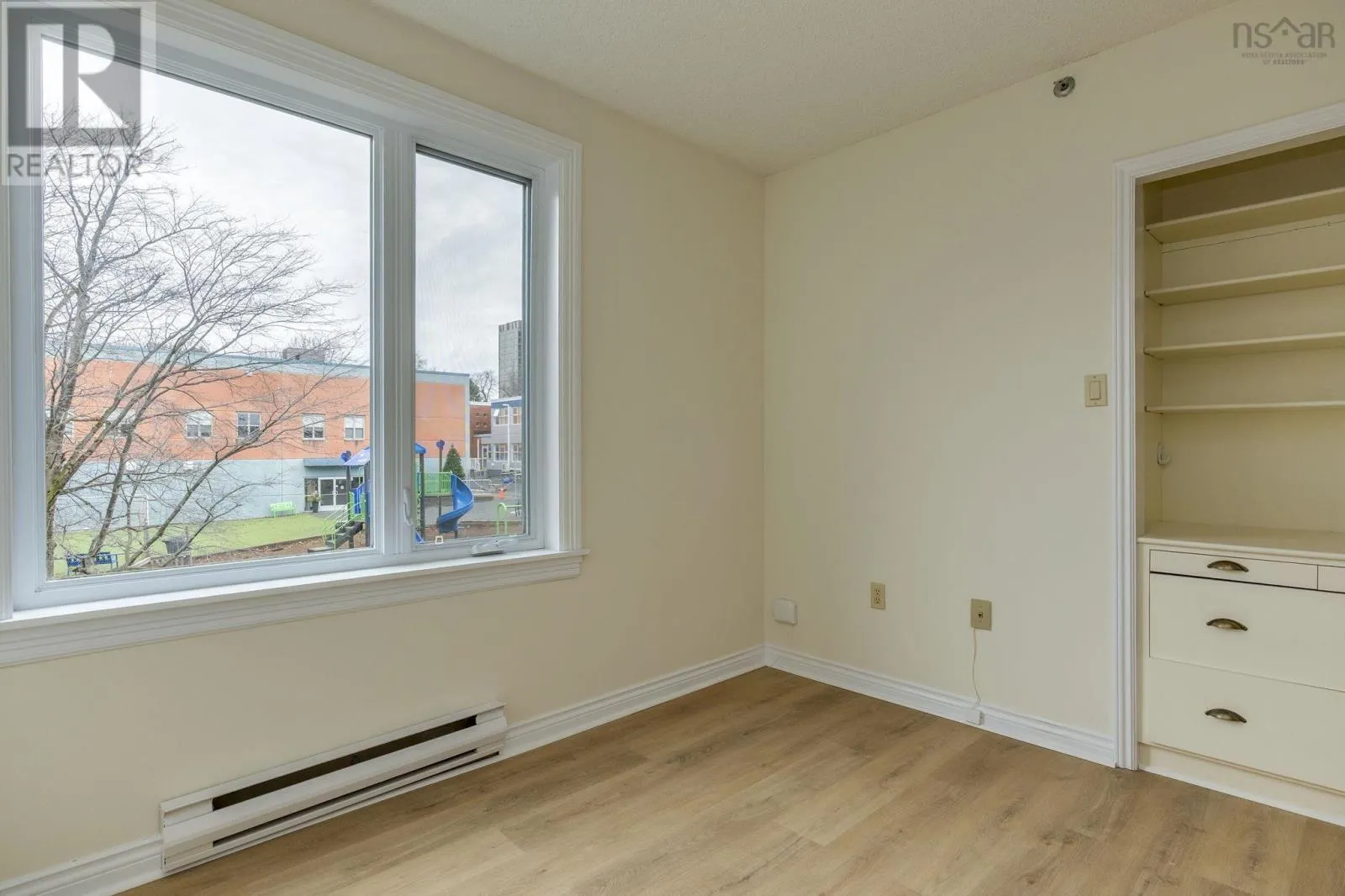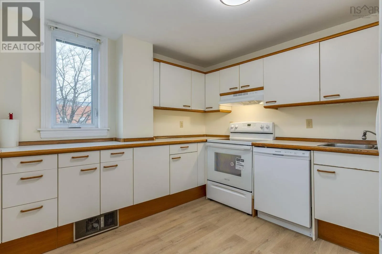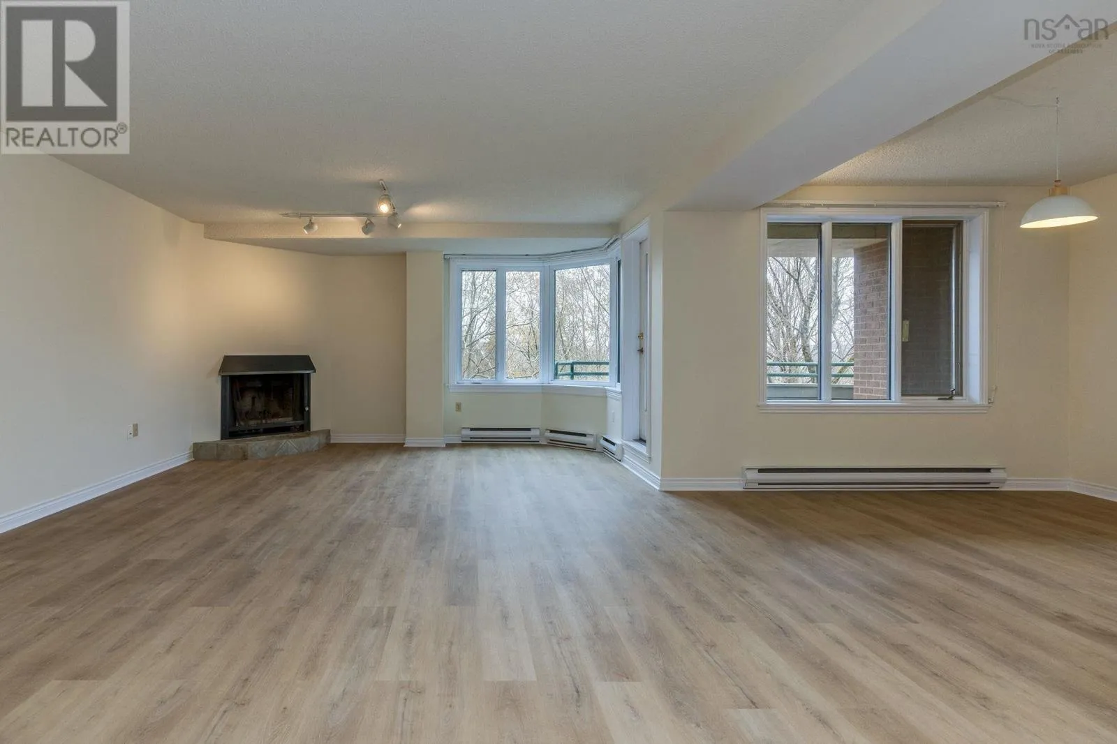 Oxford court condos- opposite Dalhousie University, between Coburg and South St. Freshly renovated, ready and walting for you to move in! This spaclous 3 bedroom, 2 full bath condo features all new, high quality laminate flooring in the living & dining room, kitchen & bedrooms, plus it has been palnted throughout. Located In the west-facing rear cormer of the building, with lots of greenery behind, you'll enjoy aftermoon and evening sun on the private balcony. On special occasions there is a wood burning fireplace in the living room to enjoy. The adjacent dining room has a pass-through from the kitchen, which features a brand new dishwasher, range, and lighting. There is ample closet space, in addition to an in-unit storage closet and laundry. An underground parking space and storage unit complete the package. Oxford Court condominiums are unique in Halifax South End, a low-rise bullding with two wings connected by a 3 level glass link, and a landscaped sunny courtyard between the wings. The attractive landscaping and gardens, stone church on one side, and Armbrae Academy private school on the other, give the building a speclal curb appeal. Located across from Dalhousie campus, around the corner from Dalplex fitness center, and St. Mary's University is a comfortable walk away. The topography of the site is such that this condo unit has the convenience of being on the entrance level of the building, so no stairs to climb, but is not on the ground floor level on the sides and back- a very secure setup! (id:27476)