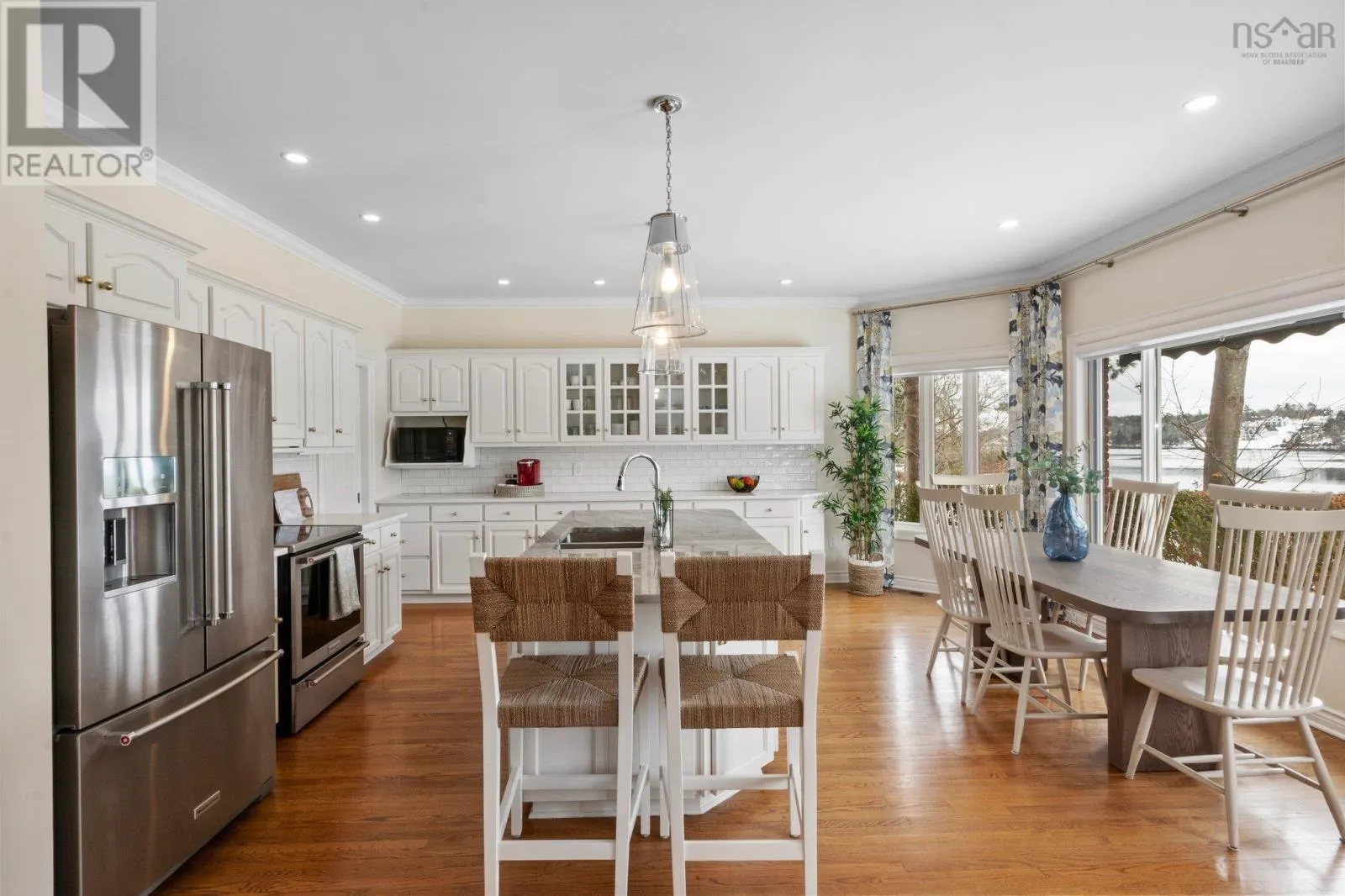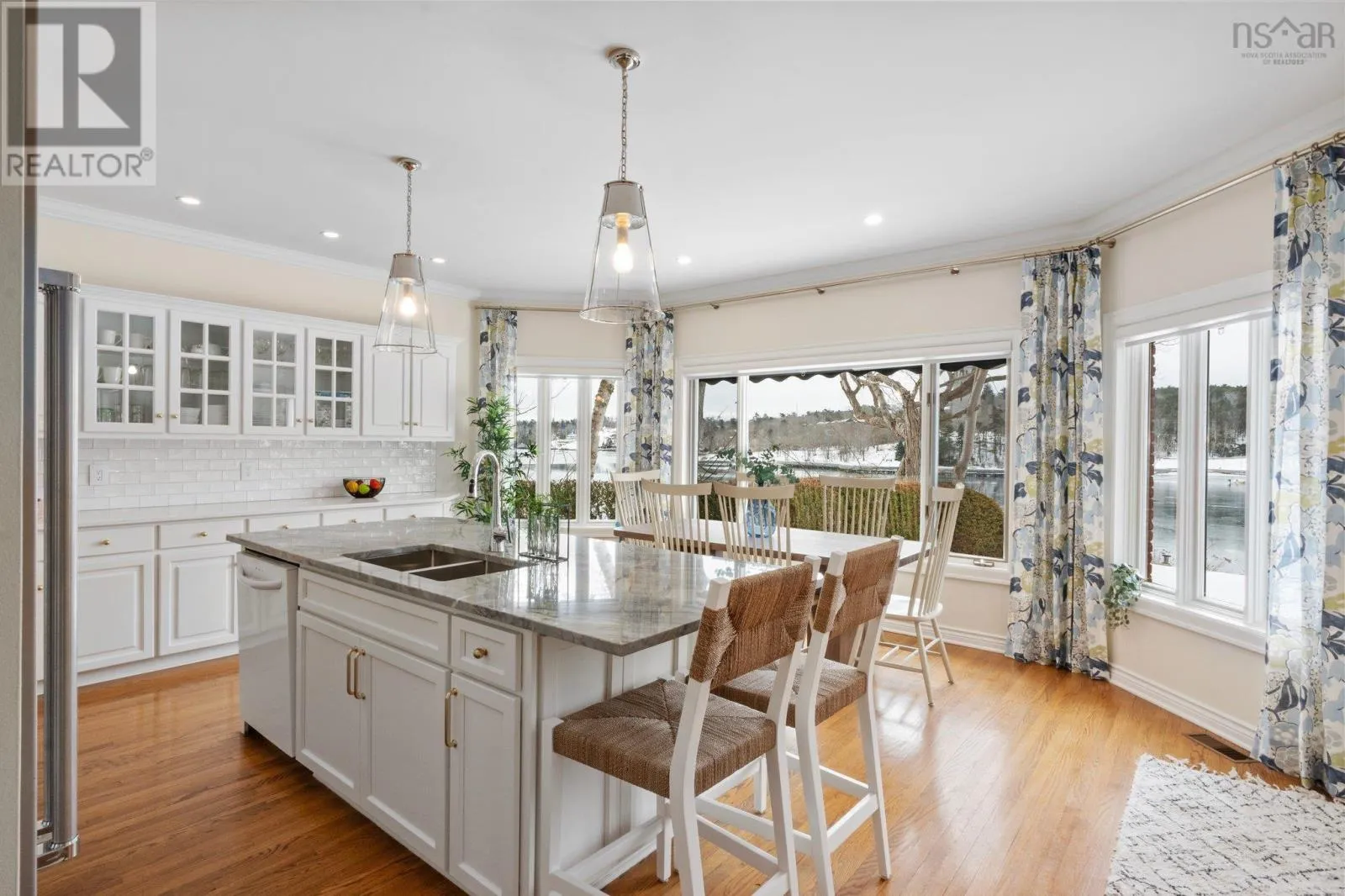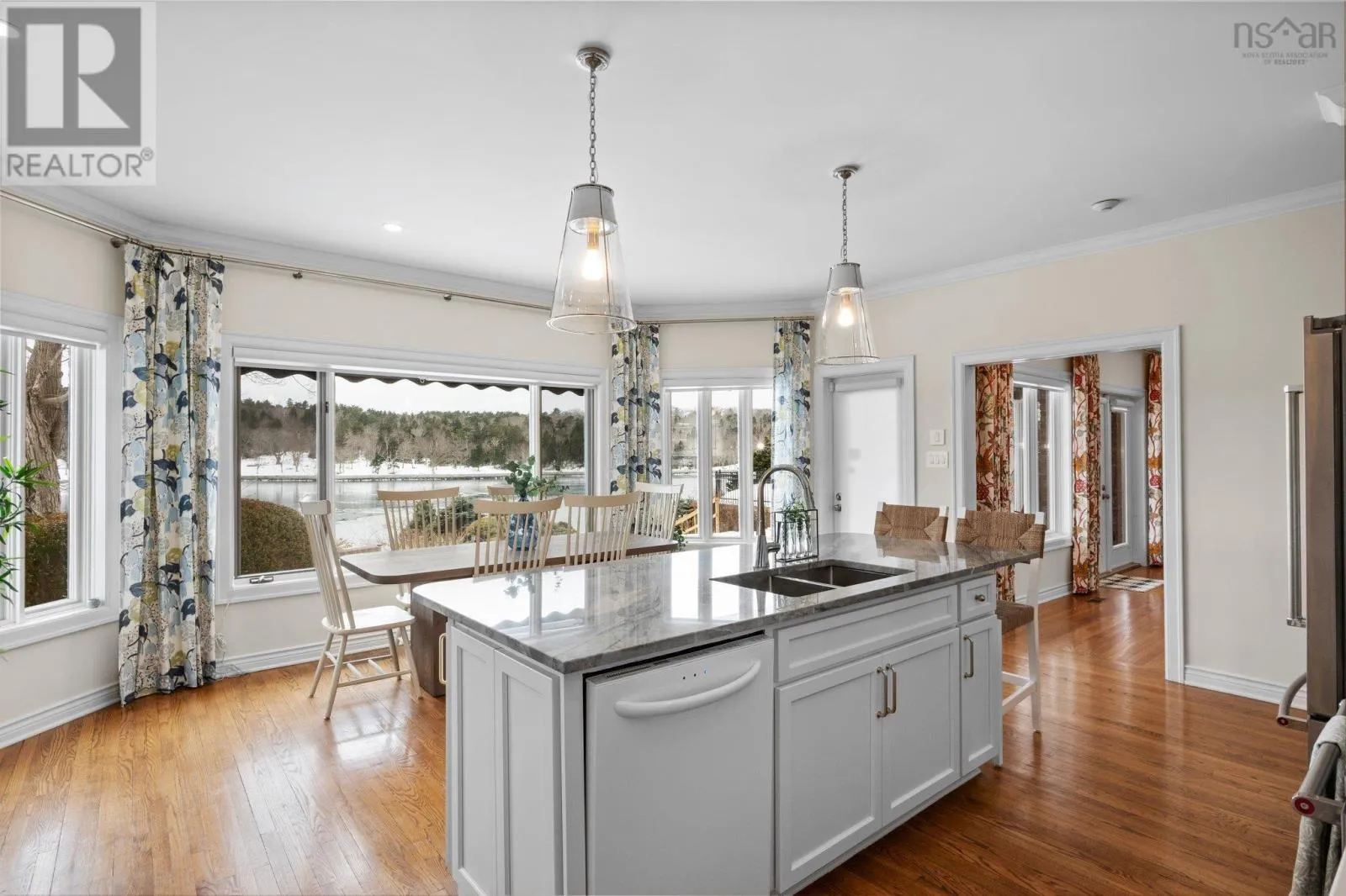Oxford St to South St Welcome to this exquisite waterfront property on the North West Arm, offering breathtaking views of the historic Dingle Park. This stately two-story brick home boasts over 5,000 square feet of beautifully finished living space, featuring 5 bedrooms, 4 bathrooms, and a thoughtfully designed layout perfect for both family living and entertaining. The heart of the home is the bright and spacious kitchen, showcasing elegant cabinetry and a stunning marble island. The adjacent dining area bathed in natural light frames the stunning water views to create the perfect setting for meals and gatherings. This exceptional home is equipped with 400-amp service and a ducted heat pump, ensuring year-round comfort and efficiency. Outside the beautifully landscaped yard leads to 75 feet of water frontage where you can enjoy all the Arm has to offer including kayaking, boating or simply enjoying the peaceful waterfront setting. The double attached garage provides ample storage, and the home's prime location ensuring easy access to all amenities, parks, schools and downtown Halifax. (id:27476)