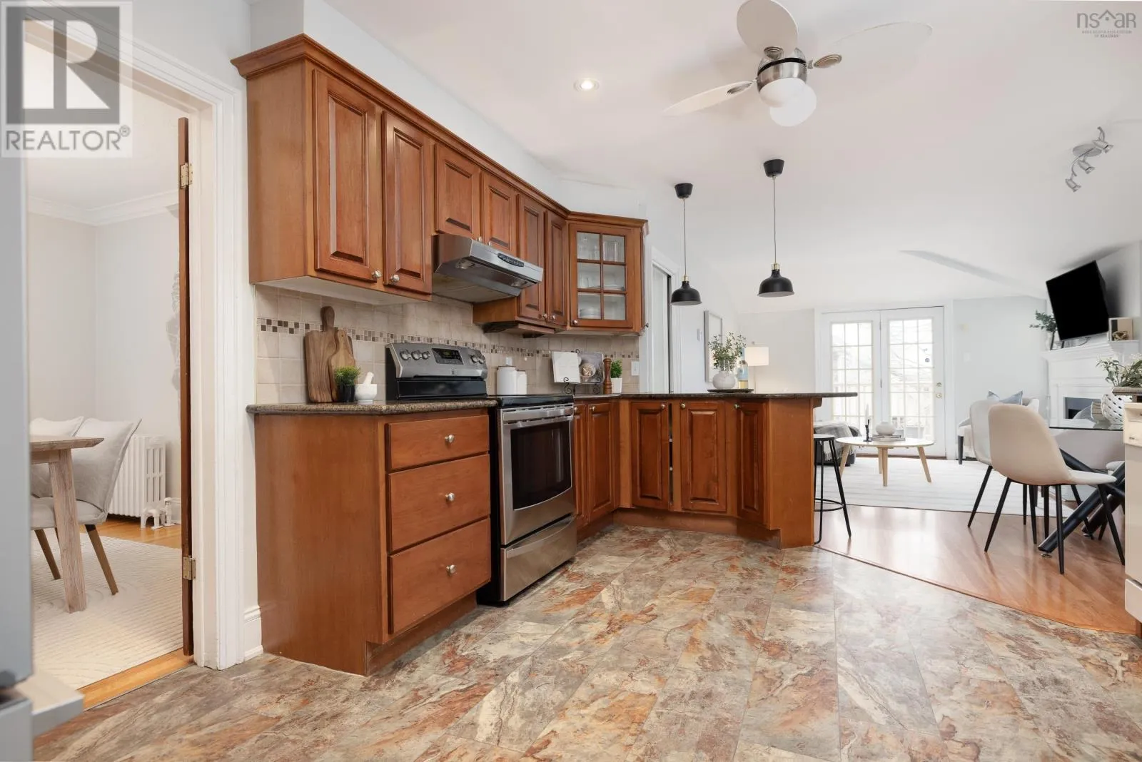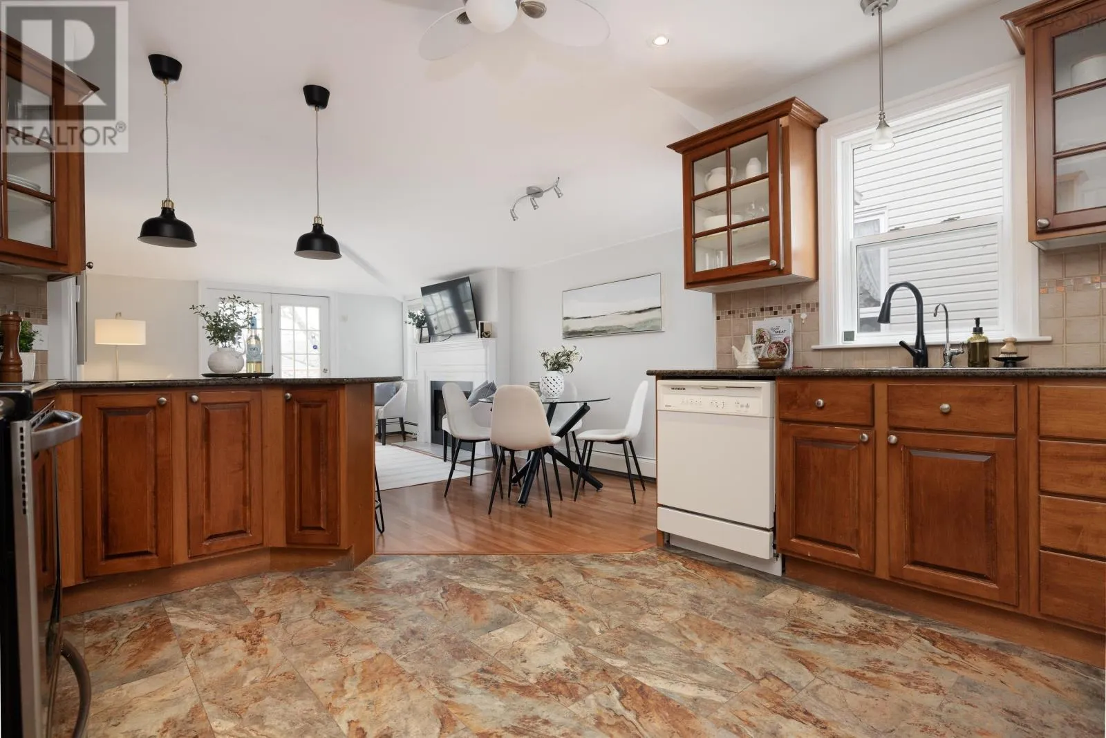 Chebucto Rd to Westmount St Welcome to 2420 Westmount Street a beautifully updated 4+1 bedroom (3 on 2nd level, 1 main level currently used as office & 1 basement), 3 bath family home on one of Halifaxs most loved streets. Westmount is known for its community spirit, with annual BBQs, festive neighbourhood events, and family camping trips that make it a truly special place to live. The main floor offers an open-concept kitchen and living room, creating a warm, inviting space ideal for family life and entertaining, plus a flexible bedroom or office with pocket-door privacy. Upstairs features three bright bedrooms, while the large walk-out basement rec room opens to a fully fenced backyard oasis with mature trees, multiple decks. Comfort and efficiency come from three mini-split heat pumps (one per level), along with upgrades including an EV charger (2023), new fridge (2024), washer/dryer (2025), 200-amp panel, and freshly stained decks (2025). A perfect blend of comfort, community, and modern updates in one of Halifaxs most welcoming neighbourhoods. ***ER3 Zoning permits multiple units, perfect layout to convert walkout basement level to a unit. (id:27476)