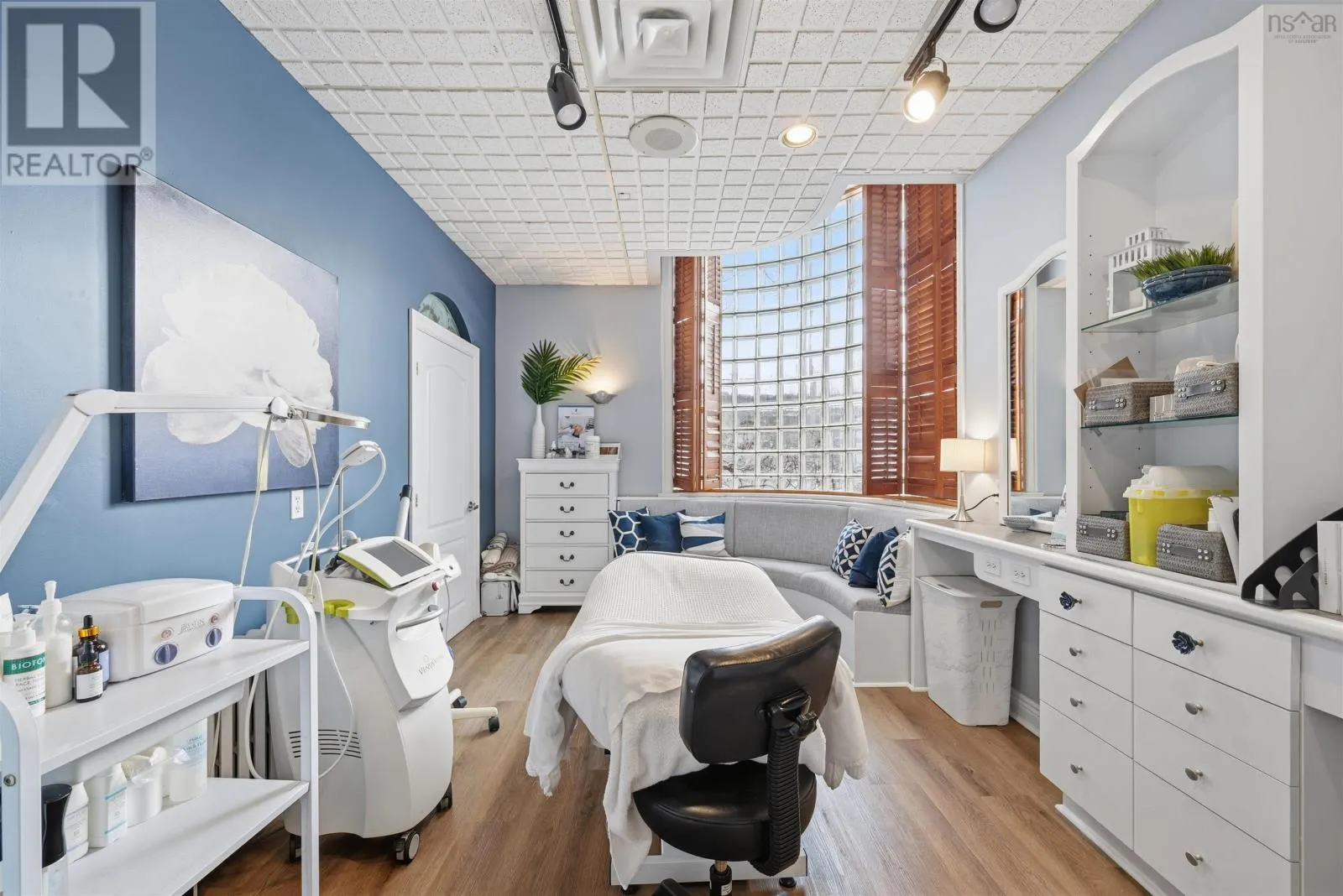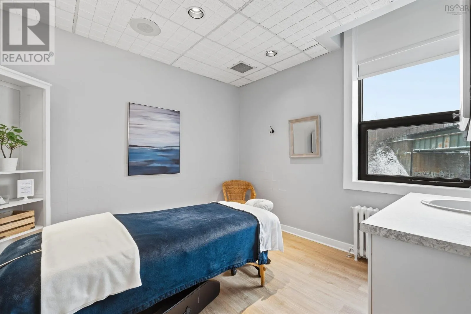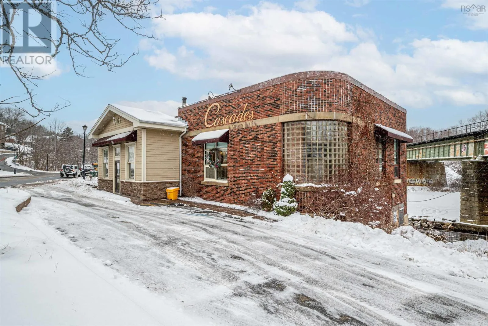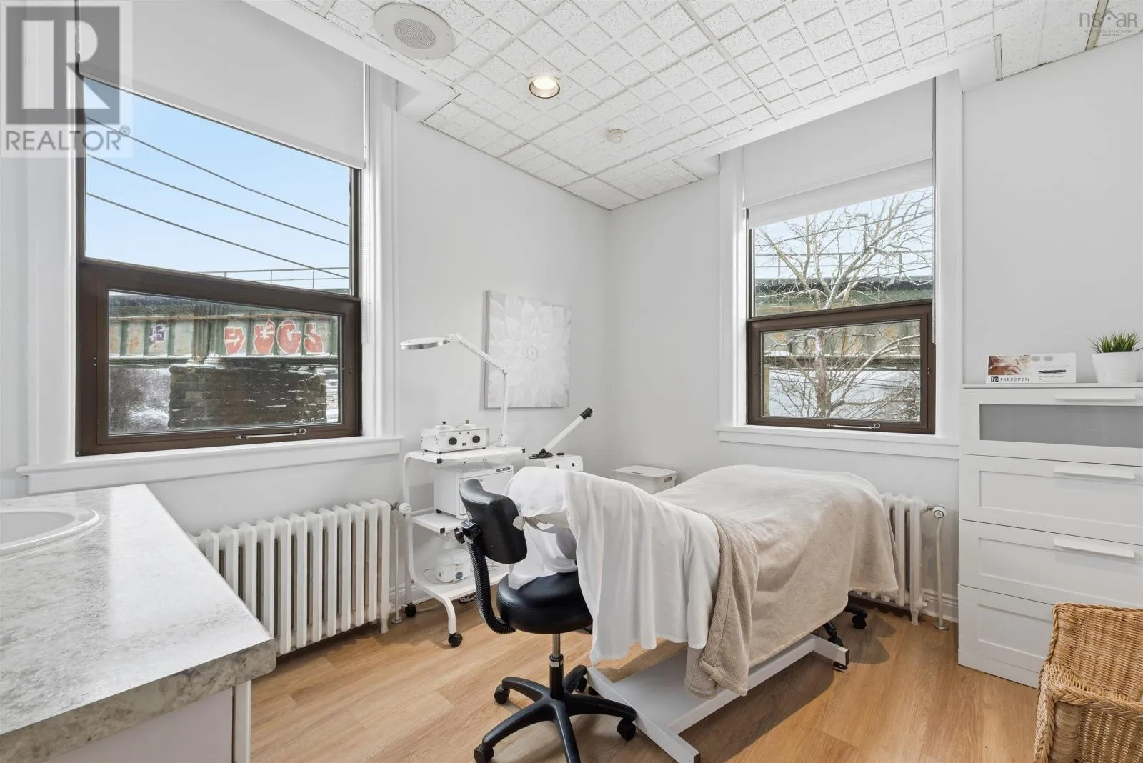 Corner of Bedford HWY and Shore Dr Now available, this well-known Bedford landmark offers exceptional visibility in a prime location with quick access to Highway 102. Situated on a 17,703 sq. ft. CMC-zoned commercial lot, this well-maintained 4,158 sq. ft. fully developed building spans two levels and features over 10 private rooms, four washrooms, a locker room, and a spectacular oversized deck with scenic water views of the Bedford Basin and Lower Sackville River. The flexible layout provides a rare opportunity to reconfigure the space to suit a variety of business needs or take advantage of the existing turnkey spa setup, which includes sinks in all seven treatment rooms/offices, modern fixtures, a welcoming reception area with adjoining office, and multiple semi-private spaces on the main floor for increased capacity. The lower level offers two additional treatment rooms, a laundry room, break room, kitchenette, tiled steam room, and an impressive locker room featuring two showers, double vanity, two water closets, solid wood lockers, and a side entrance leading to an expansive 60+ ft riverfront deck. A spacious 23 x 16 lobby includes a second kitchenette with an industrial sink and direct access to the side parking area. Additional parking available across the road for a nominal fee. Recent upgrades include a new roof and rooftop AC unit installed in 2023, further enhancing the value of this strategically positioned property with prominent road frontage in the heart of Bedford. (id:27476)