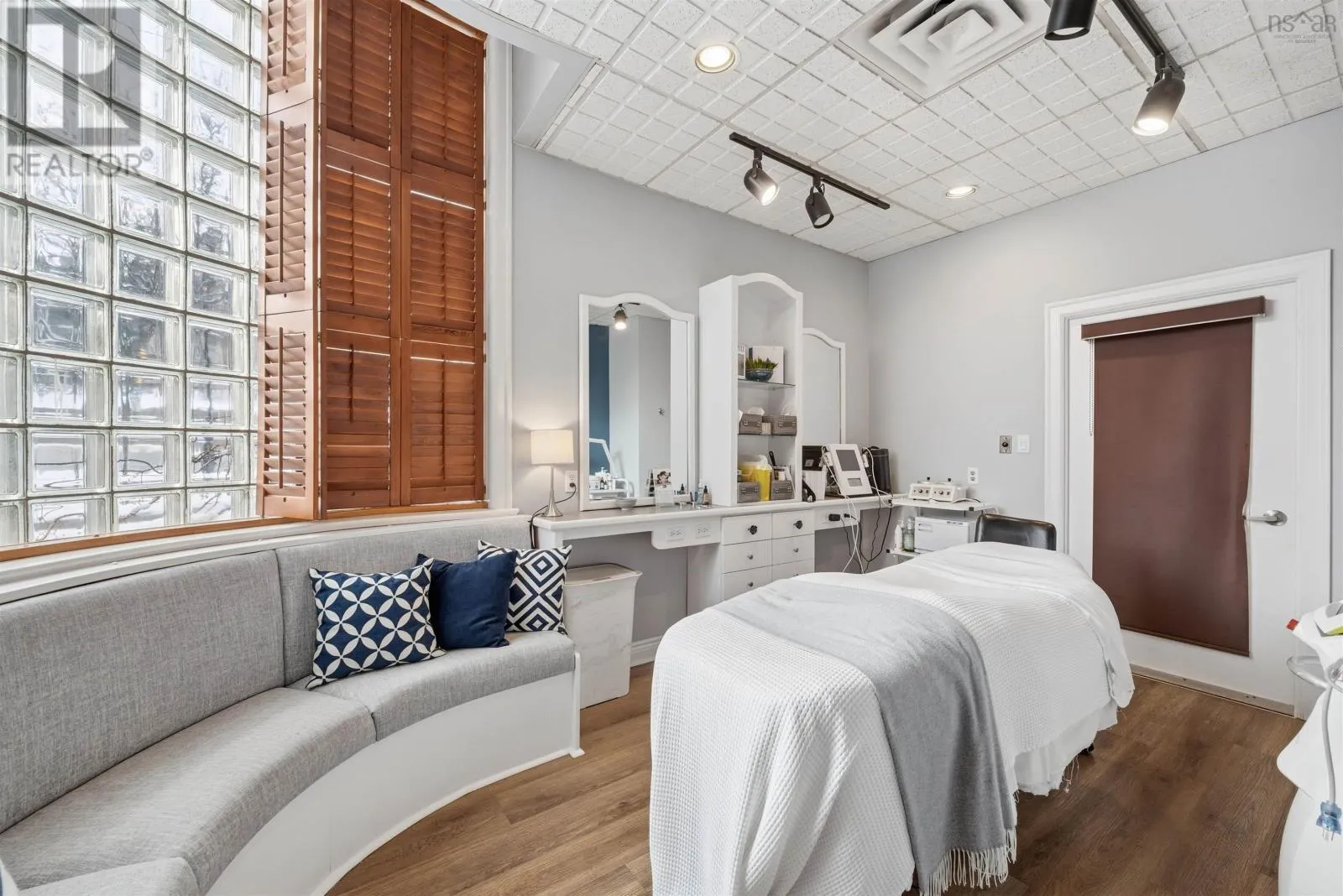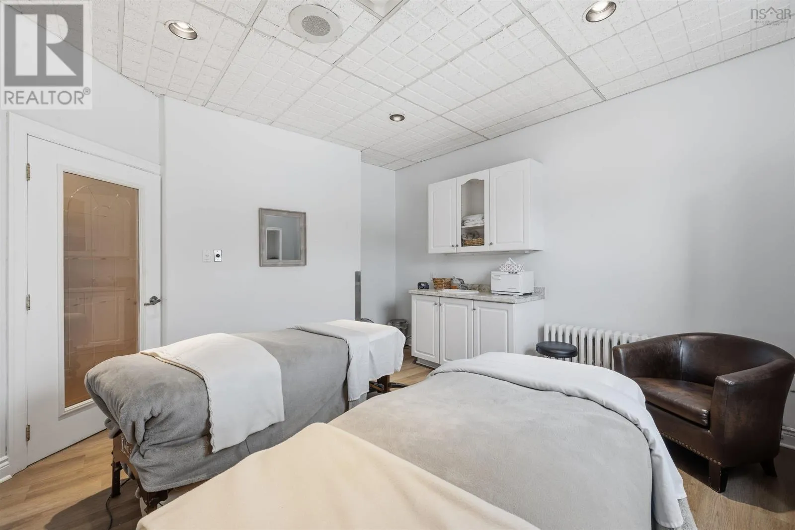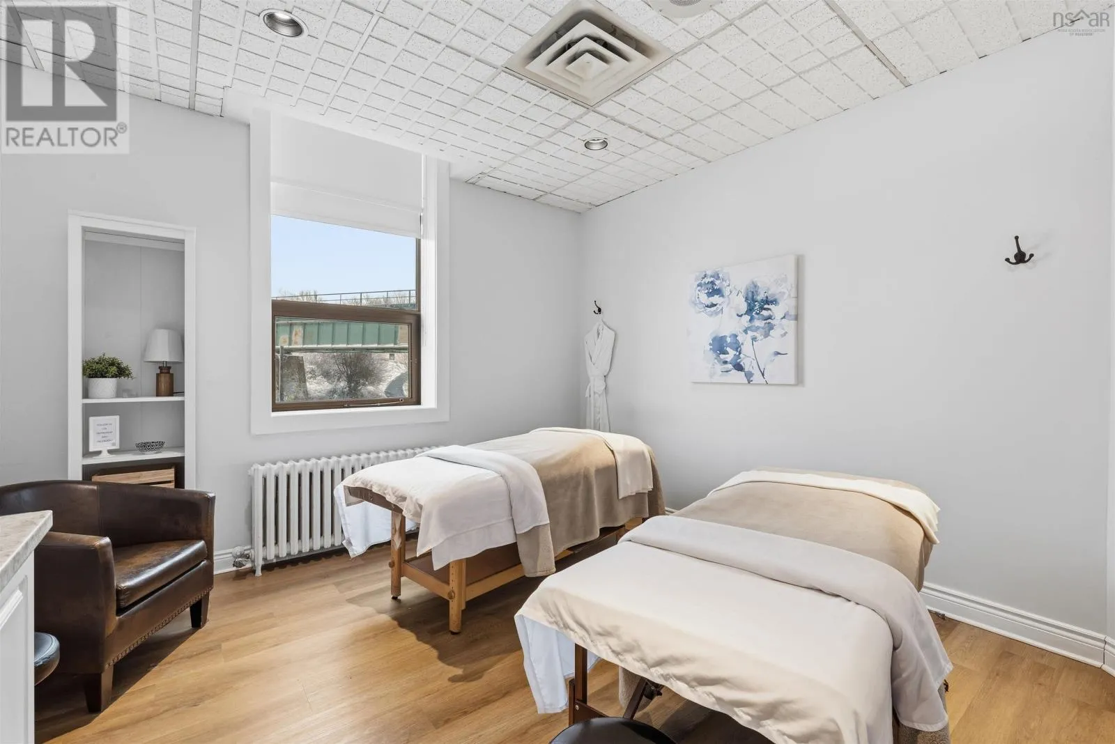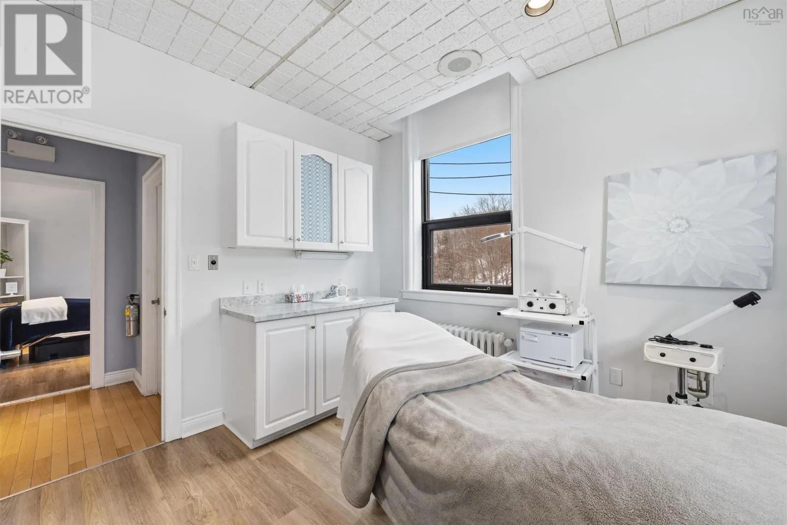 Corner of Bedford HWY and Shore Dr Now available, this well-known Bedford landmark offers exceptional visibility in a prime location with quick access to Highway 102. Situated on a 17,703 sq. ft. CMC-zoned commercial lot, this well-maintained 4,158 sq. ft. fully developed building spans two levels and features over 10 private rooms, four washrooms, a locker room, and a spectacular oversized deck with scenic water views of the Bedford Basin and Lower Sackville River. The flexible layout provides a rare opportunity to reconfigure the space to suit a variety of business needs or take advantage of the existing turnkey spa setup, which includes sinks in all seven treatment rooms/offices, modern fixtures, a welcoming reception area with adjoining office, and multiple semi-private spaces on the main floor for increased capacity. The lower level offers two additional treatment rooms, a laundry room, break room, kitchenette, tiled steam room, and an impressive locker room featuring two showers, double vanity, two water closets, solid wood lockers, and a side entrance leading to an expansive 60+ ft riverfront deck. A spacious 23 x 16 lobby includes a second kitchenette with an industrial sink and direct access to the side parking area. Additional parking available across the road for a nominal fee. Recent upgrades include a new roof and rooftop AC unit installed in 2023, further enhancing the value of this strategically positioned property with prominent road frontage in the heart of Bedford. (id:27476)