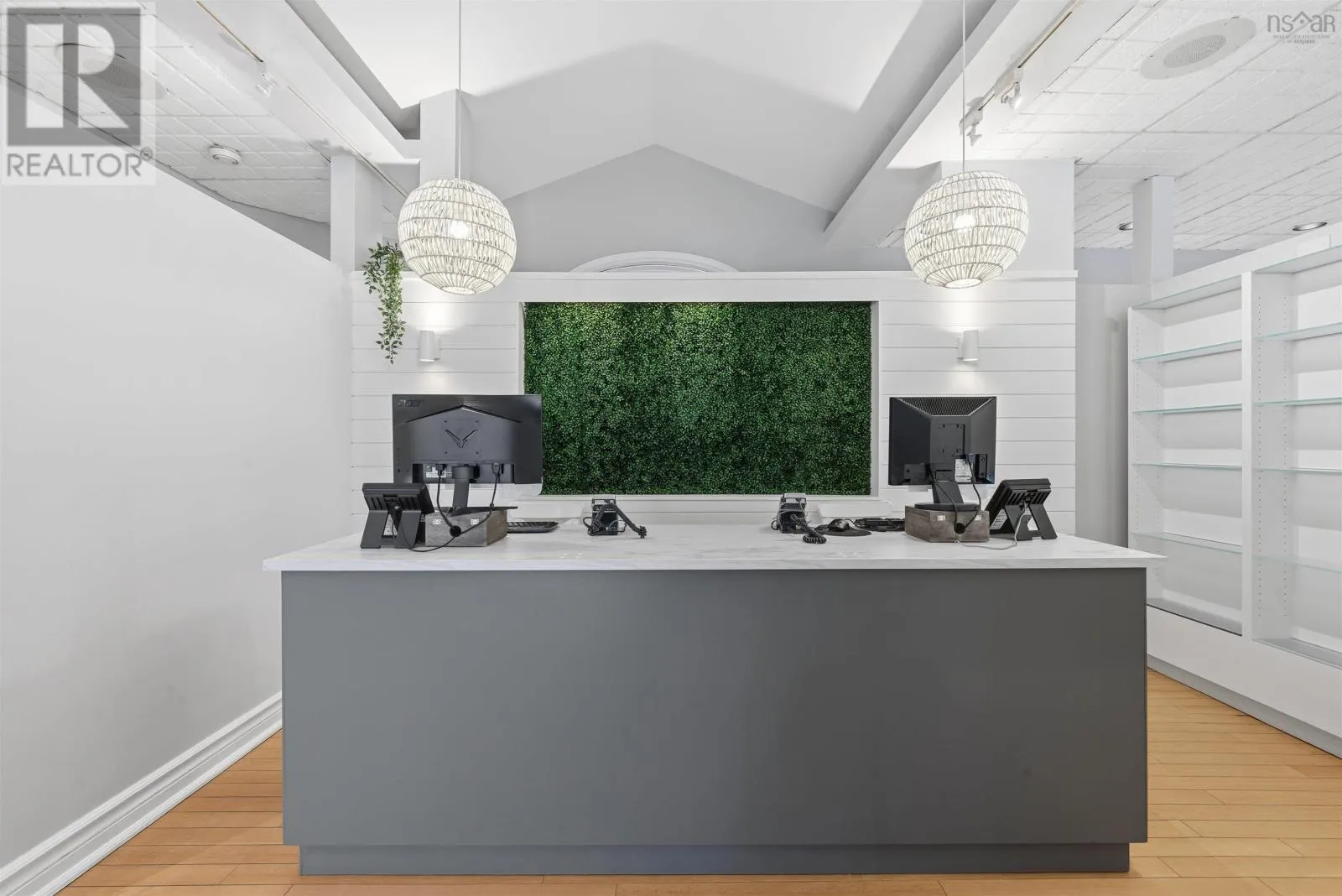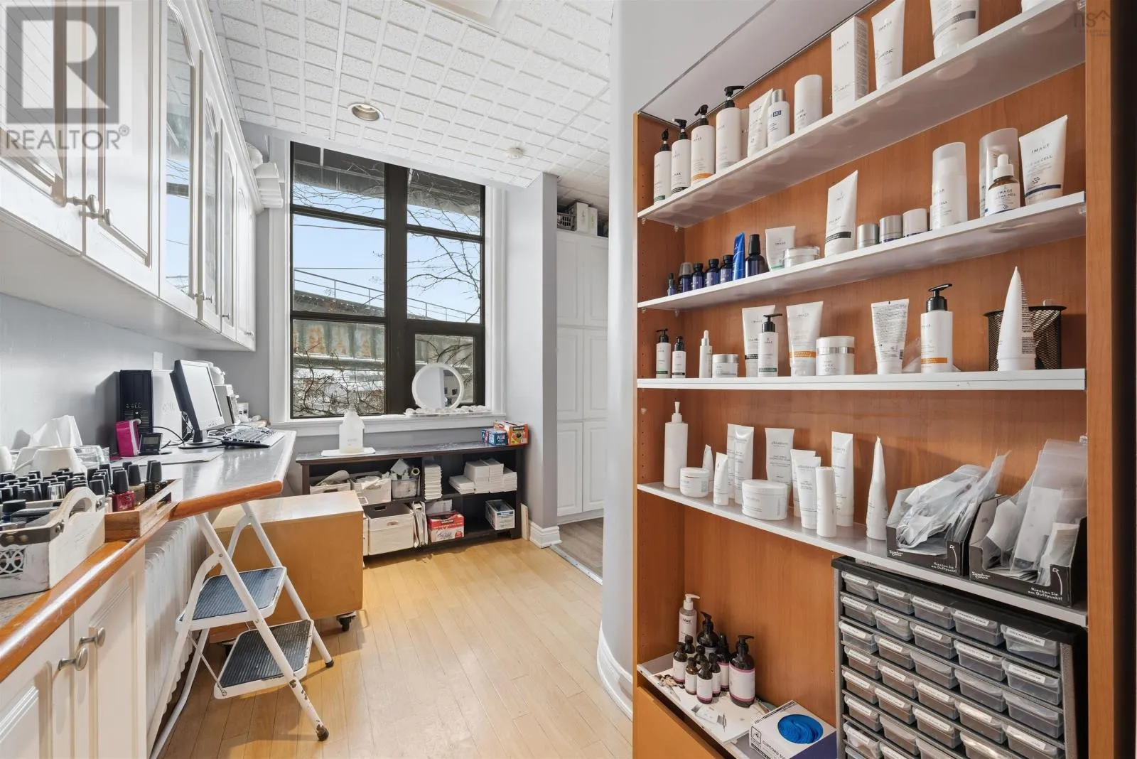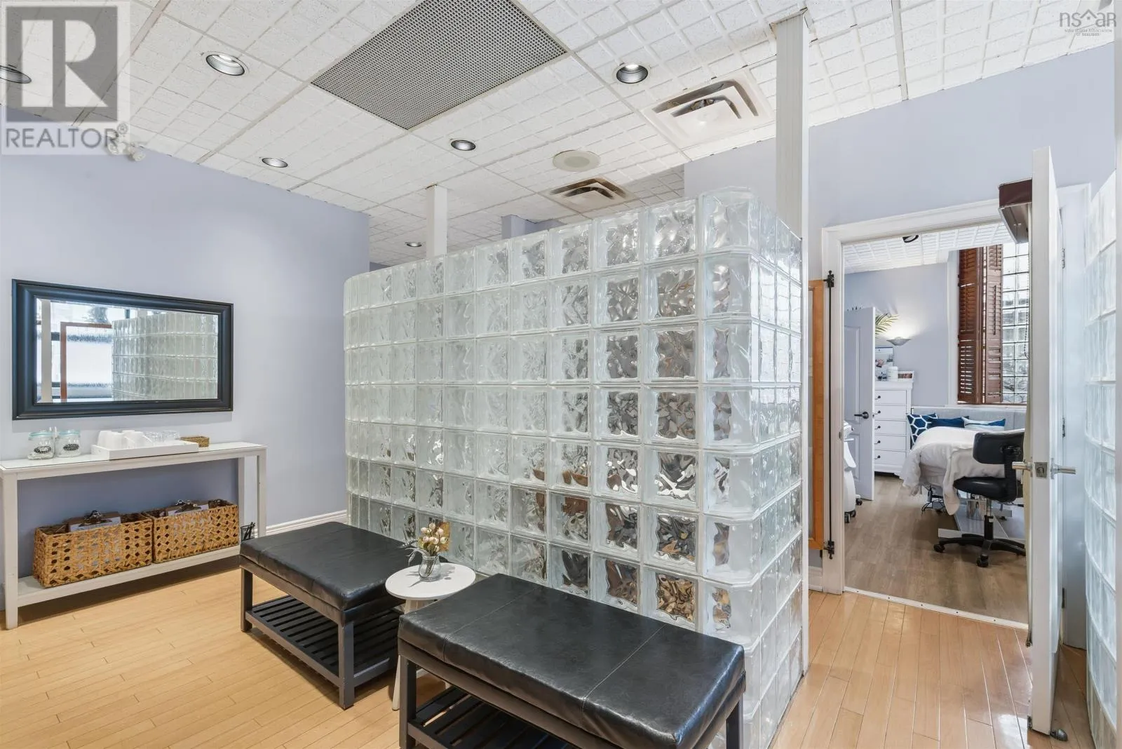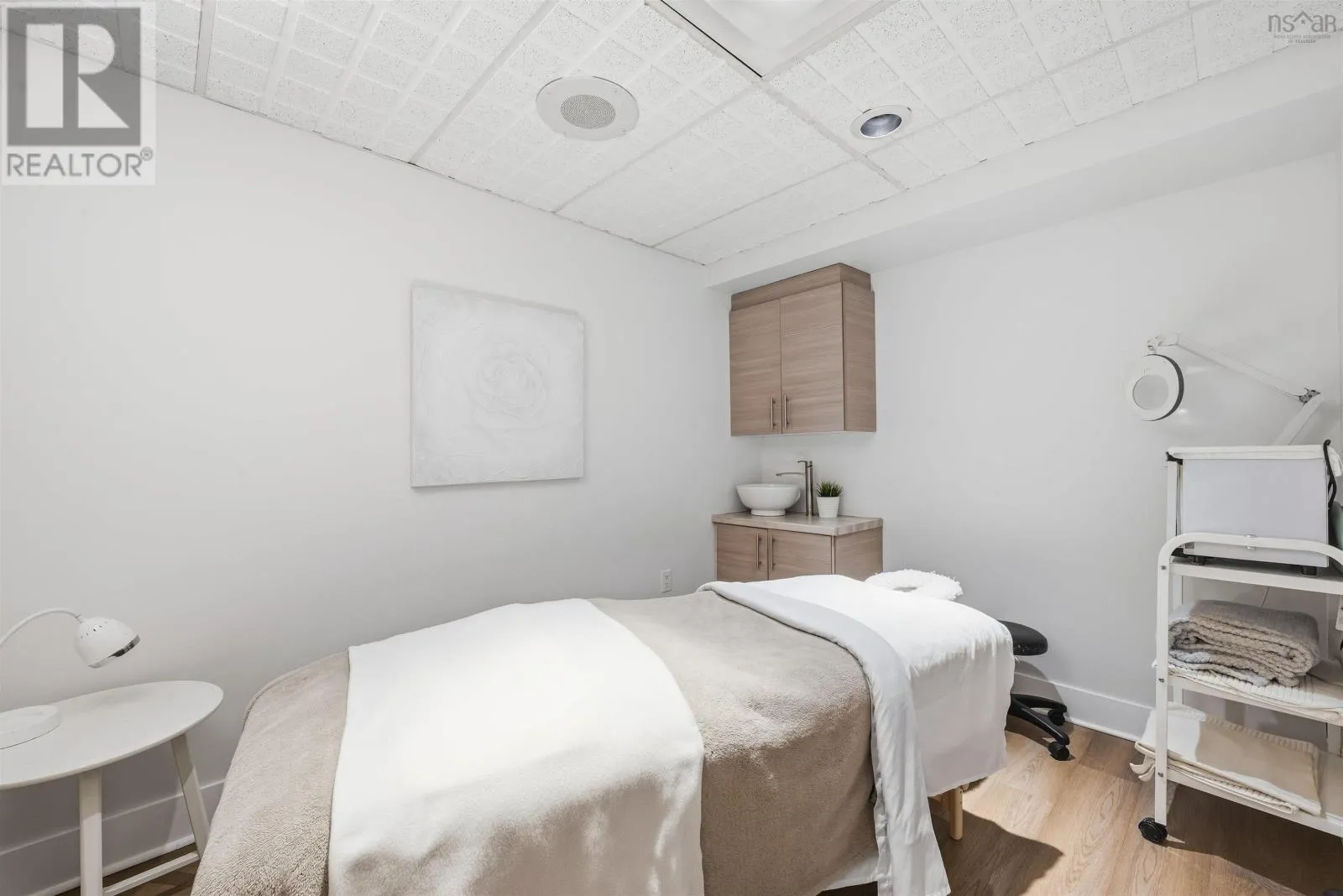 Corner of Bedford HWY and Shore Dr Now available, this well-known Bedford landmark offers exceptional visibility in a prime location with quick access to Highway 102. Situated on a 17,703 sq. ft. CMC-zoned commercial lot, this well-maintained 4,158 sq. ft. fully developed building spans two levels and features over 10 private rooms, four washrooms, a locker room, and a spectacular oversized deck with scenic water views of the Bedford Basin and Lower Sackville River. The flexible layout provides a rare opportunity to reconfigure the space to suit a variety of business needs or take advantage of the existing turnkey spa setup, which includes sinks in all seven treatment rooms/offices, modern fixtures, a welcoming reception area with adjoining office, and multiple semi-private spaces on the main floor for increased capacity. The lower level offers two additional treatment rooms, a laundry room, break room, kitchenette, tiled steam room, and an impressive locker room featuring two showers, double vanity, two water closets, solid wood lockers, and a side entrance leading to an expansive 60+ ft riverfront deck. A spacious 23 x 16 lobby includes a second kitchenette with an industrial sink and direct access to the side parking area. Additional parking available across the road for a nominal fee. Recent upgrades include a new roof and rooftop AC unit installed in 2023, further enhancing the value of this strategically positioned property with prominent road frontage in the heart of Bedford. (id:27476)