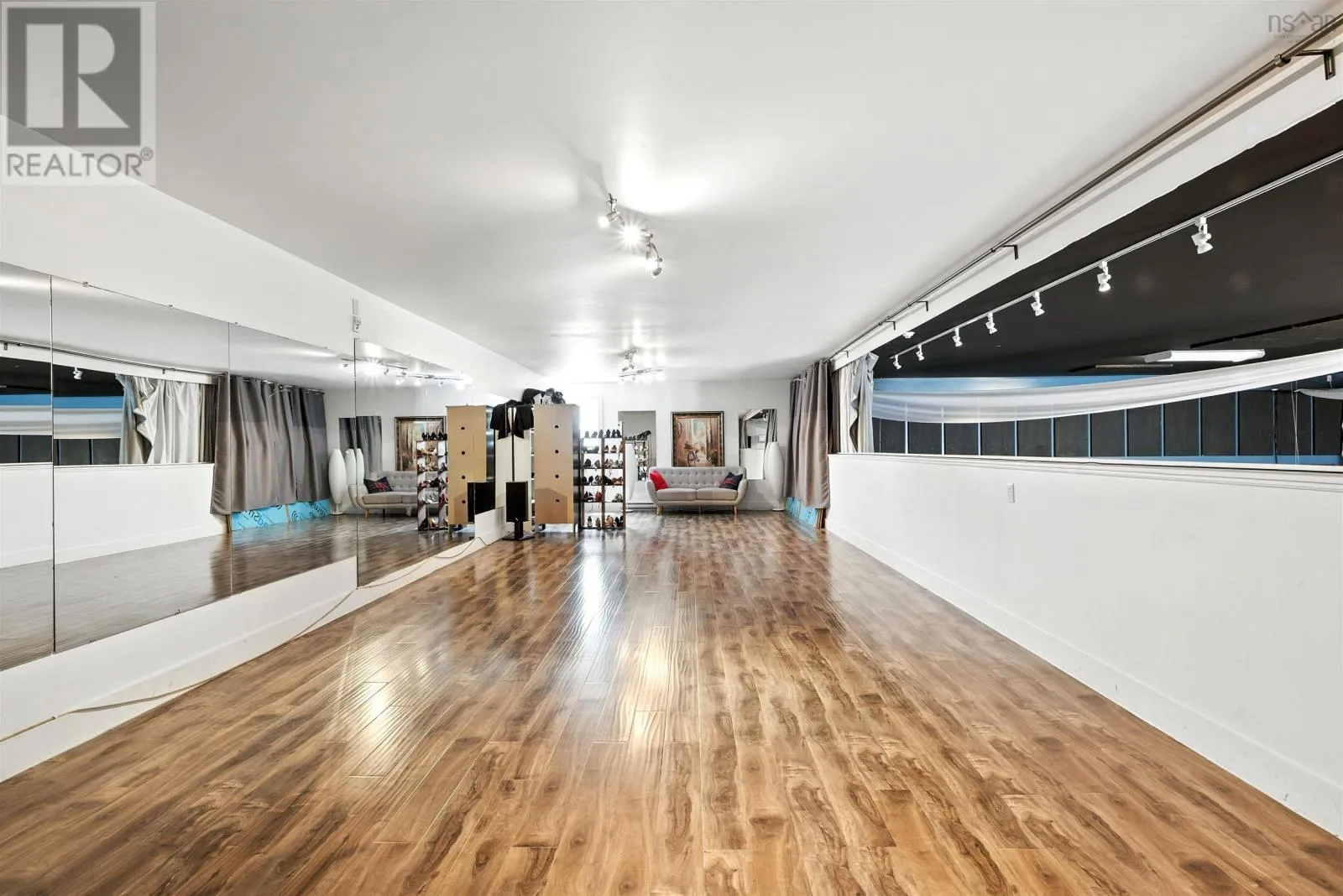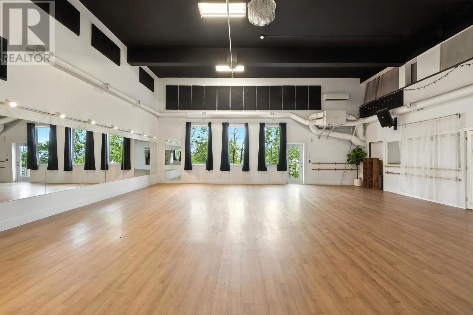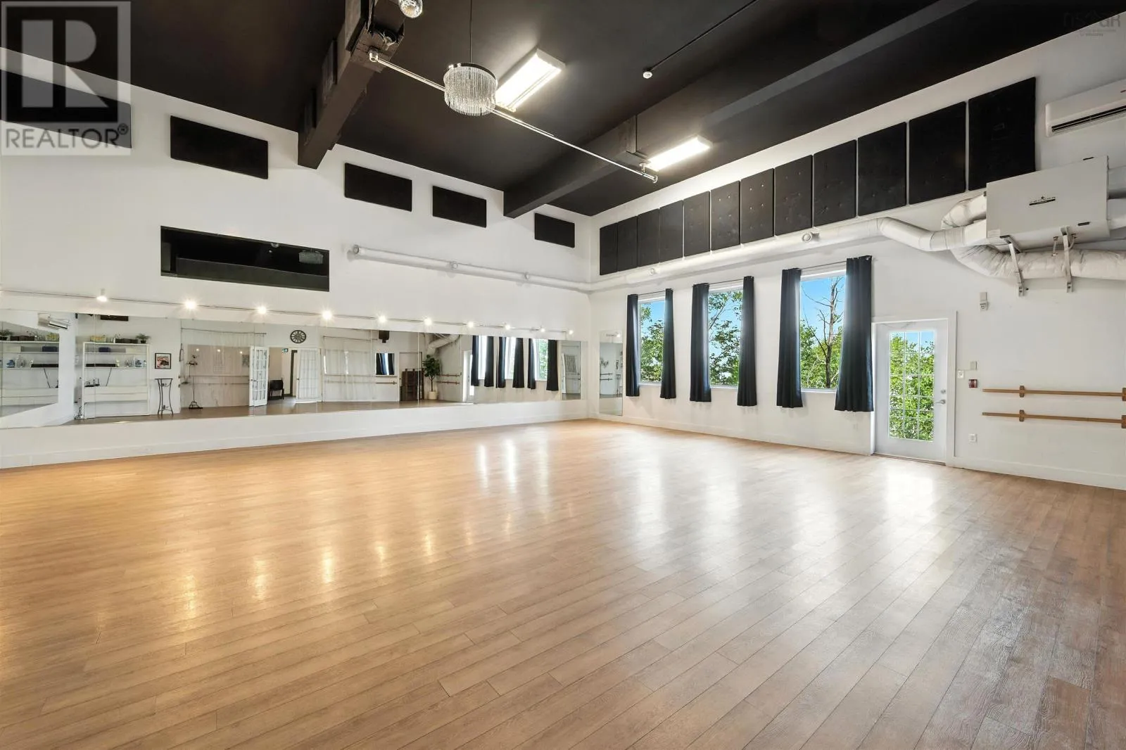 Off HWY 3, turn onto Lakelands Blvd, turn right onto Chainlake Dr, left onto McQuade Lake Crescent This like-new 7,000 sq. ft. commercial building presents a prime opportunity for recreational, special event, or wellness-focused businesses seeking a well-located space in Halifaxs continually expanding mainland commercial hubBayers Lake. Situated on a 16,543 sq. ft. lot with 16 paved parking spaces, the property offers excellent accessibility to Highways 102, 103, and downtown Halifax. Spanning four levels, the building features two expansive open-concept studio halls, two mezzanine levels overlooking the studios, and multiple flexible-use spaces that can be partitioned as needed to accommodate various business models and schedules. Designed with adaptability in mind, the space has hosted weddings, concerts, yoga, dance, and fitness classes, and offers the perfect environment for a wide range of services. The main level includes a large welcoming reception area accessed through double doors, a studio hall, kitchen, bathroom facilities, and a separate esthetician office. The second-floor mezzanine offers multiple office spaces and additional bathrooms, including one office with plumbing that previously served as a massage therapy space. The third level houses the largest studio hall, another office, and bathrooms, while the top floor features the final mezzanine space. Built with wood construction and impact-minimizing flooring, the building is equipped with in-floor heating, durable vinyl flooring throughout, an asphalt roof, a fireproofed northwest-facing wall, and a robust air-exchange system. This is an outstanding opportunity to launch or grow your business and be part of a vibrant and diverse commercial district. Building and land are for sale. (id:27476)