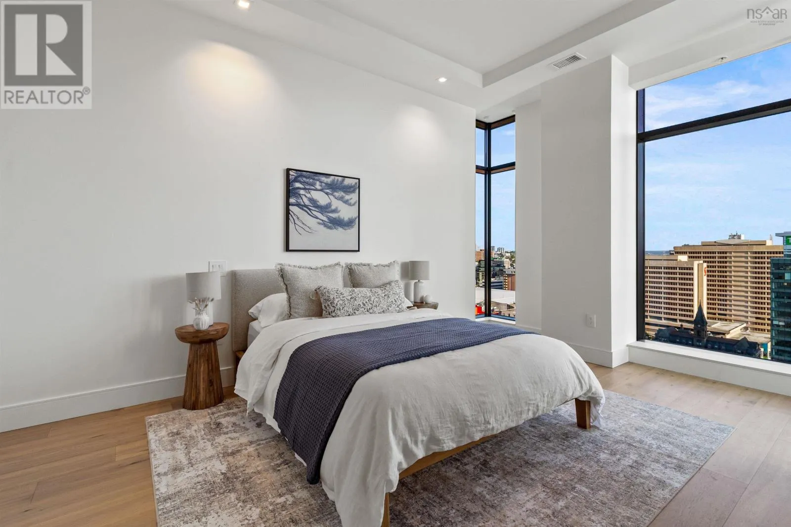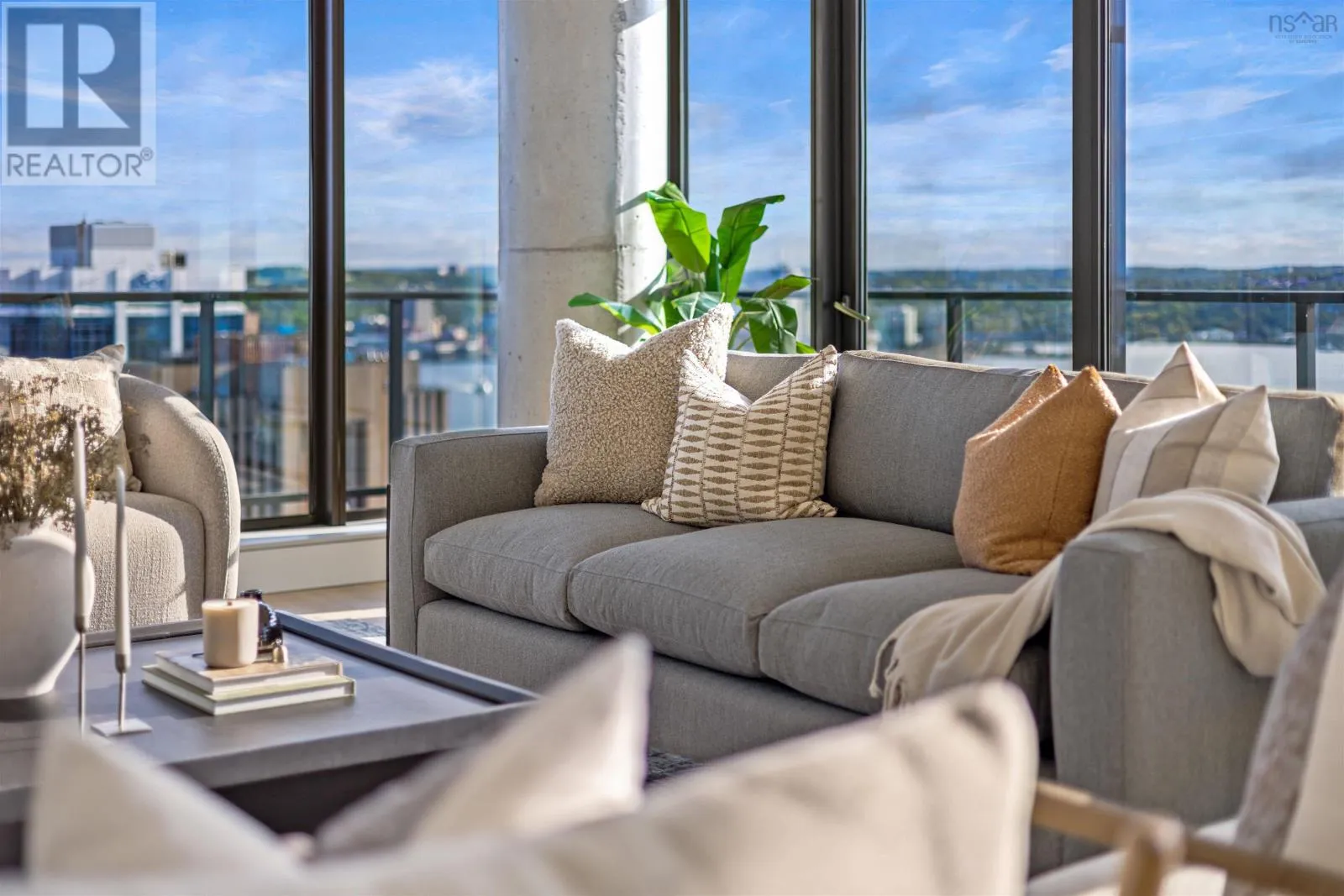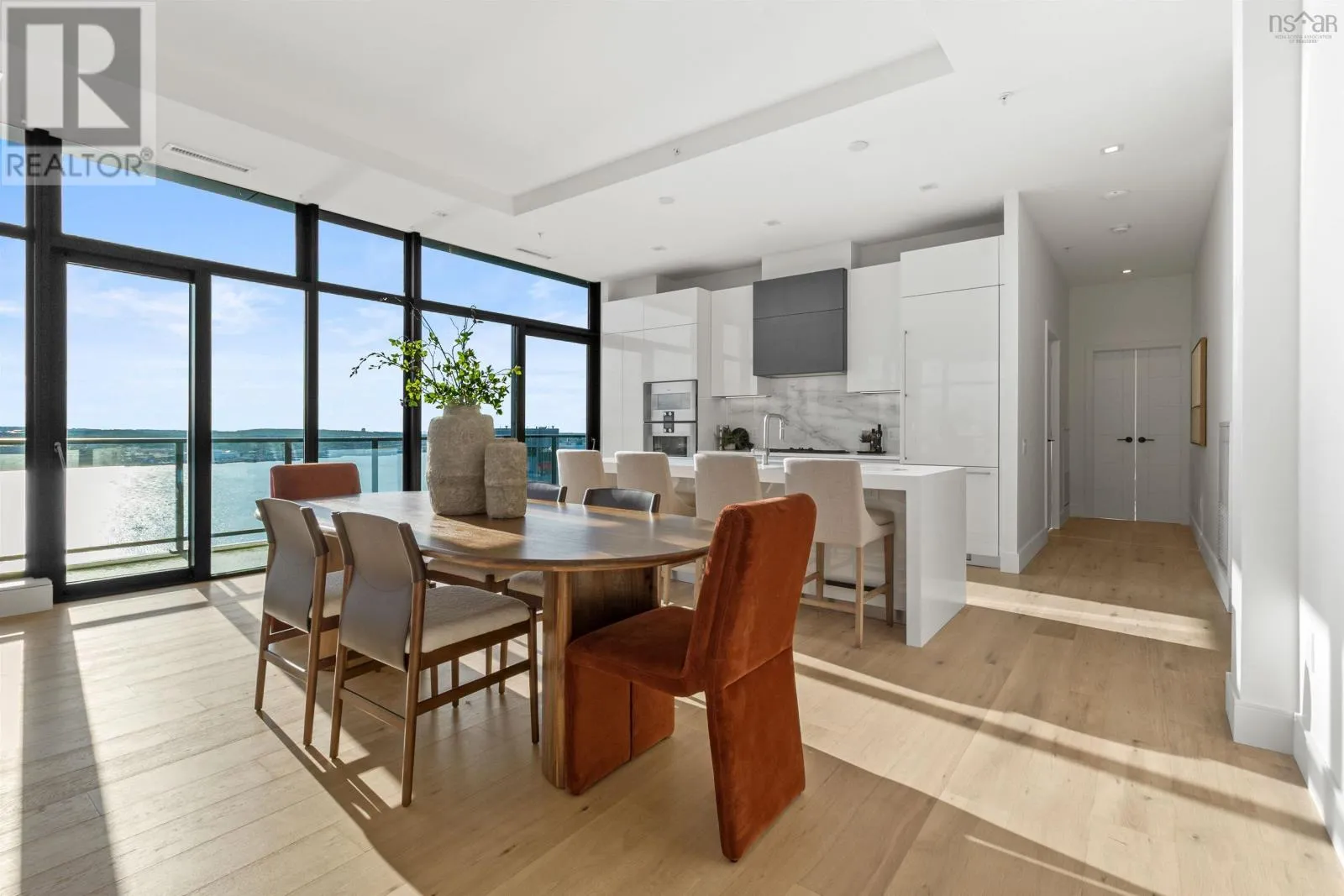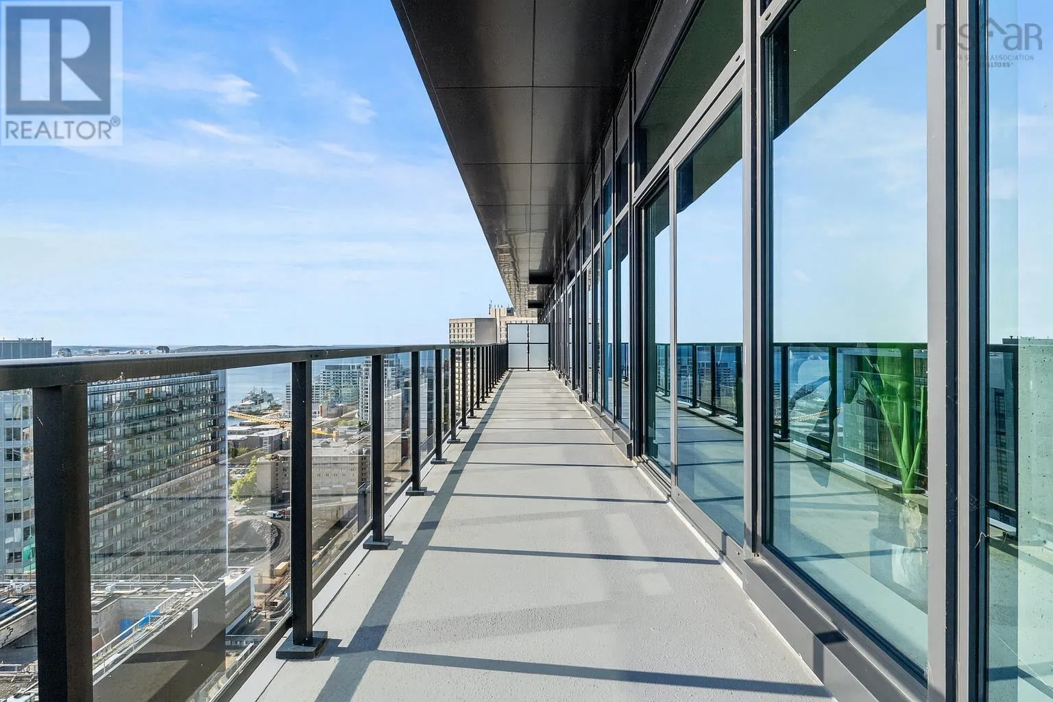 The lobby is on the corner of Sackville and Granville Street. Welcome to The Apex a newly offered penthouse that blends elevated design with breathtaking Halifax Harbour views at The Roy, the citys ultimate luxury residence. This thoughtfully designed 2,120 sq. ft. home offers a bright, modern layout that maximizes flow and functionality. Wall-to-wall windows frame the ever-changing waterfront, filling the great room with natural light and stunning views. The heart of The Apex is its contemporary kitchen, outfitted with premium Gaggenau appliances, crisp white quartz surfaces, and a striking Calacatta marble backsplash perfect for casual meals or elegant entertaining. The open-plan living and dining areas extend seamlessly to a generous 545 sq. ft. wraparound balcony, where mornings begin with sunrise coffee and evenings end with sunset cocktails over the harbour. Your tranquil primary suite includes a walk-in closet and spa-inspired ensuite with floating tub and heated floors. A spacious second bedroom, complete with its own ensuite, ensures comfort for guests or family. An elegant powder room, in-suite laundry, and ample storage round out this well-planned penthouse. Life at The Roy is designed for those who appreciate exceptional service: arrive via a state-of-the-art car elevator to secure indoor parking, while a dedicated 24-hour concierge handles the rest, from personal bookings at The Roy Club to everyday tasks. The amenity floor features everything you need: an indoor pool, steam room, sauna, gym, yoga studio, conference facilities, private theatre, library with billiards, and a stylish party room. At The Roy, everything for a life of luxury is right at home. But when youre ready to explore, Halifax secure, vibrant, and on the rise is waiting with acclaimed dining, lively shopping, the waterfront, and Citadel Hill just steps away. Step into this uppermost example of sophisticated living, where comfort, design, and views reach their zenith. (id:27476)