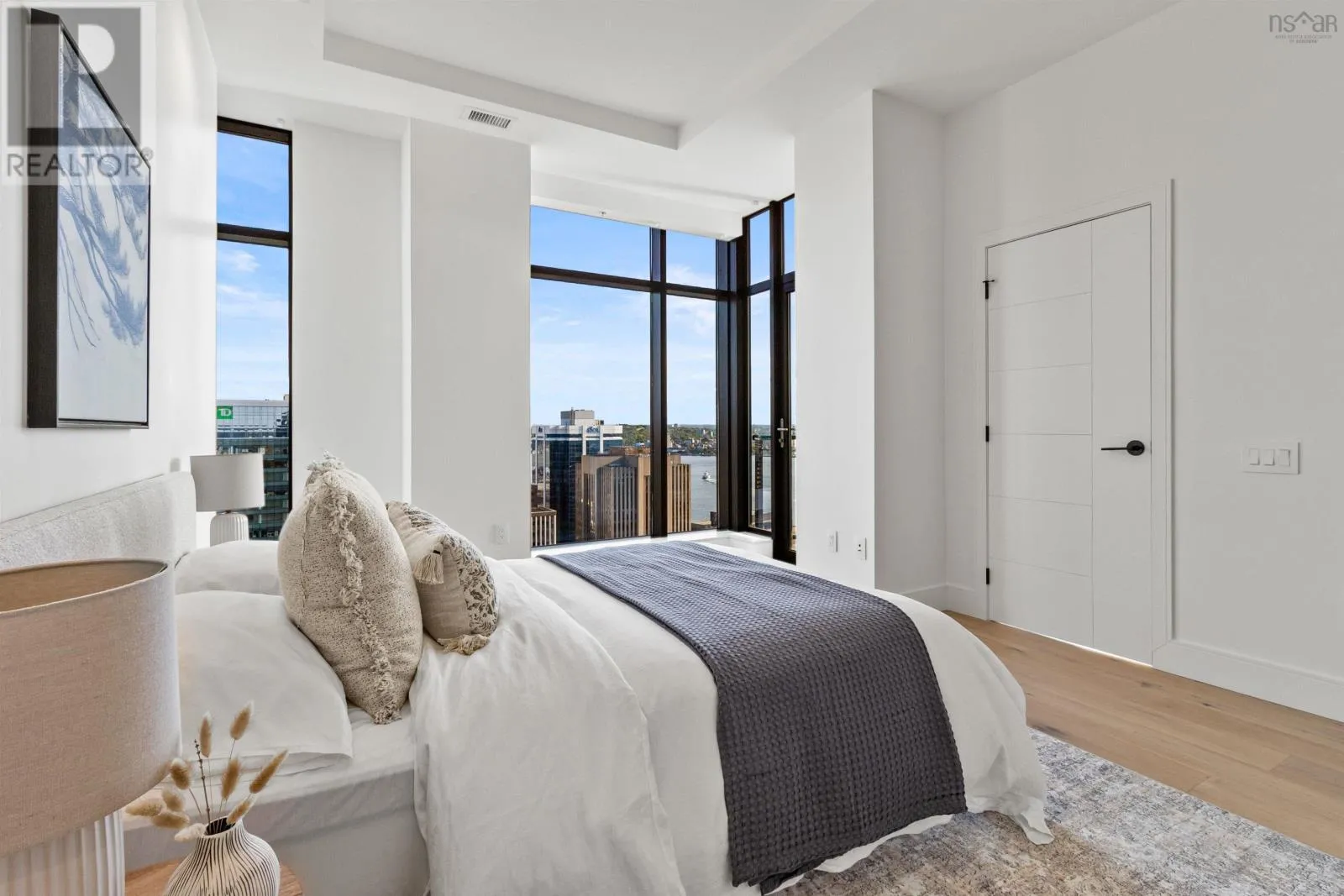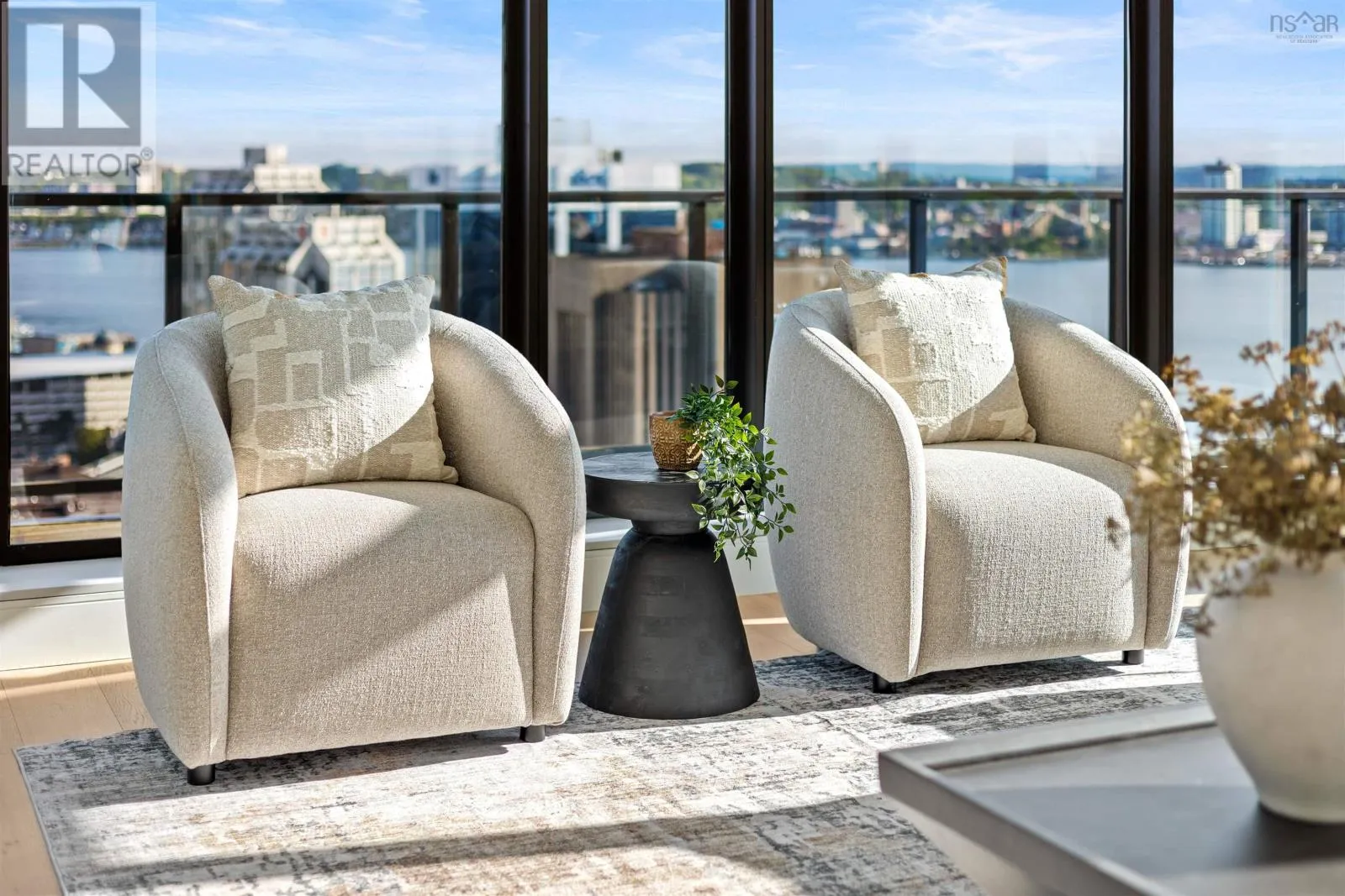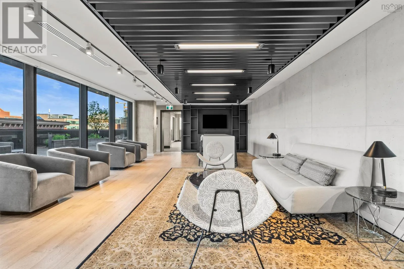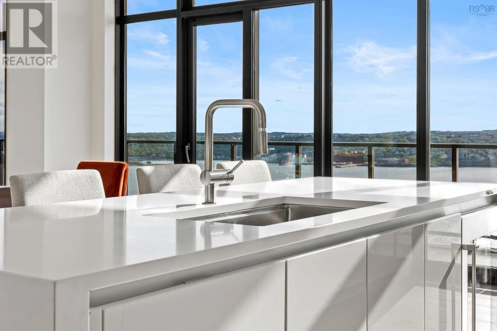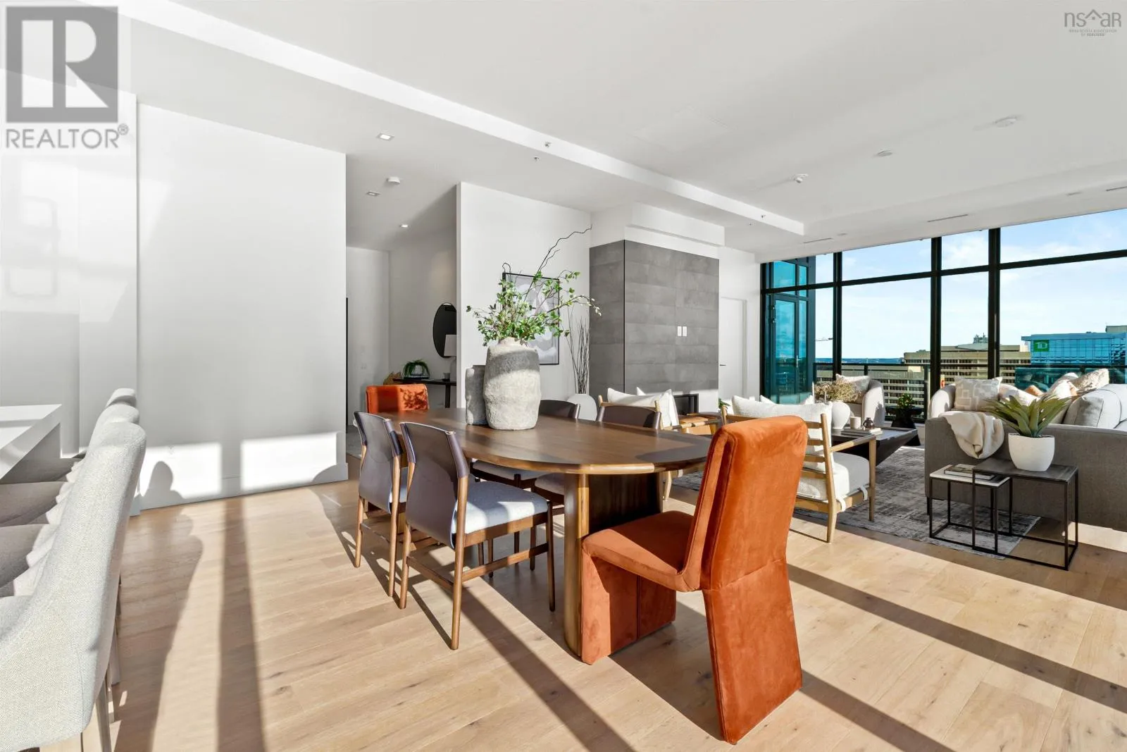 The lobby is on the corner of Sackville and Granville Street. Welcome to The Apex a newly offered penthouse that blends elevated design with breathtaking Halifax Harbour views at The Roy, the citys ultimate luxury residence. This thoughtfully designed 2,120 sq. ft. home offers a bright, modern layout that maximizes flow and functionality. Wall-to-wall windows frame the ever-changing waterfront, filling the great room with natural light and stunning views. The heart of The Apex is its contemporary kitchen, outfitted with premium Gaggenau appliances, crisp white quartz surfaces, and a striking Calacatta marble backsplash perfect for casual meals or elegant entertaining. The open-plan living and dining areas extend seamlessly to a generous 545 sq. ft. wraparound balcony, where mornings begin with sunrise coffee and evenings end with sunset cocktails over the harbour. Your tranquil primary suite includes a walk-in closet and spa-inspired ensuite with floating tub and heated floors. A spacious second bedroom, complete with its own ensuite, ensures comfort for guests or family. An elegant powder room, in-suite laundry, and ample storage round out this well-planned penthouse. Life at The Roy is designed for those who appreciate exceptional service: arrive via a state-of-the-art car elevator to secure indoor parking, while a dedicated 24-hour concierge handles the rest, from personal bookings at The Roy Club to everyday tasks. The amenity floor features everything you need: an indoor pool, steam room, sauna, gym, yoga studio, conference facilities, private theatre, library with billiards, and a stylish party room. At The Roy, everything for a life of luxury is right at home. But when youre ready to explore, Halifax secure, vibrant, and on the rise is waiting with acclaimed dining, lively shopping, the waterfront, and Citadel Hill just steps away. Step into this uppermost example of sophisticated living, where comfort, design, and views reach their zenith. (id:27476)