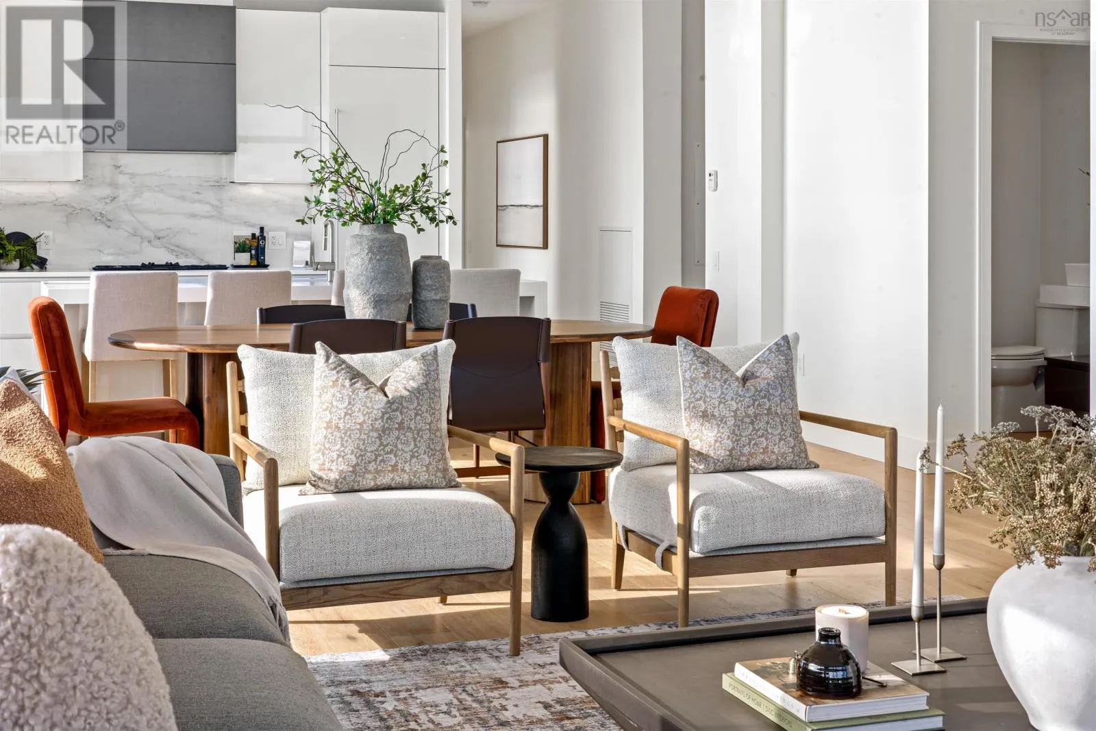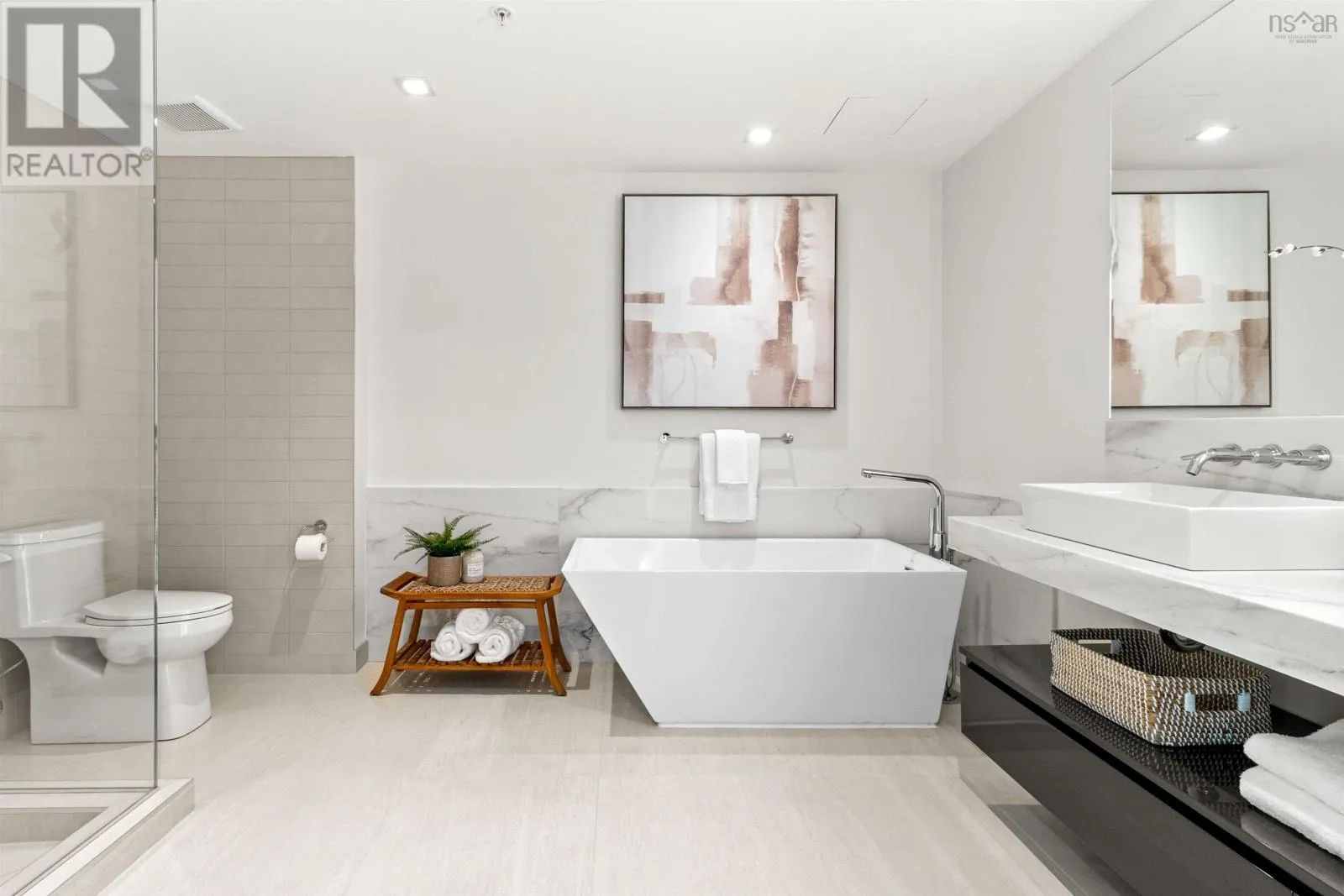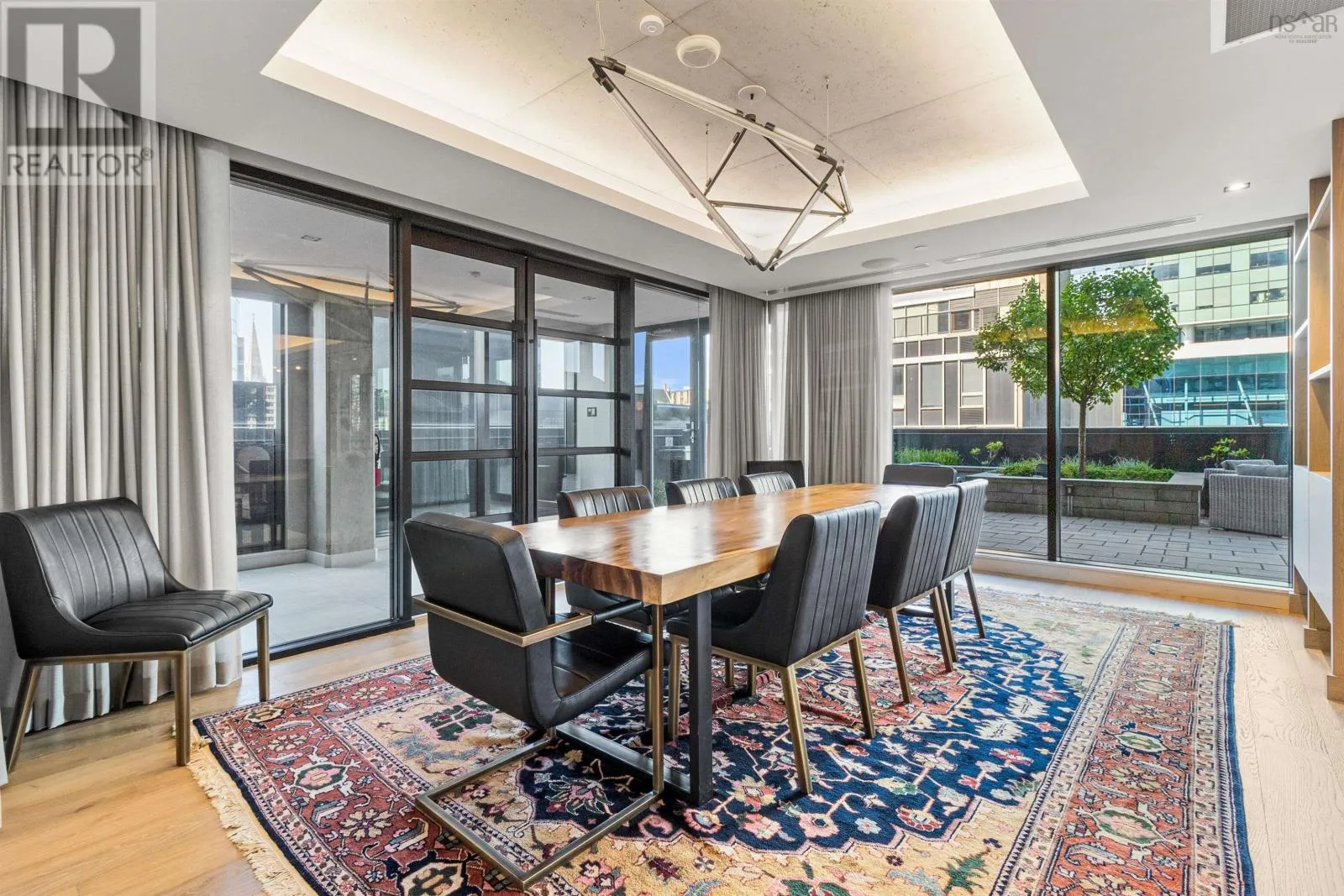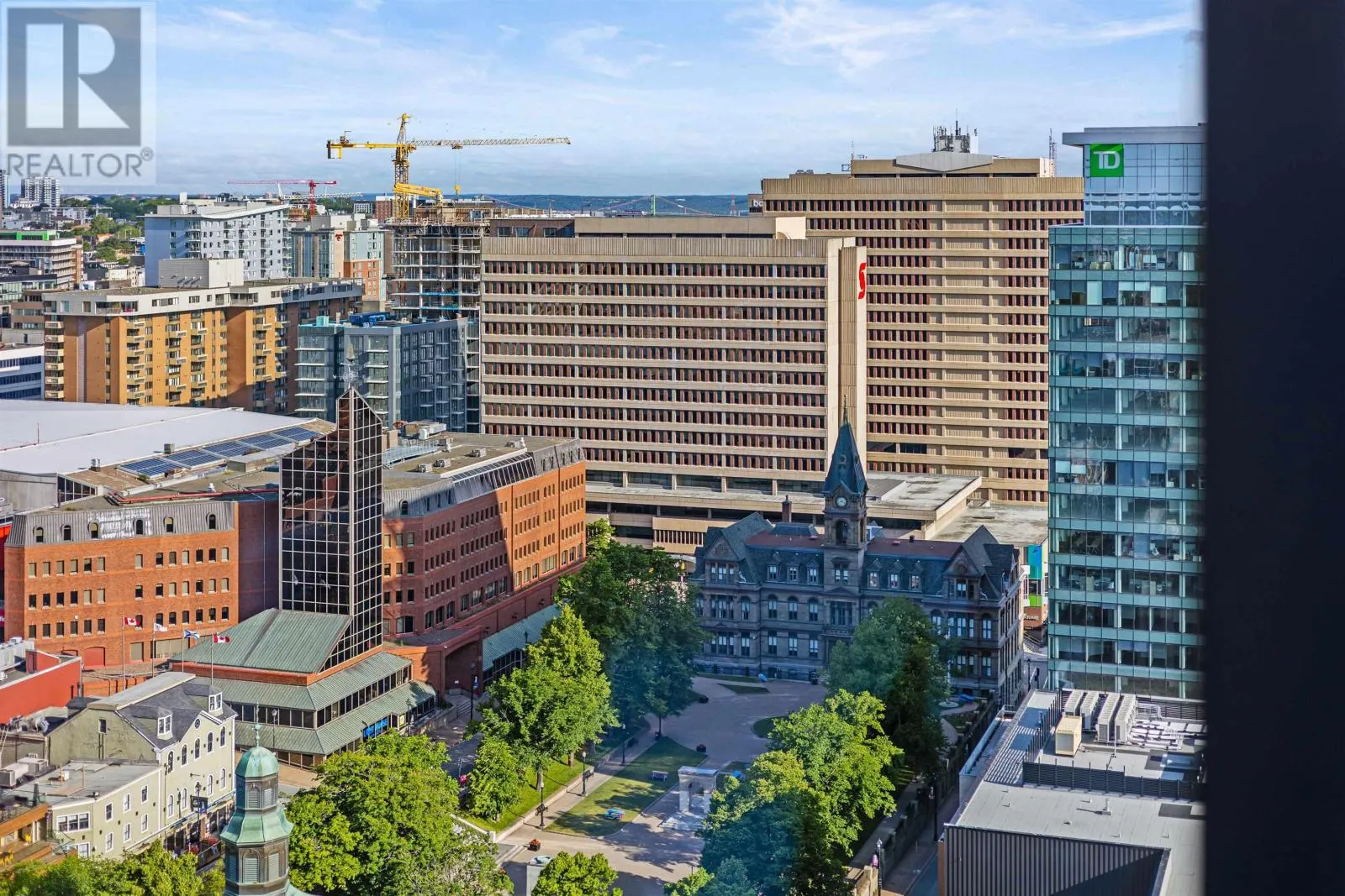 The lobby is on the corner of Sackville and Granville Street. Welcome to The Apex a newly offered penthouse that blends elevated design with breathtaking Halifax Harbour views at The Roy, the citys ultimate luxury residence. This thoughtfully designed 2,120 sq. ft. home offers a bright, modern layout that maximizes flow and functionality. Wall-to-wall windows frame the ever-changing waterfront, filling the great room with natural light and stunning views. The heart of The Apex is its contemporary kitchen, outfitted with premium Gaggenau appliances, crisp white quartz surfaces, and a striking Calacatta marble backsplash perfect for casual meals or elegant entertaining. The open-plan living and dining areas extend seamlessly to a generous 545 sq. ft. wraparound balcony, where mornings begin with sunrise coffee and evenings end with sunset cocktails over the harbour. Your tranquil primary suite includes a walk-in closet and spa-inspired ensuite with floating tub and heated floors. A spacious second bedroom, complete with its own ensuite, ensures comfort for guests or family. An elegant powder room, in-suite laundry, and ample storage round out this well-planned penthouse. Life at The Roy is designed for those who appreciate exceptional service: arrive via a state-of-the-art car elevator to secure indoor parking, while a dedicated 24-hour concierge handles the rest, from personal bookings at The Roy Club to everyday tasks. The amenity floor features everything you need: an indoor pool, steam room, sauna, gym, yoga studio, conference facilities, private theatre, library with billiards, and a stylish party room. At The Roy, everything for a life of luxury is right at home. But when youre ready to explore, Halifax secure, vibrant, and on the rise is waiting with acclaimed dining, lively shopping, the waterfront, and Citadel Hill just steps away. Step into this uppermost example of sophisticated living, where comfort, design, and views reach their zenith. (id:27476)