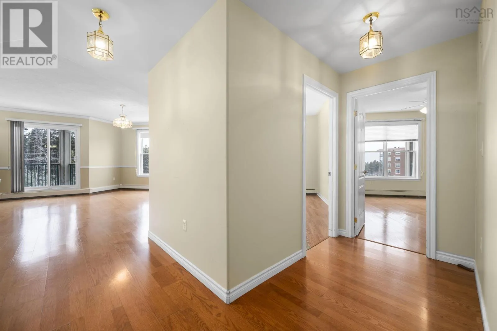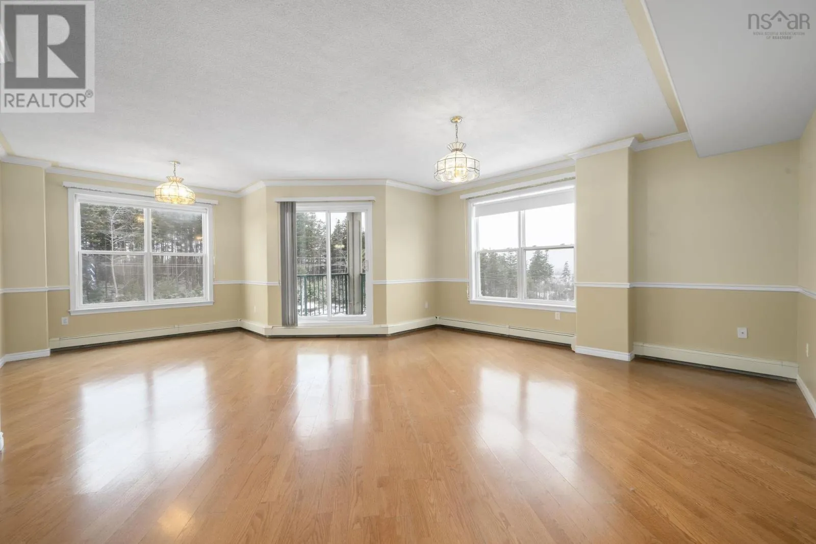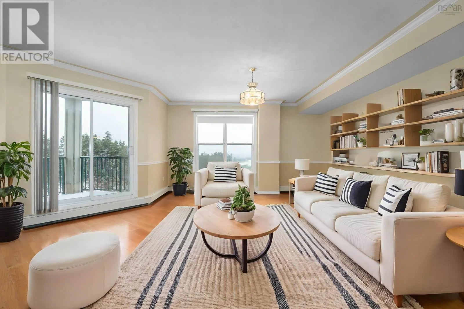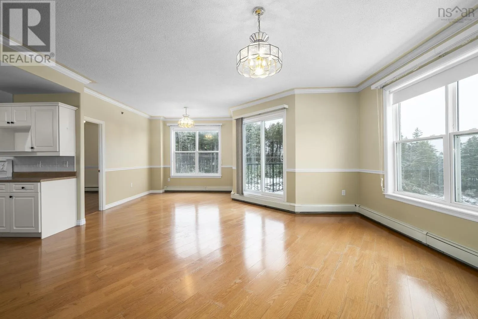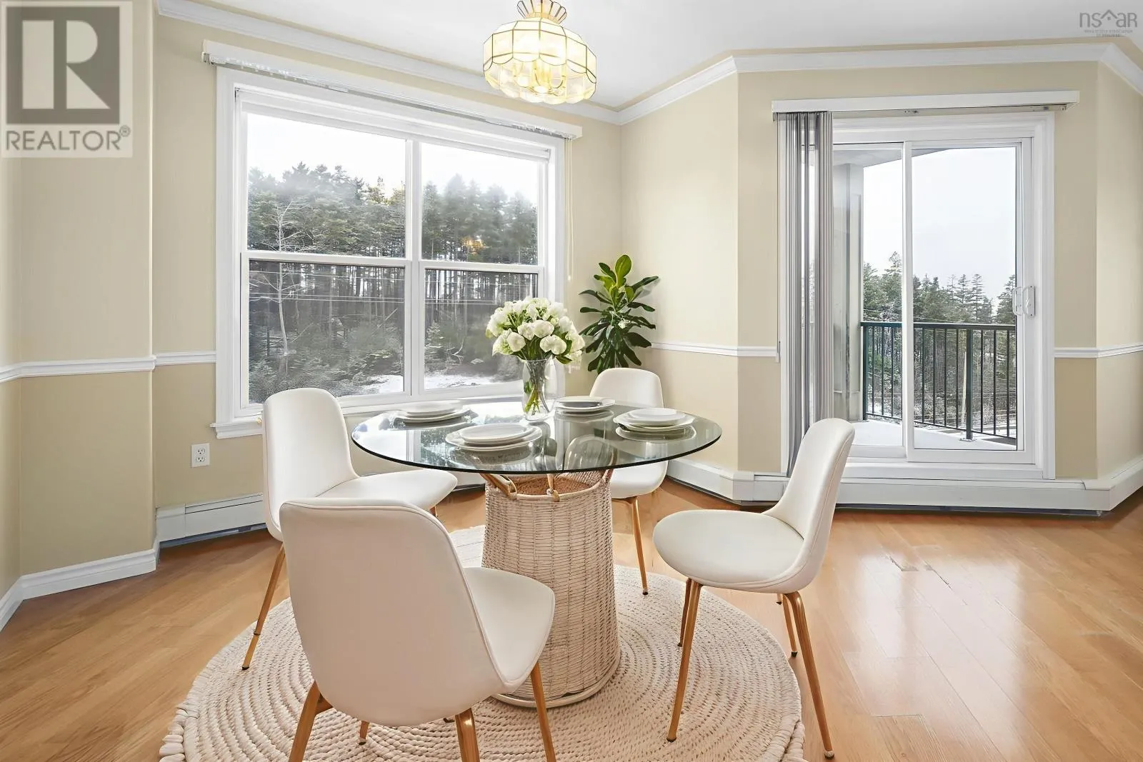 Lacewood to Regency Park Drive Welcome to the highly sought-after Tiara Gardens condo community! Ideally located in Clayton Park West, this well-managed building is within walking distance of transit, shopping, restaurants, the Canada Games Centre, public library, and scenic trail systems. This spacious 2-bedroom plus den corner unit offers over 1,400 sq. ft. of living space and backs onto a tranquil, lush green setting. Large windows in every room flood the home with natural light, enhanced by 9-foot ceilings and hardwood flooring in the bedrooms + den. The open-concept layout features a kitchen with ample counter space and a functional breakfast bar overlooking the bright living and dining areas - perfect for everyday living and entertaining. A quiet den/office provides an ideal work-from-home space. Additional highlights include in-unit laundry, in-unit storage, a separate storage locker, and assigned underground parking. Tiara Gardens offers an impressive range of amenities, including a guest suite, library, fitness room, wash bay, and oversized underground parking. The building is also pet-friendly, welcoming your furry companions. A fantastic opportunity to enjoy comfort, convenience, and community in one of Halifaxs most desirable condo locations. (id:27476)
