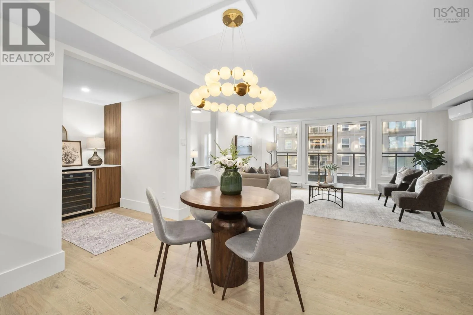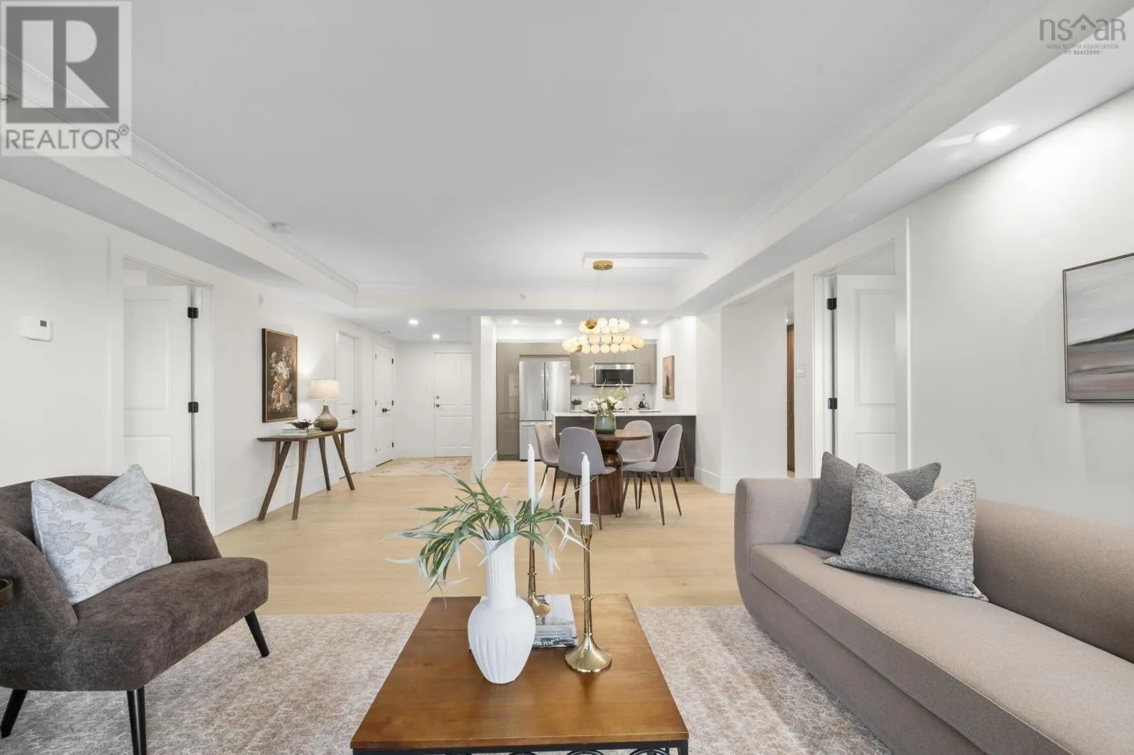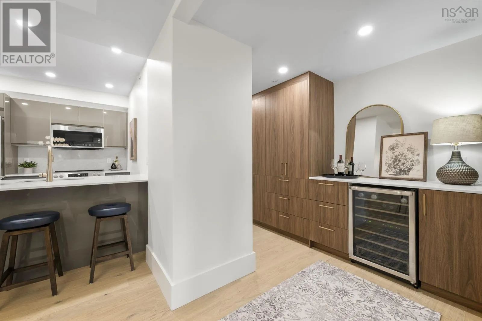 Spring Garden Rd to Summer Street to Civic 1540 Garden Crest This fully reimagined and meticulously renovated two-bedroom, one-bath residence at the prestigious Garden Crest Condominiums captures the essence of contemporary elegance. Every surface, fixture and finish has been thoughtfully curated to elevate the space with quiet luxury and effortless glamour. Overlooking the lush landscaped courtyard, no detail was overlooked in this full-scale redesign. Step inside and let the transformation speak for itself! The brand-new kitchen is a showpiece, anchored by a waterfall island, outfitted with top tier appliances and framed with statement cabinetry. Designed to impress, the beverage centre with integrated wine fridge and endless floor to ceiling built-ins steals the spotlight and is the ultimate entertaining upgrade. The primary bedroom serves up serious style points with a walk-in closet big enough to house every outfit, accessory, and impulse buy youve ever loved. The designer bath looks straight out of a glossy magazine, dressed in flawless finishes, delivering five-star serenity. A dedicated laundry room offers exceptional storage while two ductless heat pumps provide customizable comfort through every season. This premier building also spoils residents with top-tier amenities, an upscale fitness centre with sauna, games room, meeting room and elegant resident lounge. Enjoy the ease of included parking and storage, plus the reassurance of an attentive on-site resident manager. Nestled in the coveted Spring Garden Road district, Garden Crest offers the citys best at your doorstep- the Halifax Public Gardens, upscale shopping, fine dining, hospitals, and universities are all just steps away. Whether youre starting out, downsizing or simply craving a space that feels brand new- all thats left to do is unpack and show it off! There is a virtual tour available. (id:27476)