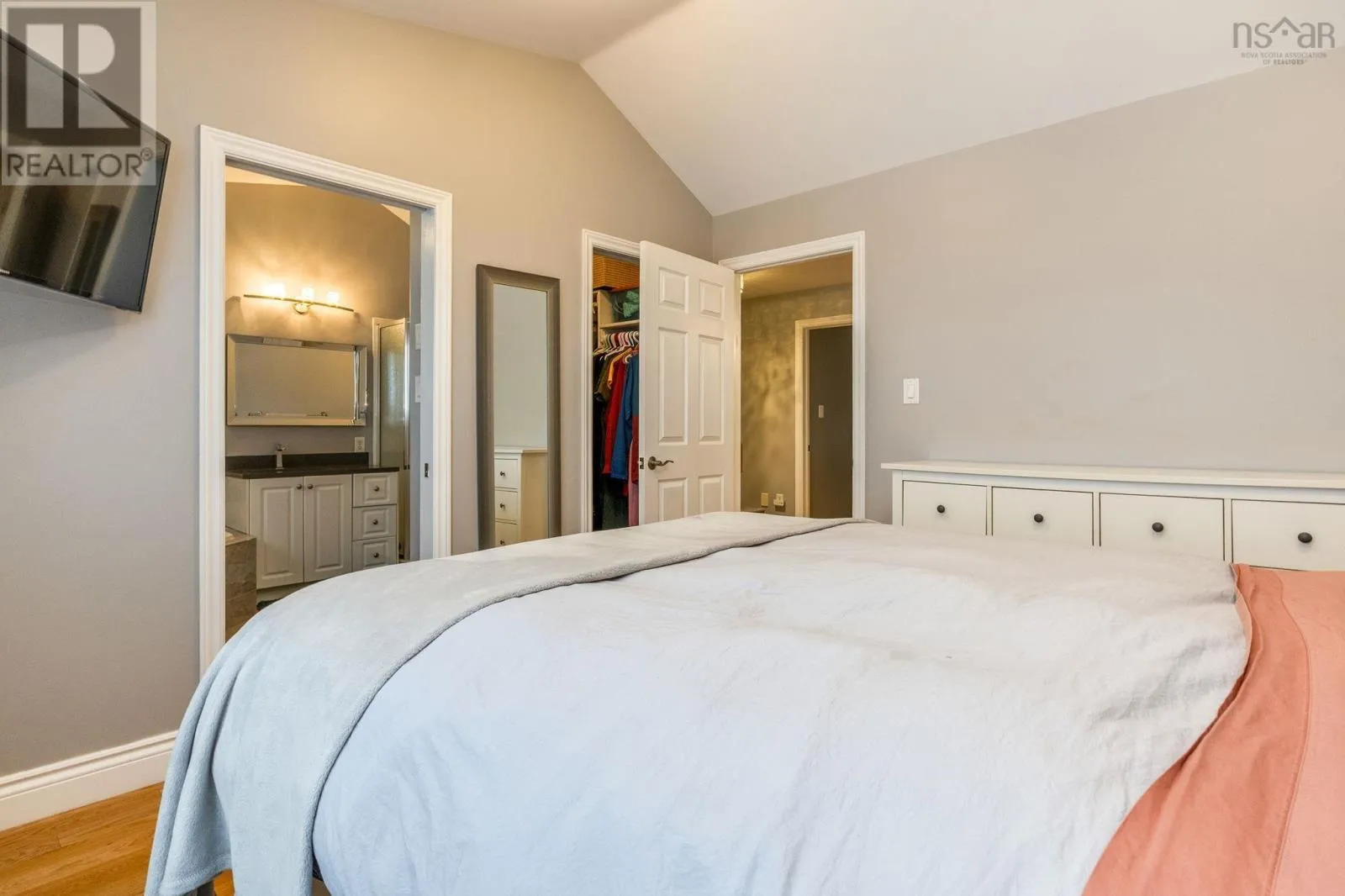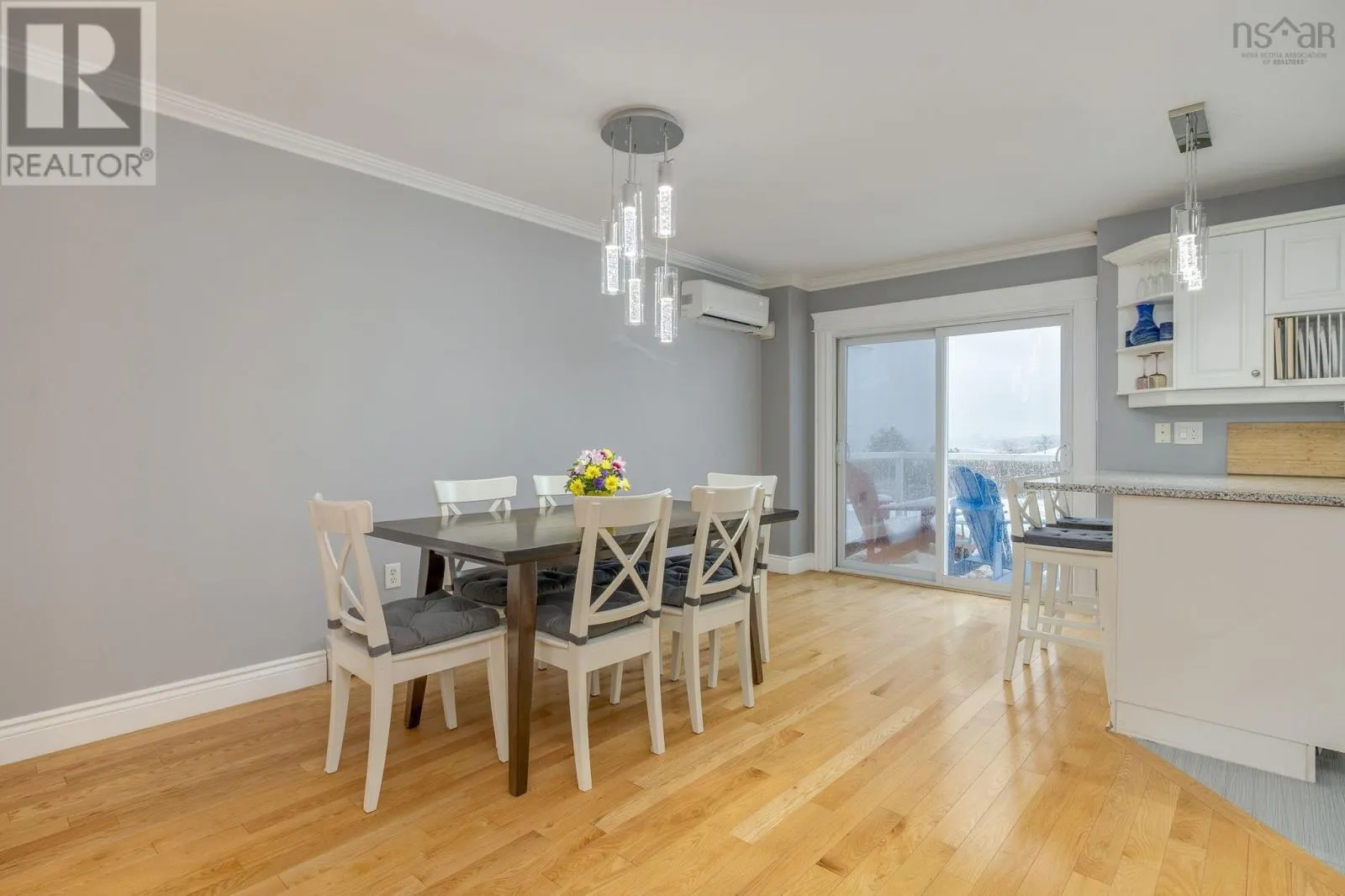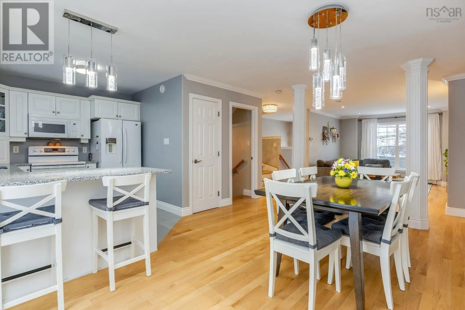 Bedford Highway to Larry Uteck, Highway 102 to Larry Uteck(exit 2B) Searching for a move-in-ready home with a great view? This impeccably maintained three bedroom executive townhome offers modern design, quality upgrades, and a truly exceptional setting. Ideal for first-time buyers, downsizers, or families seeking access to excellent schools, this well-located property provides convenient access to amenities and direct transit to downtown. Inside, the home showcases tasteful decor and a bright south-west exposure that captures sweeping views of the city, Bedford Basin, and the Harbour Bridges. Every detail has been carefully considered, with thoughtful upgrades and quality finishes throughout. The main living level features a powder room, and an open-concept layout designed for both everyday living and entertaining. Gleaming hardwood floors, large windows, and patio doors leading to the deck allow natural light to flood the space. The modern white kitchen is both functional and stylish, offering granite countertops, convenient mini-pantry and an inspiring space to cook and gather. Upstairs, hardwood flooring continues into the spacious primary bedroom, where vaulted ceilings, stunning views, and a walk-in closet create a serene retreat. The upscale ensuite feels like a private spa, complete with a Jacuzzi tub, quartz countertops, and beautifully updated tilework. A window seat overlooking the harbour provides the perfect place to relax and unwind. Two additional generously sized bedrooms and a full 4 piece bath complete this level. The lower level offers a versatile family room or home theatre, along with a laundry area and ample storage. With a walkout to the exterior and an attached garage perfect for a home gym, this level adds flexibility and functionality to the home. (id:27476)