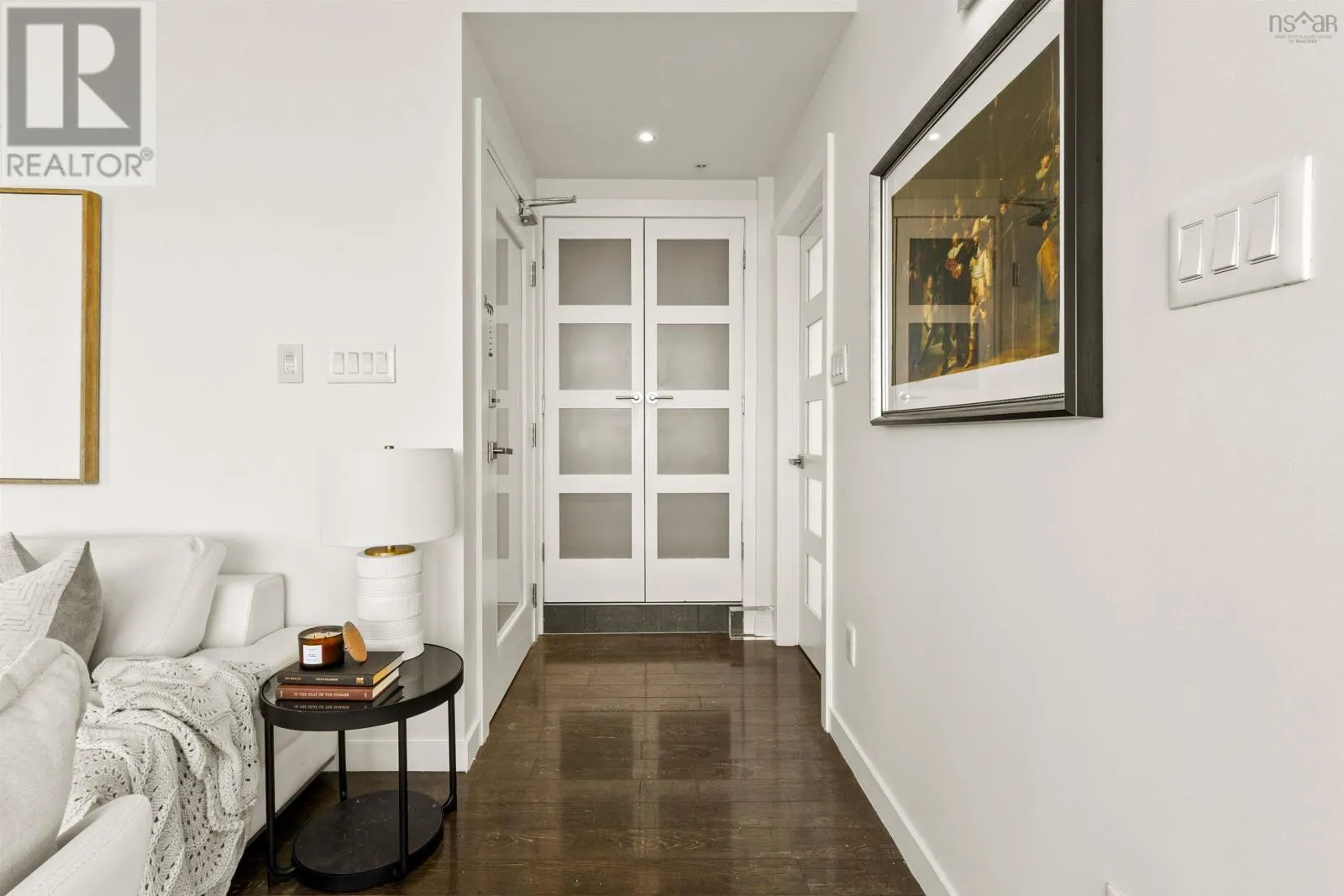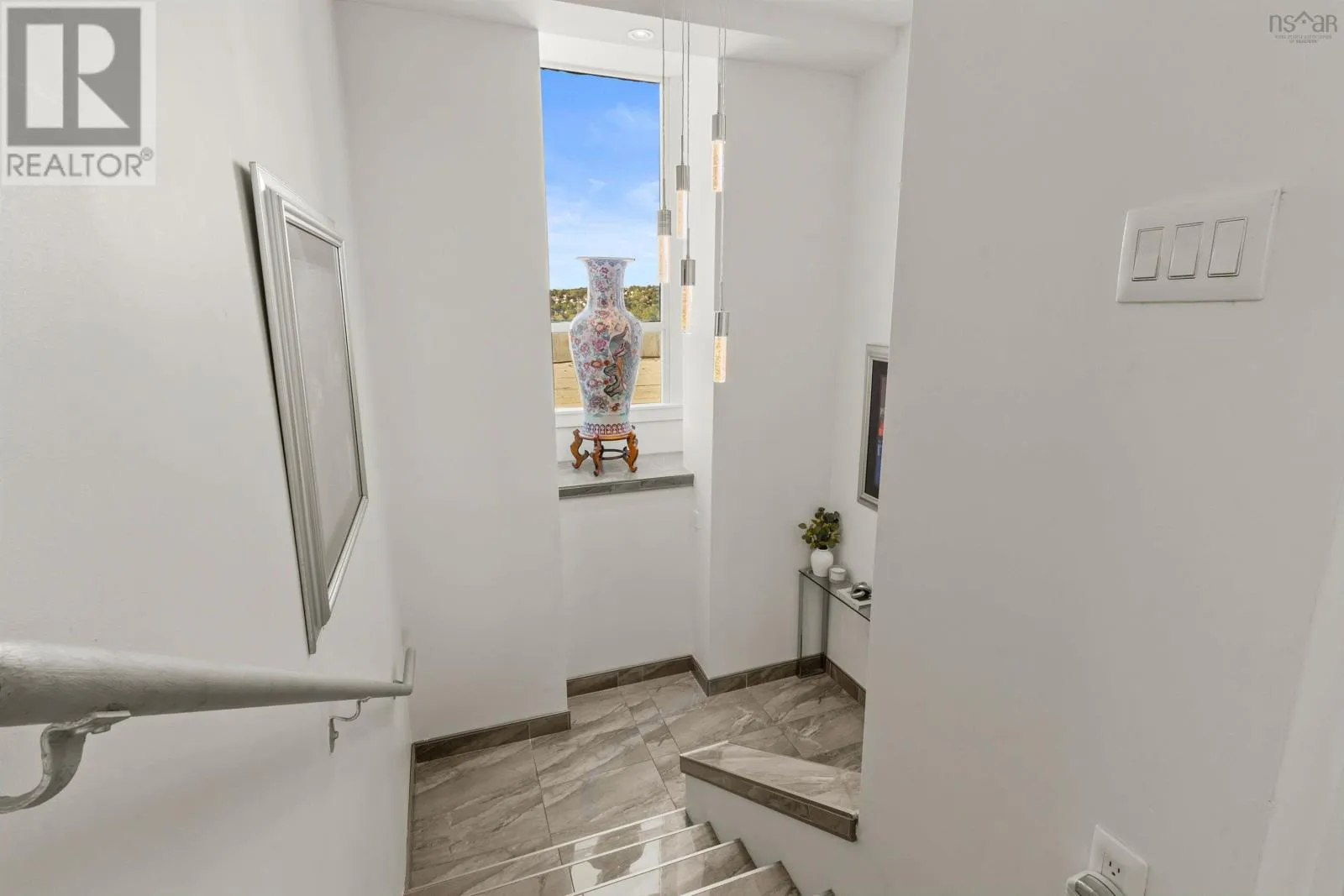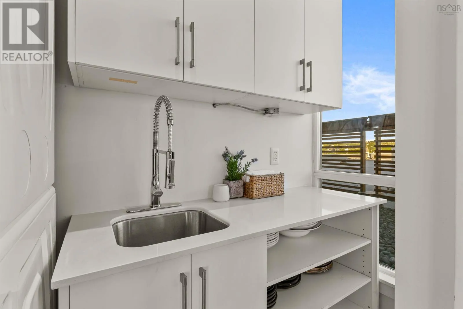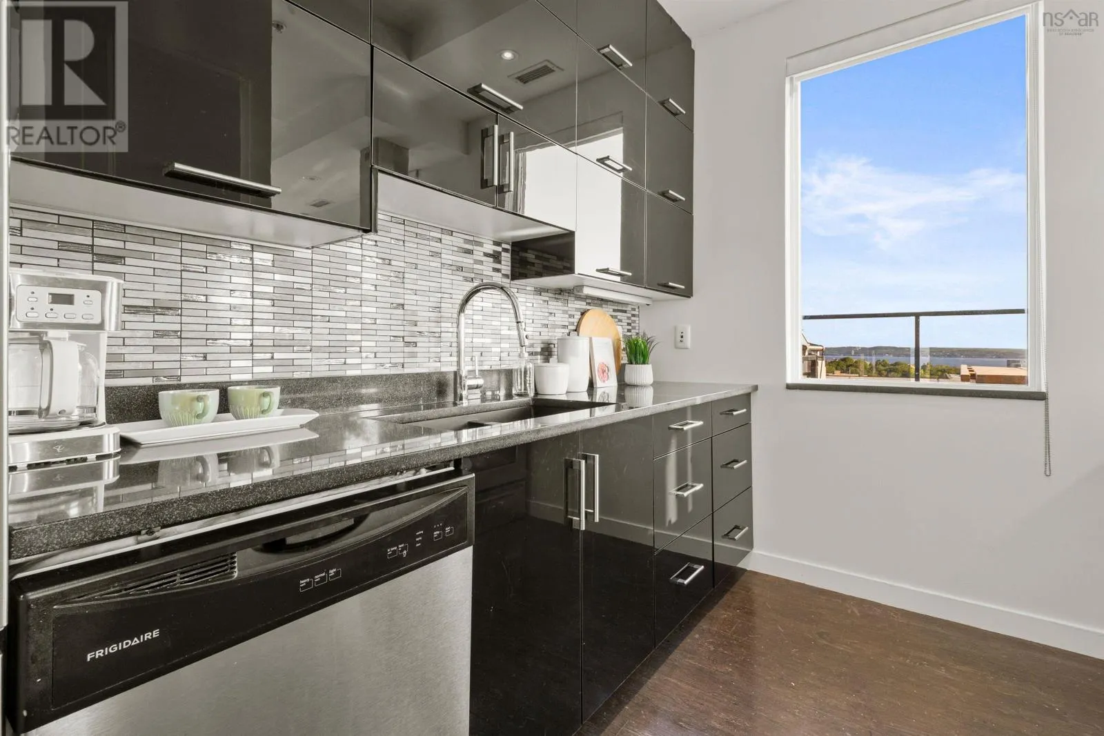 Joseph Howe to Dutch Village. Welcome to elevated city living in a rare rooftop penthouse residence offering approximately 750 sq. ft. of private outdoor terrace space and the ease of refined condo living. Perched atop the iconic St. Lawrence Place, this top floor home offers exceptional privacy with no shared walls and sweeping 360 degree views of the Bedford Basin, Northwest Arm, and city skyline. The residence spans just under approx. 1,400 sq. ft. of thoughtfully designed interior space plus a wraparound terrace and was designed by the current owner, a renowned Halifax architect responsible for over 140 buildings, ensuring every detail reflects intention and quality. Sun filled living and dining areas feature custom millwork, curated finishes, in unit laundry, and beautiful ensuite. The primary bedroom showcases floor to ceiling glass that fills the space with natural light and city views. The kitchen is streamlined and stylish with stainless appliances, glass tile backsplash, and stone countertops. The expansive private terrace is ideal for outdoor dining, relaxing, or entertaining. Building amenities include a fitness room, social room, underground parking, and large storage locker. Conveniently located just off the Peninsula with quick access downtown and close to major routes, Shoppers Drug Mart, the Superstore, banks, and the Chain of Lakes Trail, this is a truly special offering for buyers seeking privacy, design, and lifestyle. (id:27476)