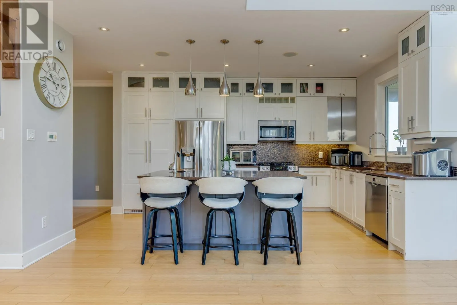 Springvale Ave onto Milsom Street Welcome to this immaculate 4,176 sq ft home, ideally located on a tree-lined street in the highly sought-after Fairmount neighborhoodjust minutes from top-rated public and private schools. The open-concept main level features a spacious kitchen and dining area, highlighted by soaring 17-foot ceilings with exposed beams and an abundance of windows that flood the space with natural light and offer serene views of the private backyard.Upstairs, you'll find a luxurious primary suite complete with a walk-in closet and a cozy ensuite featuring a jetted tub. Three additional generously sized bedrooms and a full main bath complete the upper level.The lower level is designed for entertaining, offering a home theatre, a large recreation room, a live-edge wet bar, and a walkout to a fully fenced backyard. Additional features include an efficient heat pump system, double garage, pool table, sauna, and shuffleboard included. Do not miss out. (id:27476)
