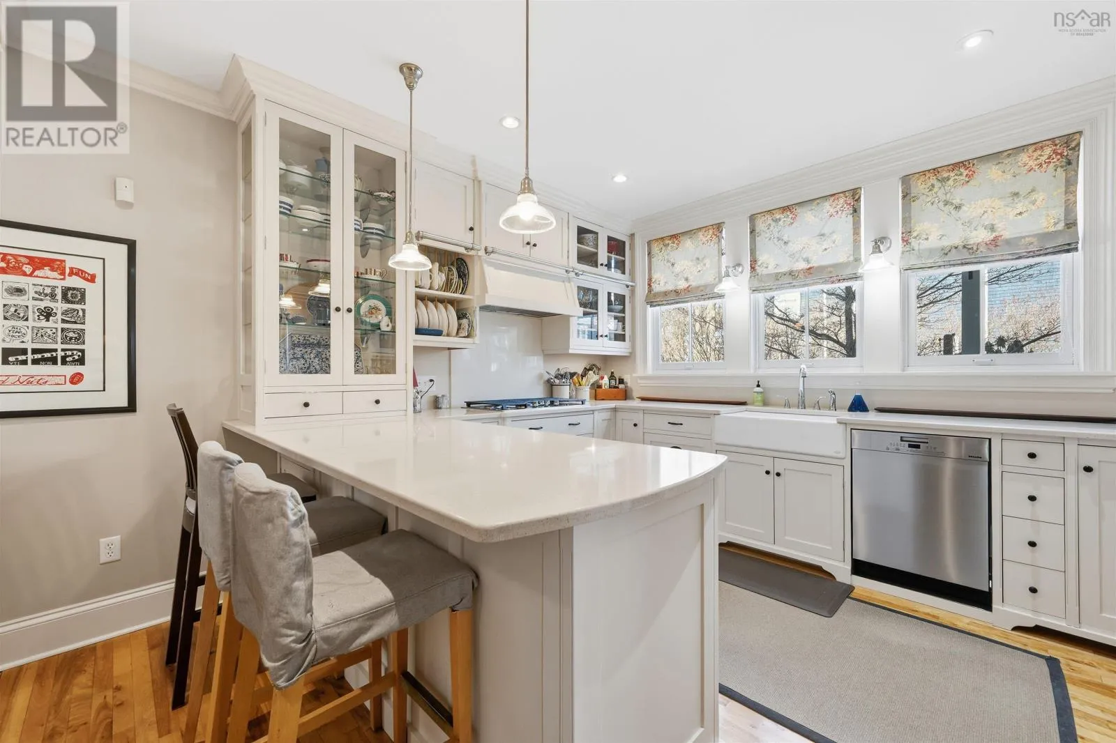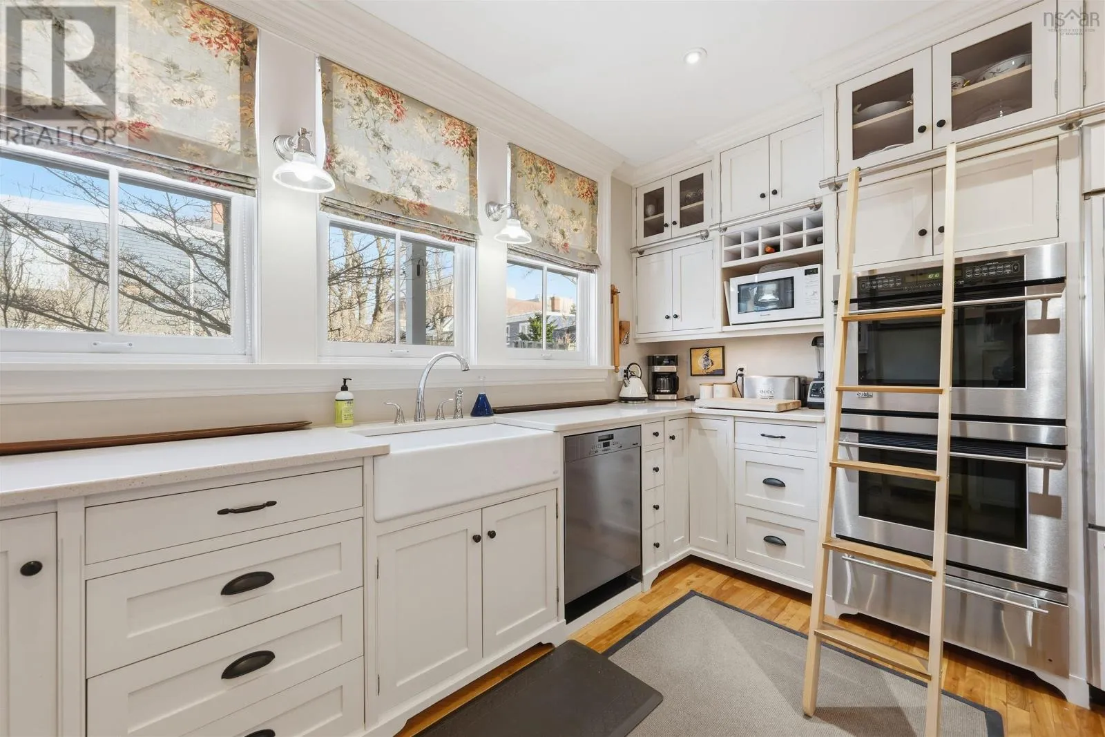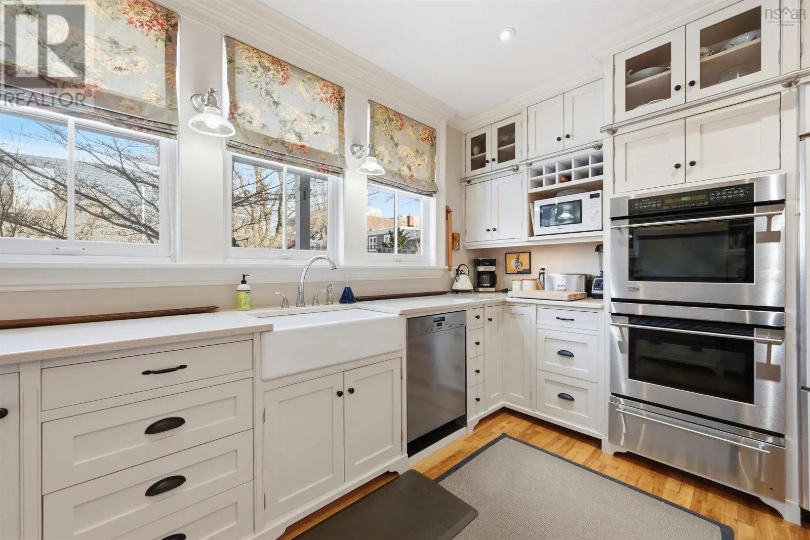 Corner of Edward and South Streets Step into a masterpiece of timeless architecture in this stunning, classic Victorian home featuring 10' ceilings, handcrafted details and an inviting sense of grandeur. Every inch of this residence reflects a bygone era of fine design-from the original hardwood floors to the expansive windows that fill each room with natural light. At the heart of the home lies a custom built gourmet kitchen beautifully designed for both style and function. Cook and entertain with ease using two convection ovens, a 5 burner gas range and quartz countertops. The main floor offers a seamless flow of inviting space, a gracious dining room and living room and cozy den with a gas fireplace. The upper level offers three spacious bedrooms and a nursery or office, separate laundry facilities and two full baths. On the lower level, discover a beautifully finished rec. room with cork flooring, 2 ETS units, and a small office space. Outside, enjoy the private back deck surrounded by a lush, landscaped perennial garden and parking for 2 cars. A rare blend of history, craftsmanship and modern convenience. Come see for yourself! (id:27476)