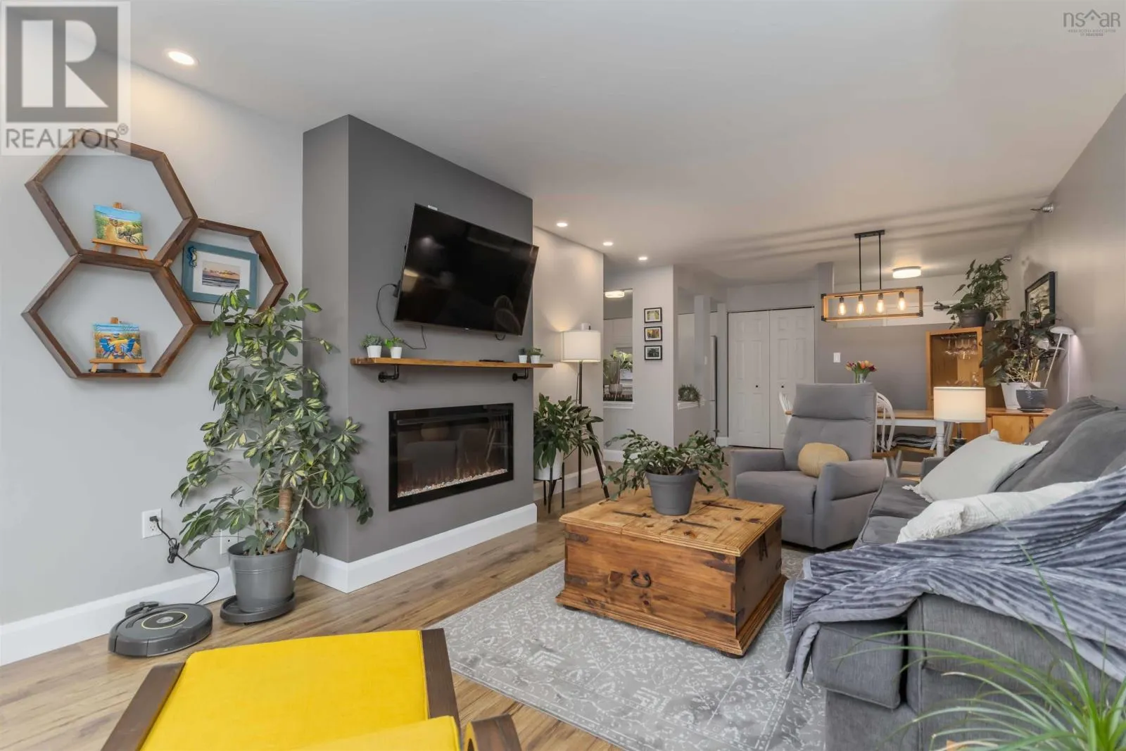 Bedford Highway To Kearney Lake Road Visit REALTOR® website for additional information. Welcome to easy, carefree living in this beautifully updated 3rd-floor corner unit offering extra privacy, natural light, and a quiet setting youll love. Take the elevator or one short flight of stairs for convenient access. Inside, the modern open-concept layout creates an airy space ideal for everyday living and entertaining. The kitchen flows seamlessly into the living area, highlighted by a unique fireplace feature. Step onto your private patio perfect for morning coffee or evening unwinding. This renovated home offers 2 spacious bedrooms, 1 fully renovated bath with a sleek walk-in shower, in-suite laundry, and a portable A/C unit. Enjoy the rare bonus of a full size private storage room. The complex features an outdoor pool, tennis courts, playground, parking, and a prime location close to downtown, shops, and amenities. Comfort, convenience, and community. (id:27476)