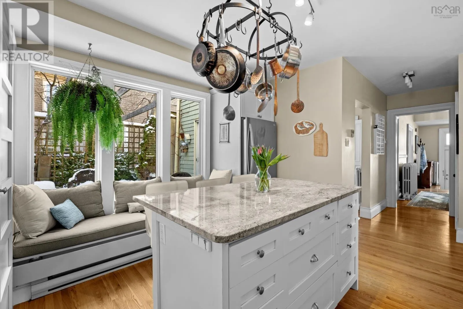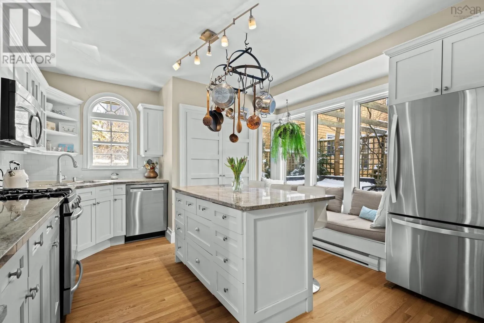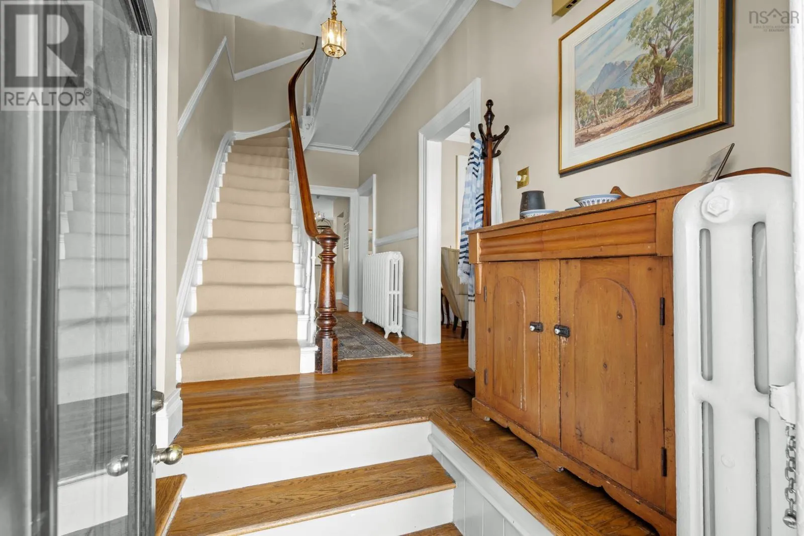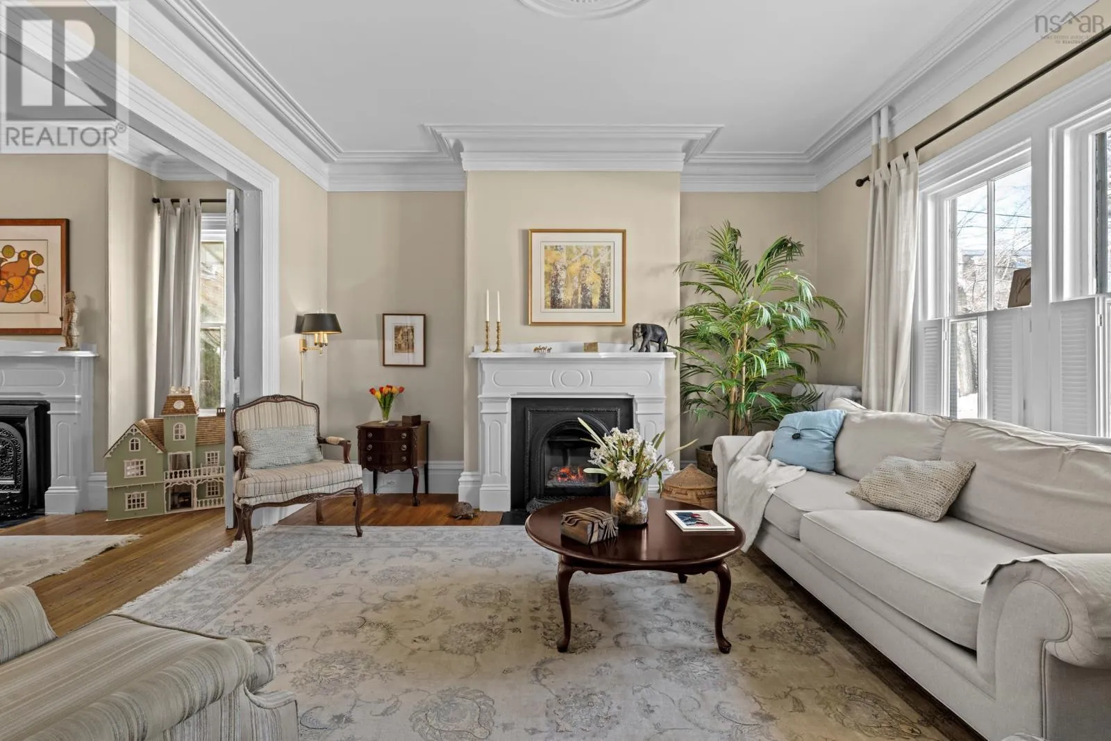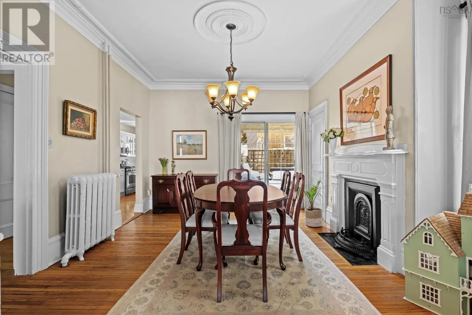 South Park to Victoria Road Built in 1860, this Halifax classic sits proudly on picturesque, tree-lined Victoria Road and captivates from the very first glance. An elegant front staircase welcomes you home and sets the stage for the warmth and character found throughout this beautifully maintained four-bedroom, 1.5-bath residence. Inside, the inviting living room features a cast iron natural gas fireplace. A cozy focal point that flows seamlessly into the formal dining room, creating the perfect setting for intimate dinners and lively gatherings. At the rear of the home, a spacious wood deck offers ample room for outdoor seating, framed by a stunning ginkgo tree and foliage that provides a picturesque backdrop for relaxed evenings and long summer conversations around the natural gas fireplace as you bbq with the natural gas hook-up! The kitchen blends function and comfort with granite countertops, a natural gas range, and in-floor heating. A charming window seat adds both character and clever built-in storage. Upstairs, thoughtful heritage details continue, including the homes original doors beautifully repurposed as the entrance to the main bath. Four well-appointed bedrooms offer flexibility for growing families, home offices, or creative spaces. A delightful upper-level sitting area, complete with a second cast iron natural gas fireplace, serves as an additional living space and could easily transition into a playroom, library, or cozy retreat. Recent updates include a new hot water tank (2024) and rolled roof (2018). Additionally, a central vaccuum makes it easy for cleaning! Ideally situated within walking distance to hospitals, universities, parks, excellent schools, cafés, restaurants, and shopping, this home offers the perfect blend of historic charm and modern convenience in one of Halifaxs most sought-after neighbourhoods. (id:27476)