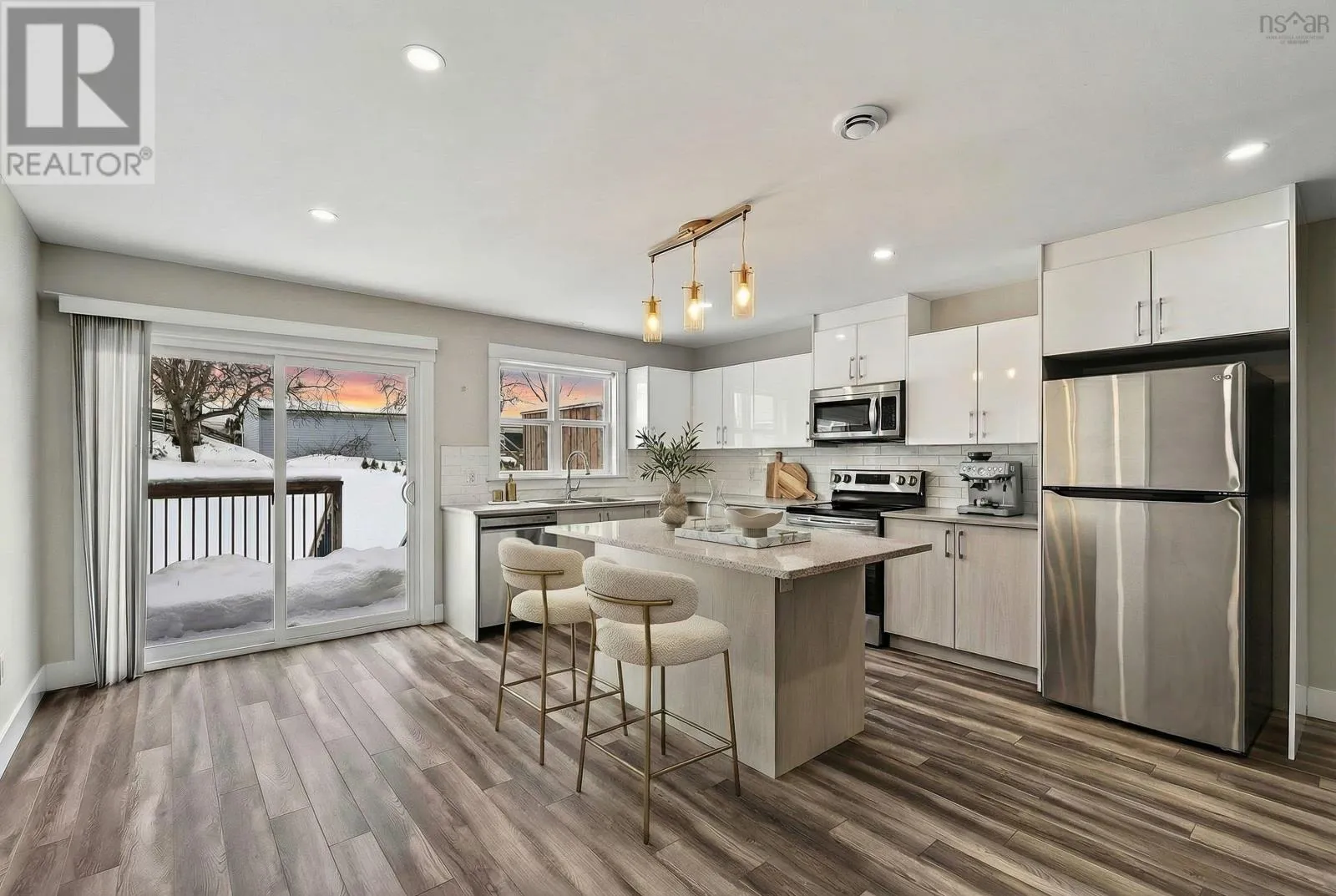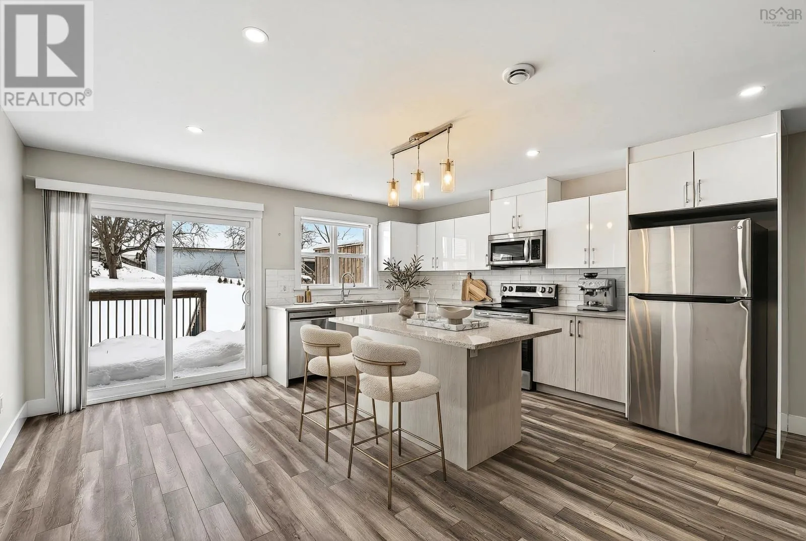 Herring Cove Road to Woodcrest Ave to Mansion ave Beautifully maintained 3-bedroom, 4-bath semi-detached home with three finished levels and attached garage. Ideally located within a family-oriented neighbourhood, close to walking trails, parks, schools, and Peninsula Halifax. The main level offers exceptional flexibility with a spacious den and full four-piece bath. This area can easily convert into a large fourth bedroom with its own ensuite, making it perfect for guests, extended family, a private home office, or a family den. The second level features a bright, open-concept living and dining area with an ideal layout for comfortable everyday living and entertaining. It includes a spacious kitchen complete with an eat-at island, stainless steel appliances, and patio access to a private deck with stairs leading down to the landscaped backyard. Upstairs you will find a generous primary bedroom with a 5-piece ensuite, two additional well-sized bedrooms, and a full 4-piece bath. Equipped with two heat pumps for efficient heating and cooling, this home offers comfort, functionality, and versatility in a highly desirable location. (id:27476)
