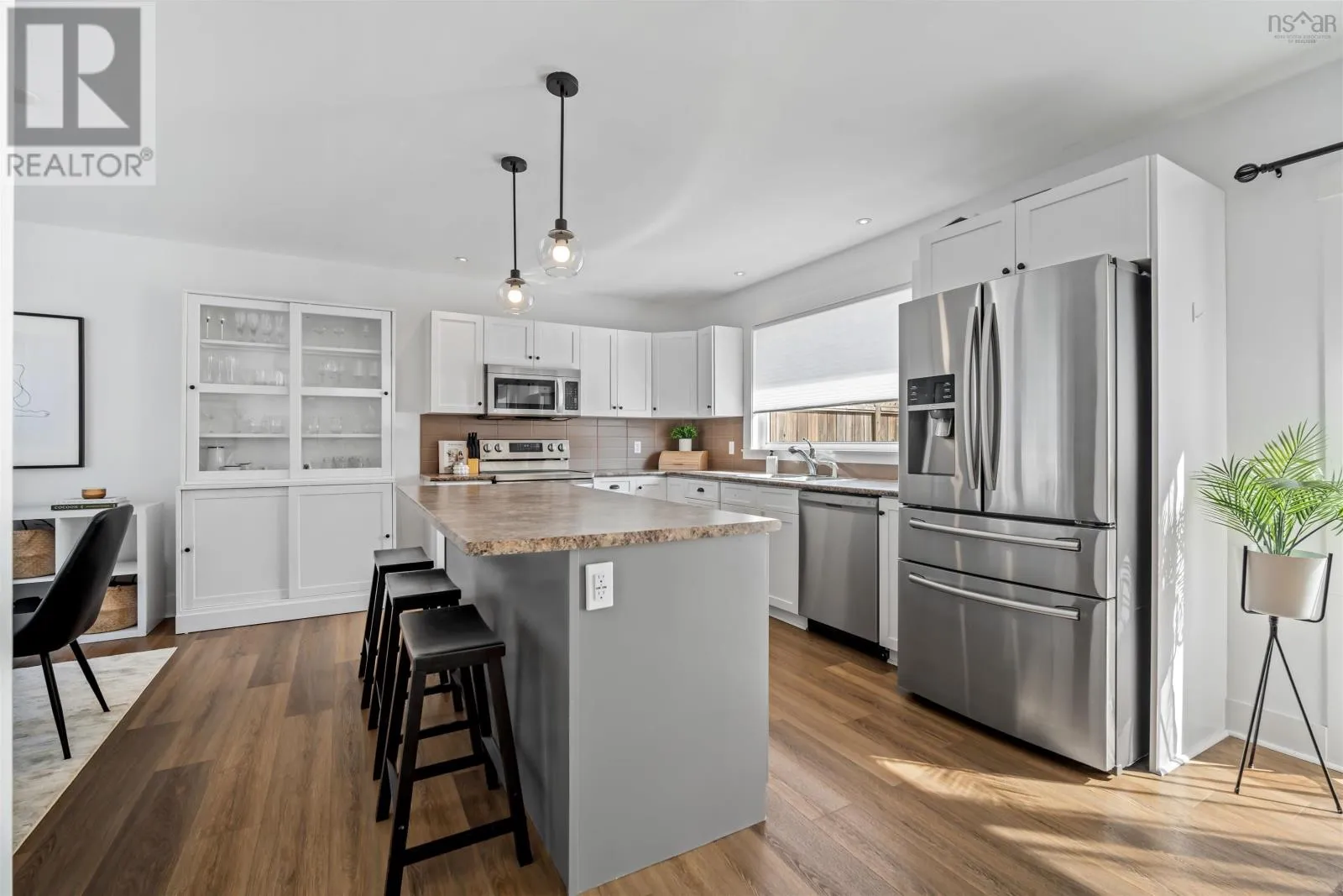 Northwest Arm Dr. to Old Sambro Rd. to Rockingstone Road to Beach Stone (Kidston Estates) to Grindstone Dr. Welcome to 80 Grindstone Drive in the desirable community of Kidston Estates. This well-maintained two-storey home offers functional living space, thoughtful updates, and a private backyard perfect for everyday living and entertaining. The main level features a spacious layout with a large kitchen complete with 7x3 island, professionally painted cabinetry, and a dining area that flows into the bright living room. A shiplap feature wall adds character, while the sliding patio door leads to a back deck with privacy walls overlooking the fully fenced backyard with gate and storage shed. The main level is completed with a convenient powder room. Upstairs youll find three bedrooms, including the large primary suite with a walk-in closet and ensuite featuring a tub/shower combination. A second full bathroom completed the upper level. The fully finished basement provides excellent additional living space with a large rec room offering room for a second family area and kids play space, a fourth bedroom ideal for guests or a home office, a third full bathroom, laundry area, and storage under the stairs. Additional upgrades throughout include 3 ductless mini-split heatpumps, new flooring on the main level and basement, a new hot water tank (2025), new stove and dishwasher (2025), and updated toilets in the powder room and primary ensuite (2026). Located in a quiet community just minutes from downtown Halifax, this home offers convenient access to schools, rec centre, grocery stores, and major highways, making everyday commuting and errands effortless. (id:27476)