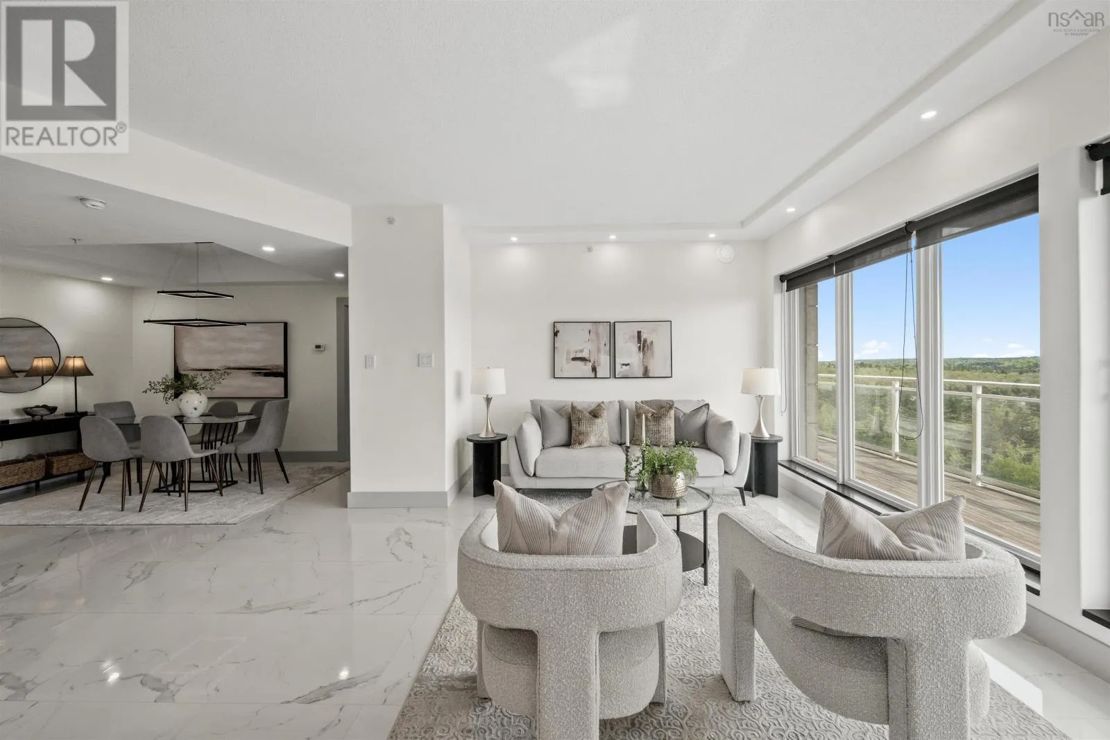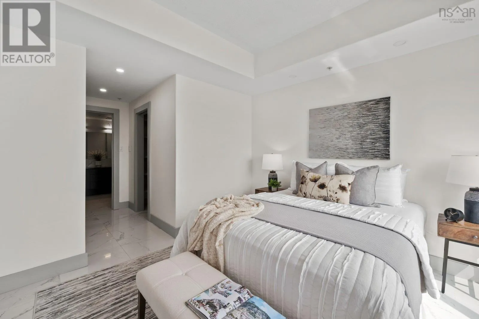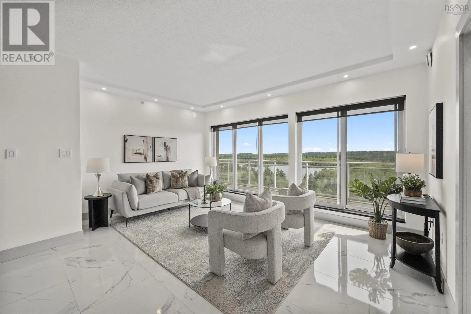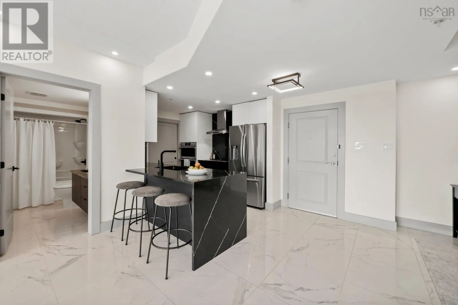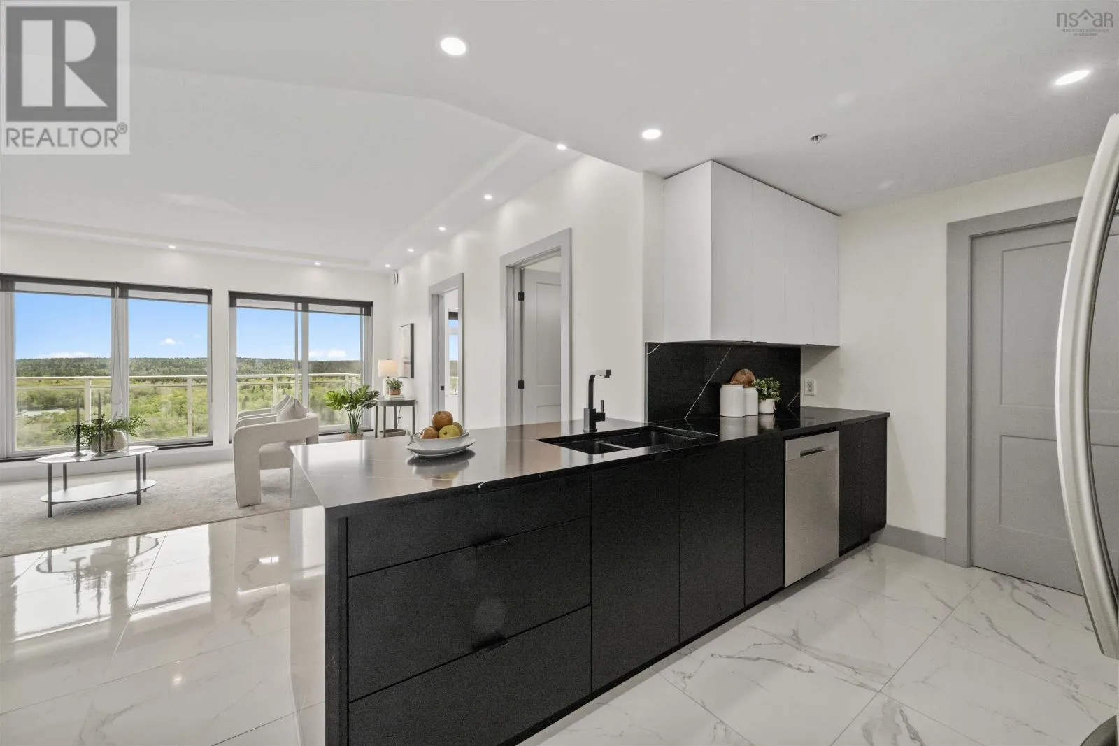 Dunbrack Street to Walter Havill If your style leans chic, modern and just a little glamorous, this dazzling condo might be exactly what youve been waiting for. Recently treated to a full top-to-bottom transformation, every inch has been refreshed with sleek new finishes and elevated design. The kitchen is pure drama in the best way, featuring a wall oven for serious cooking moments and a stunning waterfall island wrapped in Nero Marquina stone with a bold matching backsplash that steals the spotlight. The smart layout keeps the bedrooms thoughtfully separated for added privacy, while the primary suite delivers serious spa vibes with a luxe ensuite and cozy in-floor heating that makes every morning feel indulgent. Slide open the doors to your extended balcony and take in panoramic views of lush greenery and the sparkling waters of Long Lake. Morning coffee, sunset cocktails, or simply soaking in the serenity this is your front-row seat to nature. Underground parking, a dedicated storage unit and a location just minutes from downtown Halifax and major highways make life here incredibly convenient. Stylish, scenic, and finished to perfection this condo is ready to impress! (id:27476)
