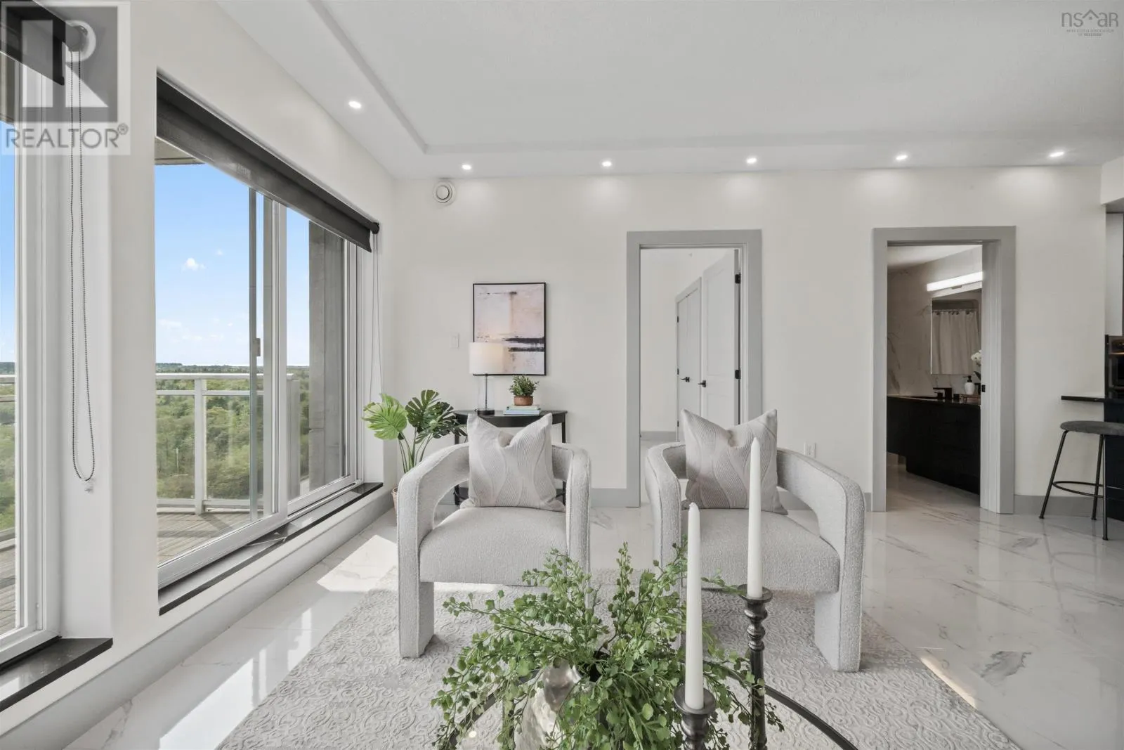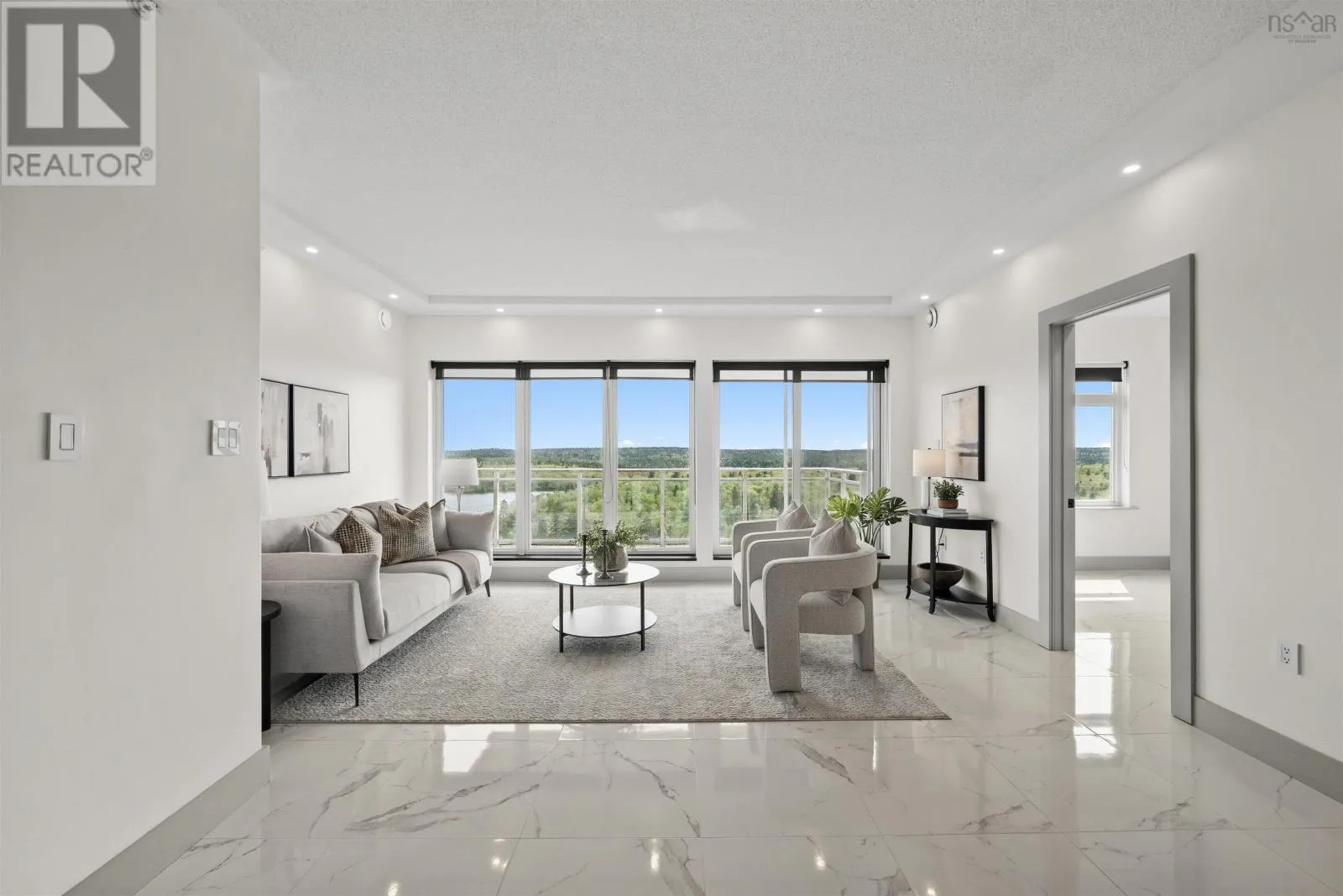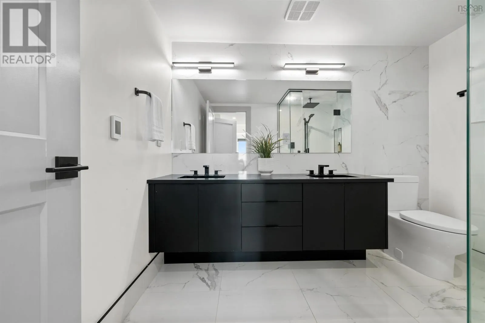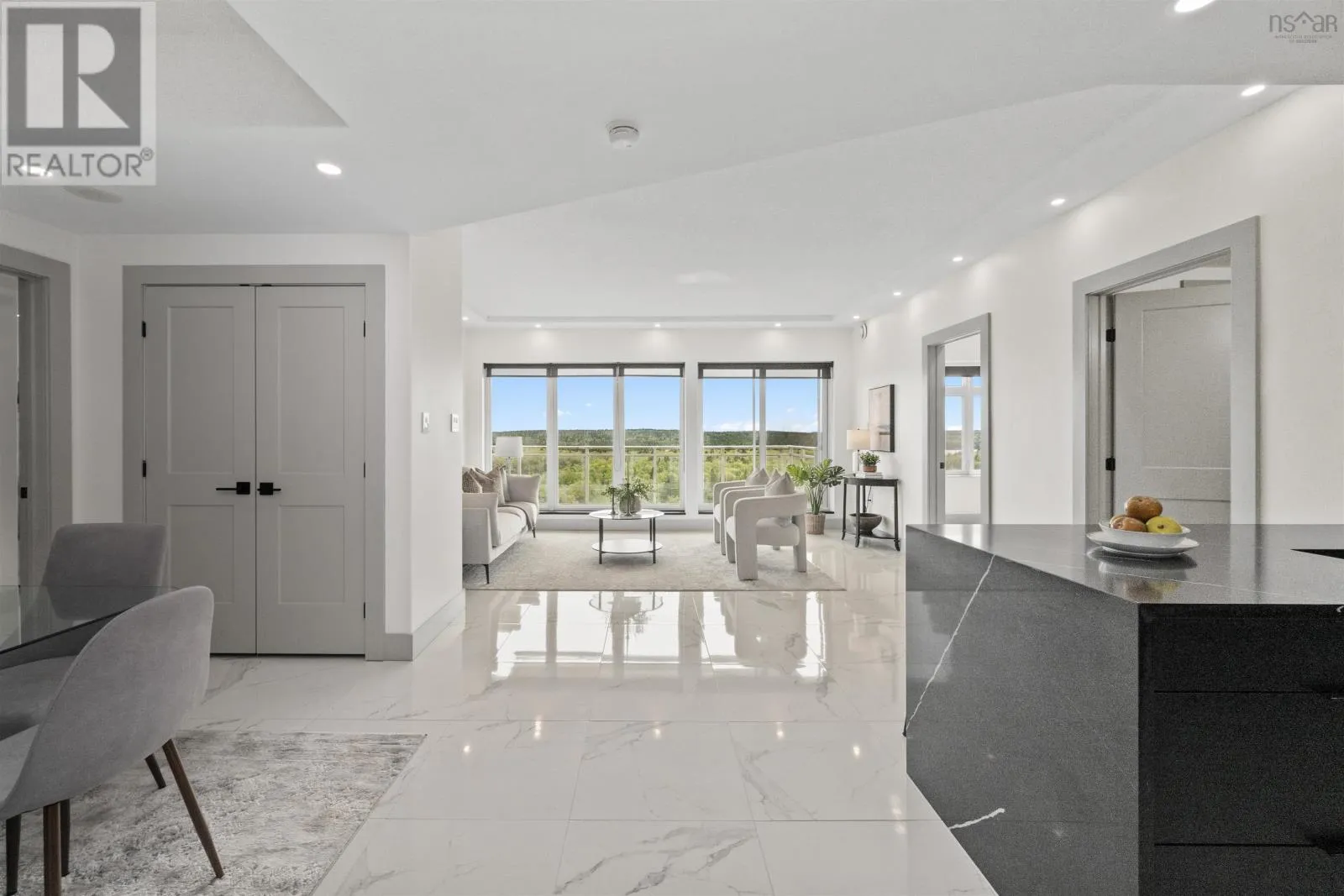 Dunbrack Street to Walter Havill If your style leans chic, modern and just a little glamorous, this dazzling condo might be exactly what youve been waiting for. Recently treated to a full top-to-bottom transformation, every inch has been refreshed with sleek new finishes and elevated design. The kitchen is pure drama in the best way, featuring a wall oven for serious cooking moments and a stunning waterfall island wrapped in Nero Marquina stone with a bold matching backsplash that steals the spotlight. The smart layout keeps the bedrooms thoughtfully separated for added privacy, while the primary suite delivers serious spa vibes with a luxe ensuite and cozy in-floor heating that makes every morning feel indulgent. Slide open the doors to your extended balcony and take in panoramic views of lush greenery and the sparkling waters of Long Lake. Morning coffee, sunset cocktails, or simply soaking in the serenity this is your front-row seat to nature. Underground parking, a dedicated storage unit and a location just minutes from downtown Halifax and major highways make life here incredibly convenient. Stylish, scenic, and finished to perfection this condo is ready to impress! (id:27476)