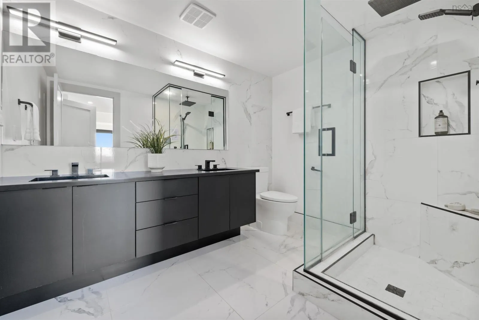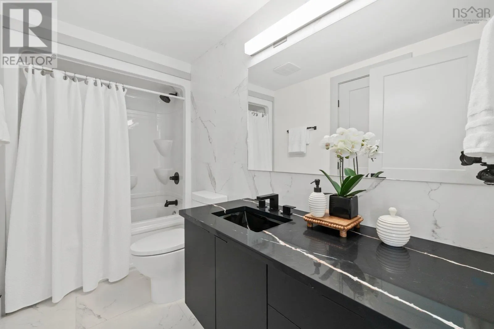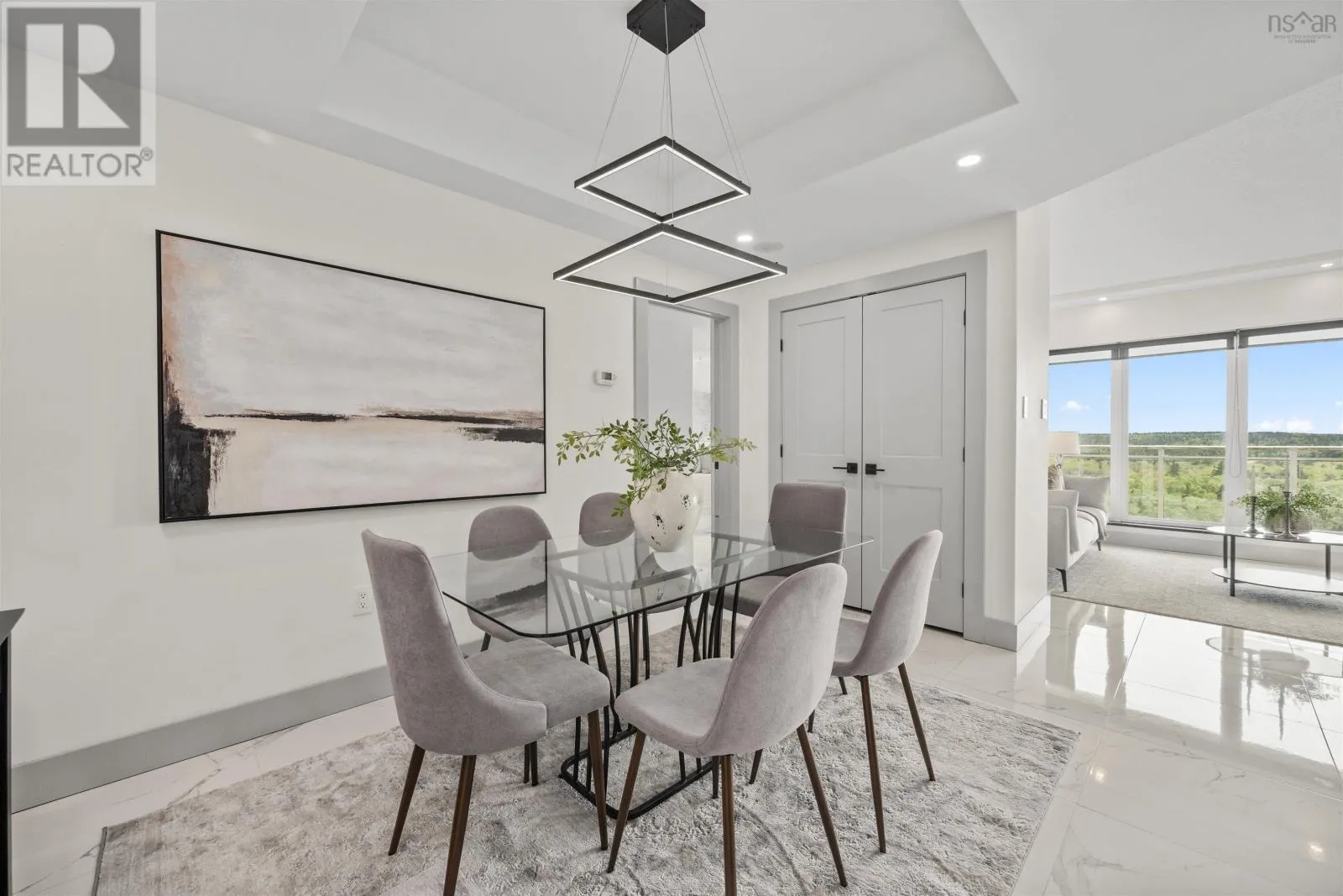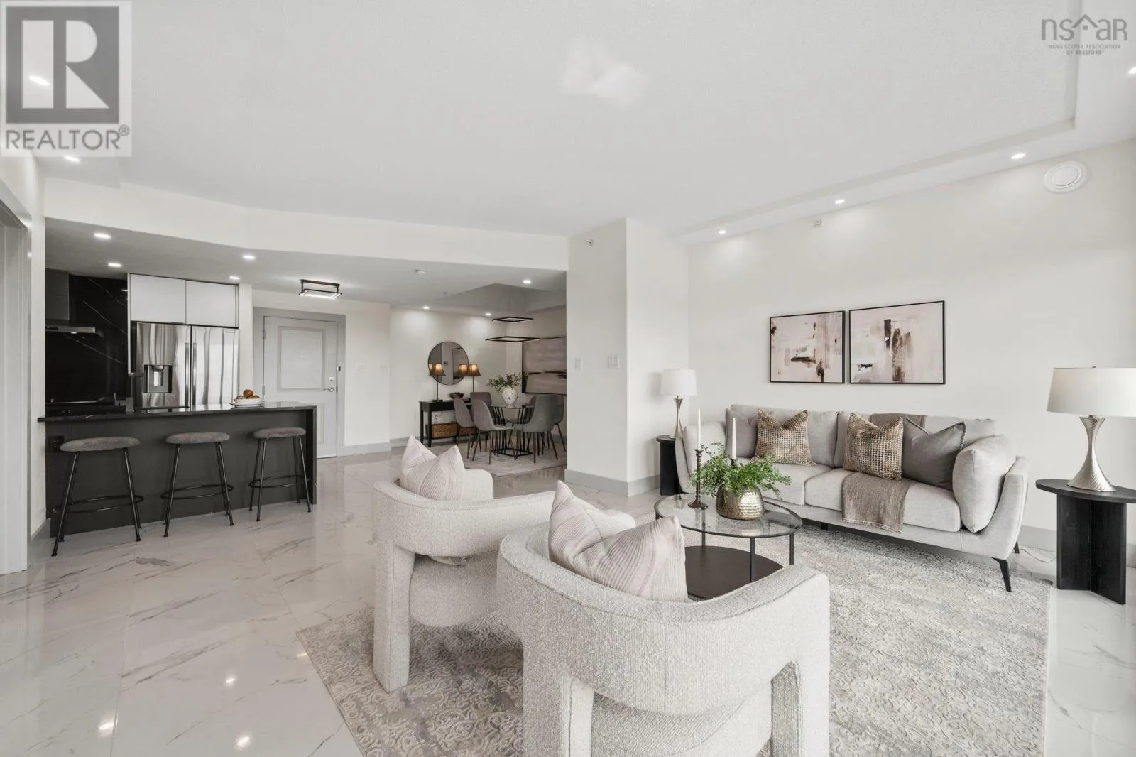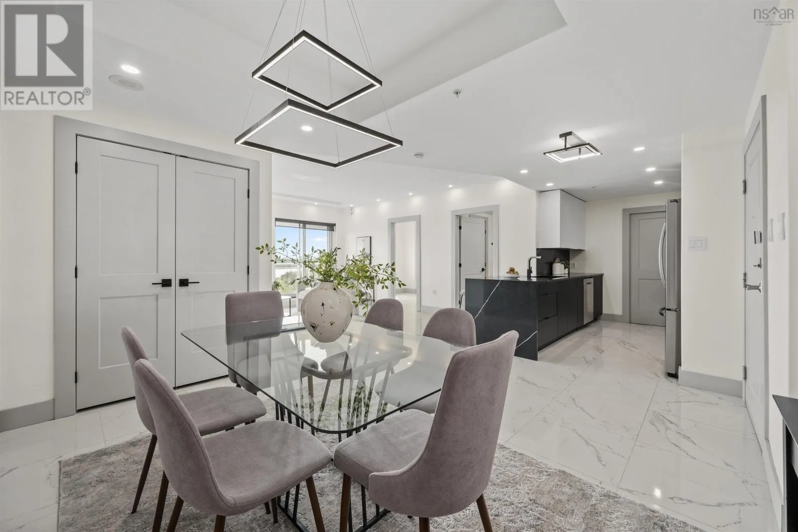 Dunbrack Street to Walter Havill If your style leans chic, modern and just a little glamorous, this dazzling condo might be exactly what youve been waiting for. Recently treated to a full top-to-bottom transformation, every inch has been refreshed with sleek new finishes and elevated design. The kitchen is pure drama in the best way, featuring a wall oven for serious cooking moments and a stunning waterfall island wrapped in Nero Marquina stone with a bold matching backsplash that steals the spotlight. The smart layout keeps the bedrooms thoughtfully separated for added privacy, while the primary suite delivers serious spa vibes with a luxe ensuite and cozy in-floor heating that makes every morning feel indulgent. Slide open the doors to your extended balcony and take in panoramic views of lush greenery and the sparkling waters of Long Lake. Morning coffee, sunset cocktails, or simply soaking in the serenity this is your front-row seat to nature. Underground parking, a dedicated storage unit and a location just minutes from downtown Halifax and major highways make life here incredibly convenient. Stylish, scenic, and finished to perfection this condo is ready to impress! (id:27476)