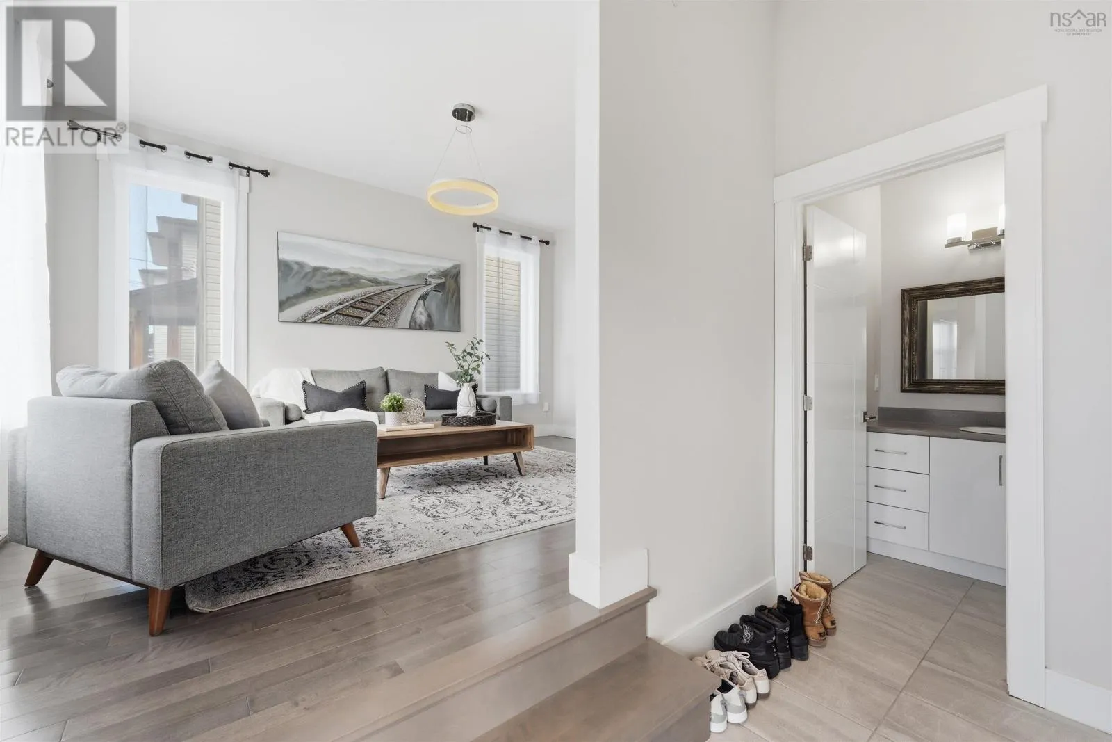 Alabaster Way to Mica Crescent. Welcome to 120 Mica Crescent, sitting on a premium lot in the sought-after Governors Brook community of Spryfield. Built in 2018 as the former model home, this Energy Star® certified two-storey offers quality upgrades and a rare private setting. The bright open-concept main level features a modern kitchen with a quartz island and access to the rear deck, where you can enjoy beautiful sunrise views over greenbelt with glimpses of the lake and ocean. Upstairs offers three bedrooms, while the fully finished walkout basement provides additional living space with a fourth bedroom. Set on a premium lot with no rear neighbours, the backyard offers excellent privacy and includes a spacious storage shed. Additional highlights include built-in audio, a mini-split heat pump, and a full home security system with cameras. Conveniently located just minutes from downtown Halifax, parks, and everyday amenities. (id:27476)