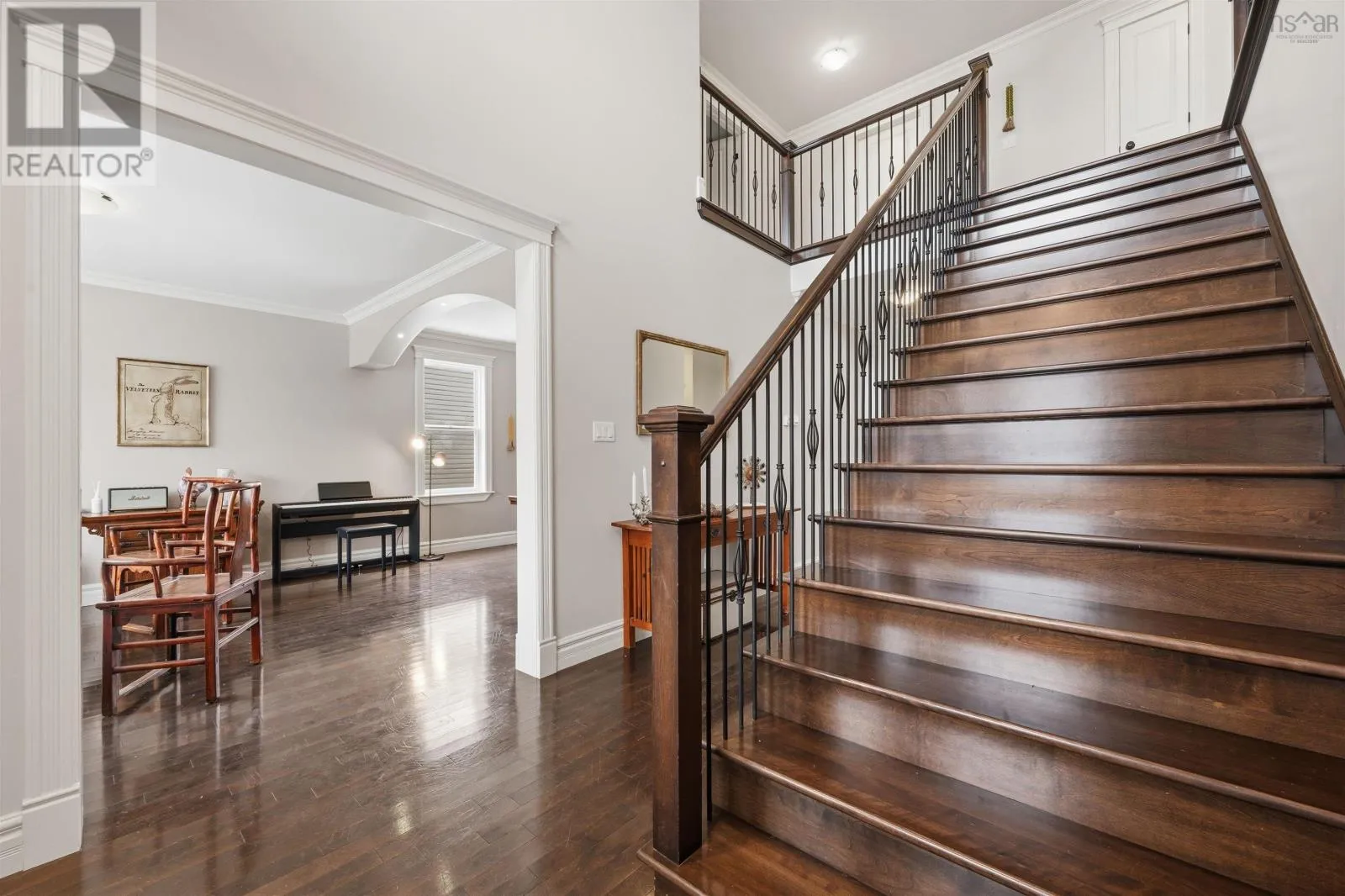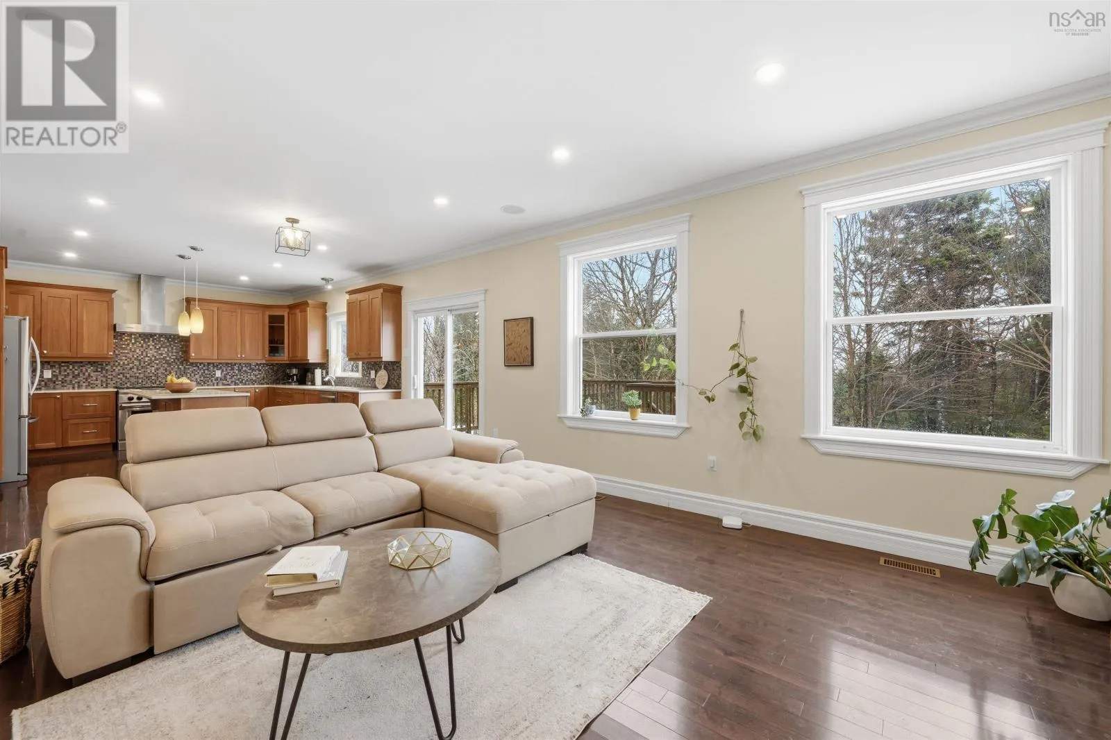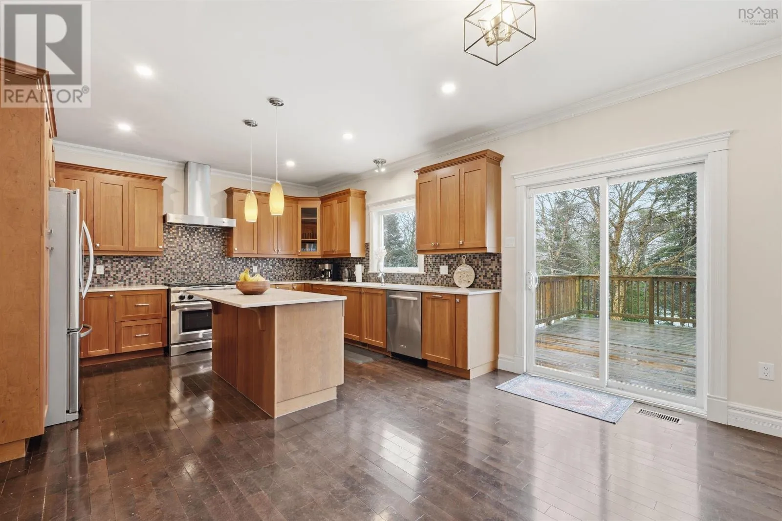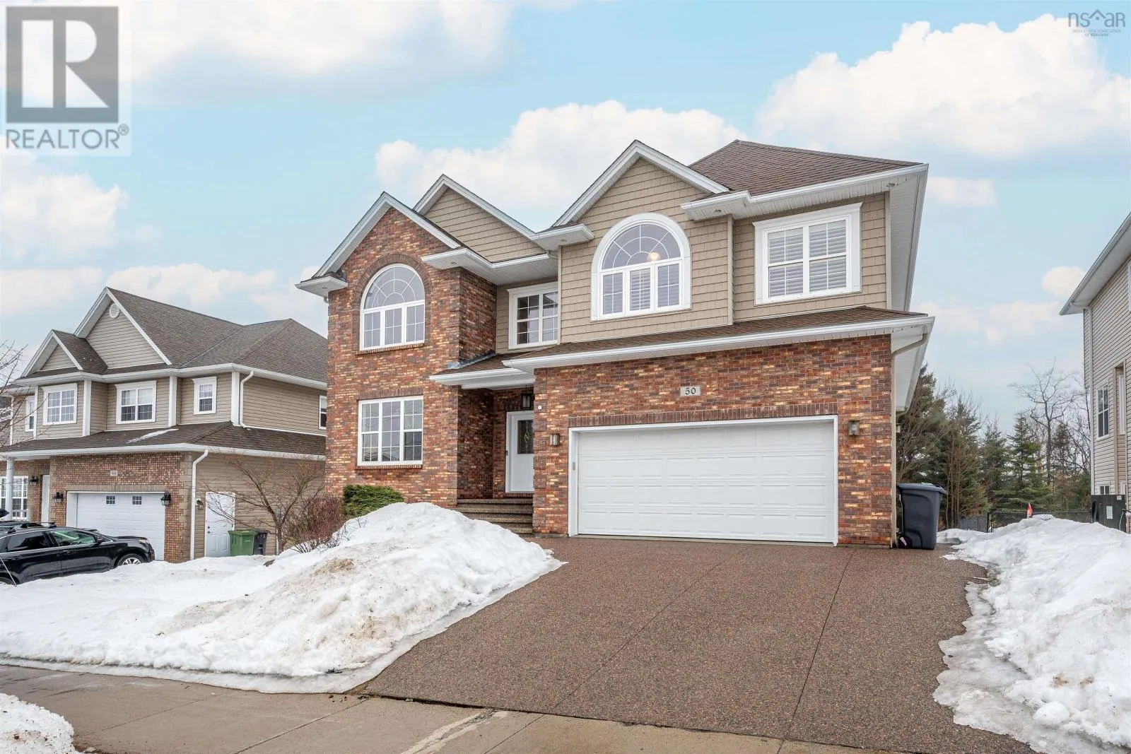 Larry Uteck Boulevard to Starboard to Helmsman - or Bedford Highway to Starboard to Helmsman. Welcome to 50 Helmsman Court in beautiful Royale Hemlocks. This two story, five bedroom home has all the features for comfortable family living, entertaining and working from home. The main floor features formal living and dining rooms, an open concept bright kitchen, a casual dining area and a family room. The main floor also has a half bath and space for an office or den. The upper floor has four bedrooms with sizeable closets and a full bath. This floor also includes the Primary bedroom with ensuite. The lower level features high ceilings, a walk out to the private back yard which backs onto Hemlock Ravine Park, a fifth bedroom, a media room, a family room and a full size bath. The property uses a ducted heat pump to provide heat in the cooler times of the year and cool air in the summer. (id:27476)