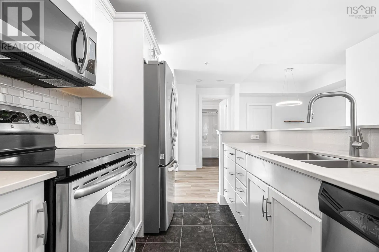 Osborne to Walter Havill Welcome to the Waterton, an upscale high rise in Stone Ridge Development minutes from downtown Halifax! Unit 910 is a 2-bedroom, 2-bathroom corner unit, offering one of the largest floor plans in the building. This west-facing condo is bright and spacious and has been thoughtfully updated with custom window coverings, additional lighting, new hot water tank and brand-new appliances; including the fridge, over-the-range microwave, washer and dryer (in-unit laundry). The primary bedroom is spacious with a walk-in-closet and private ensuite with dual vanity. The second bedroom is located on the opposite side of the unit and both rooms allow for views of long lake park. There is also a den with lots of natural light that could be used as an office. This building uses geothermal heating and cooling and offers underground parking and storage included in the condo fee. (id:27476)