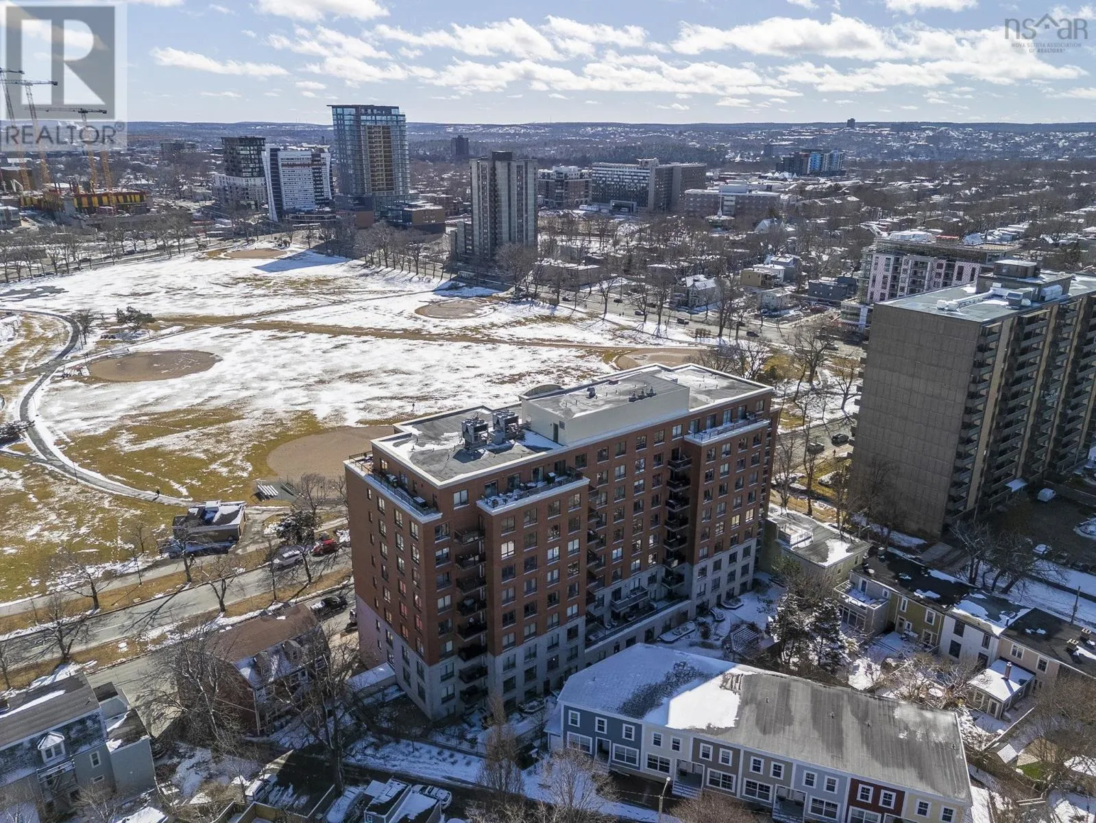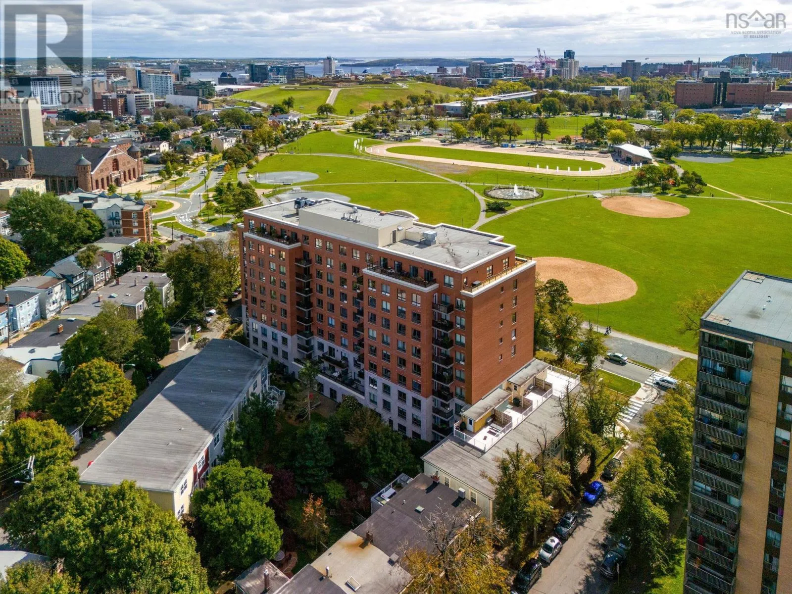 Cunard across from the Halifax Common With an unbeatable location overlooking the Halifax Commons and above the hustle and bustle, this bright and open 2 BR, 2 bath condo in sought after Armoury Square is the one you've been waiting for! You'll take in the expansive views of Citadel Hill and the Commons from every window of this well designed condo, complete with an open concept living area, the primary and second bedroom well separated for privacy, a bonus space that could be an office/den or formal dining room, and an in-suite laundry room tucked off the foyer. The kitchen is an entertainer's dream with lots of counter and cabinet space, a double sink, and a raised breakfast bar that allows you to chat with guests in the living room while hiding all the dirty dishes! The combined living room/dining room offers plenty of flexibility with furniture arrangement and access to the balcony, perfect for your morning coffee or afternoon cocktail. The primary suite has plenty of space for a king-sized bed, as well as a walk-in closet and a 5 pce ensuite bath with a large tub and separate shower. At the other end of the condo is the second bedroom with a double closet and the second full bath right beside it. This unit offers lots of storage with spacious closets in the bedrooms, room for shelves in the laundry room and a separate storage locker. Armoury Square is at the heart of the peninsula with the Commons directly across the street, nearby Agricola St district offering great restaurants, cafes and shops and just a short stroll from downtown, hospitals and universities. This is a well managed condo building with a superintendent, a meeting room with kitchen, a gym, an enclosed garden area and bike storage. Condo fees include heat, AC, water, parking, landscaping and exterior maintenance. (id:27476)