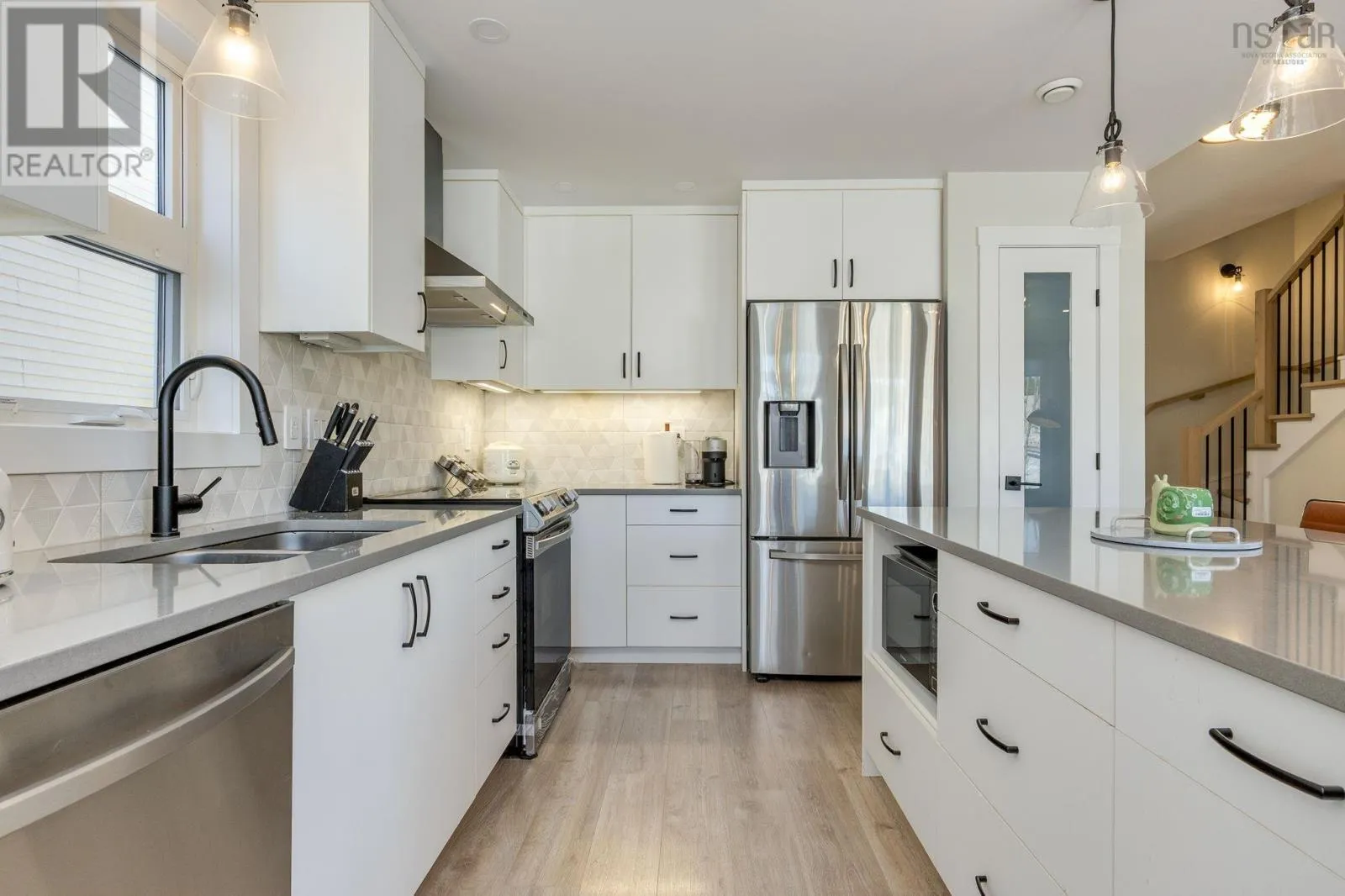 brookline Dr turn left to the breaktrail Dr Welcome to this quality built, energy efficient home located in the heart of Brookline Park, West Bedford. 2 mins drive to the nearest commercial area. This sleek 3-bedroom, 3.5-bath home is a masterpiece of modern design. The open-concept main floor, centered around a stunning 60-inch fireplace and a gourmet kitchen with quartz countertops, is tailor-made for hosting. Upstairs, the primary retreat features an ensuite with a floating dual vanity and walk-in closet, alongside two additional spacious bedrooms and laundry. The walk-out lower level adds a versatile recreation space and a full bath. Home is heated with high efficiency fully ducted natural gas heat pump with intergrated HRV. HG hookups to the stove and BBQ. The front and back decks are both maintenance-free composite material and the back deck features metal railings and glass panels. You won't miss this one! (id:27476)