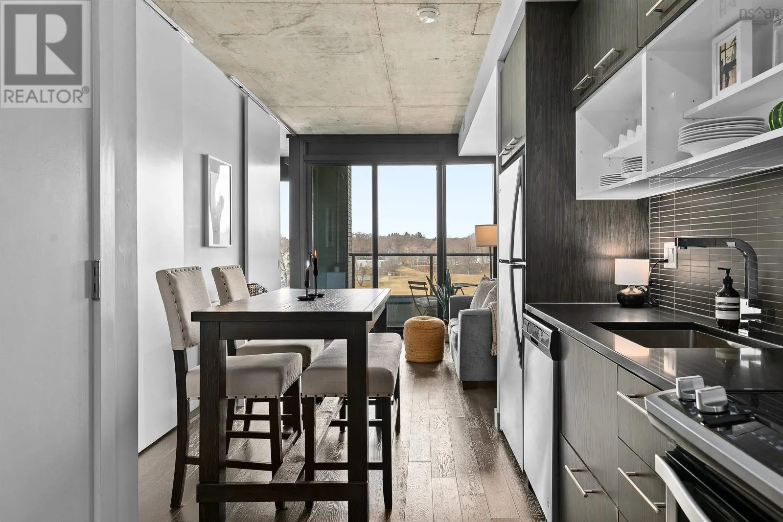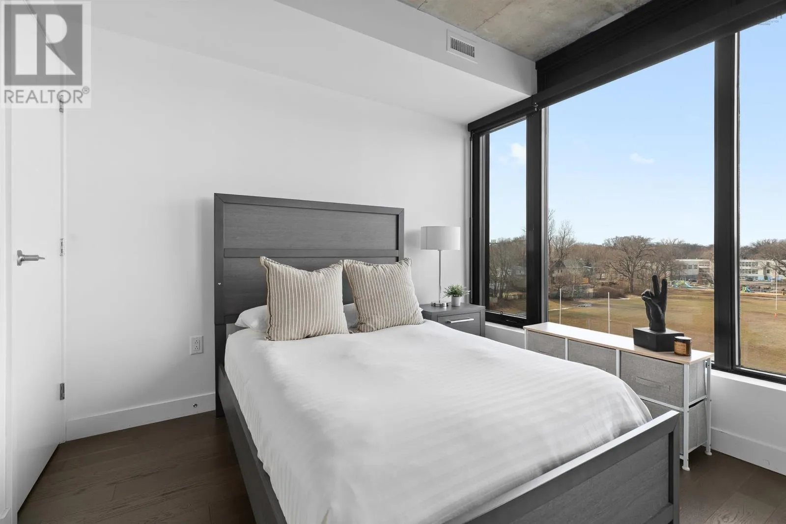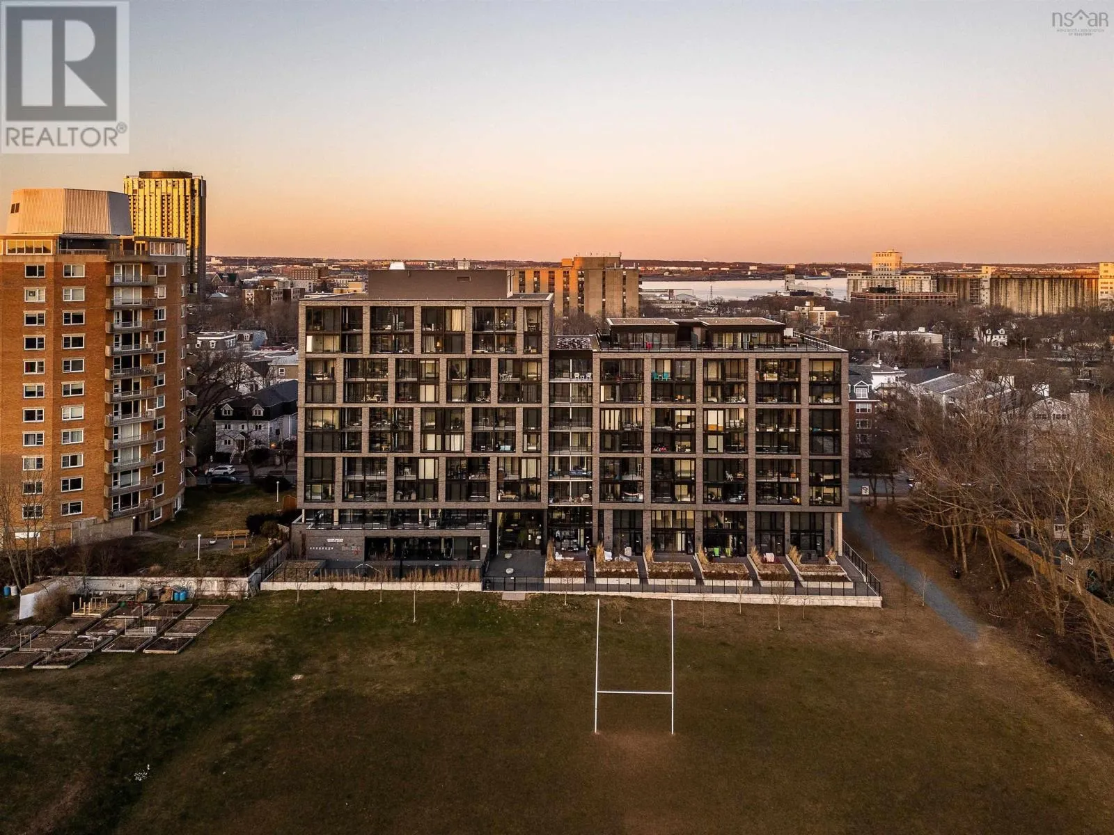 Google Maps: https://maps.app.goo.gl/WVjrkYeT2WuKm6ZE8 Quietly overlooking historic Gorsebrook Park, Unit 503 at 1048 Wellington Street is a beautifully configured, fully furnished, 1 bedroom + den condo offering modern finishes, western exposure, and full park-facing views. Just steps from the elevator, the thoughtful layout begins with a generous coat closet and separate laundry closet before opening into a bright open-concept living, dining, and kitchen area complete with quartz countertops, stainless steel appliances, integrated lighting, and ceiling-height cabinetry. Natural light pours through the main living space and bedroom, both positioned to capture the units peaceful park outlook. The bedroom features a double closet, while the den, connected by the adjoining full bath, offers flexible use as a home office, guest space, or dressing room and includes its own spacious closet. Built in 2019, The Gorsebrook is one of South End Halifaxs most sought-after condo residences, offering concierge service, secure entry, a fitness room, common and social spaces, outdoor lounge areas, and a seasonal pool overlooking the park. With a Walk Score of 89 and deeded heated underground parking included, this is refined urban living just moments from universities, hospitals, parks and downtown amenities & experiences. (id:27476)