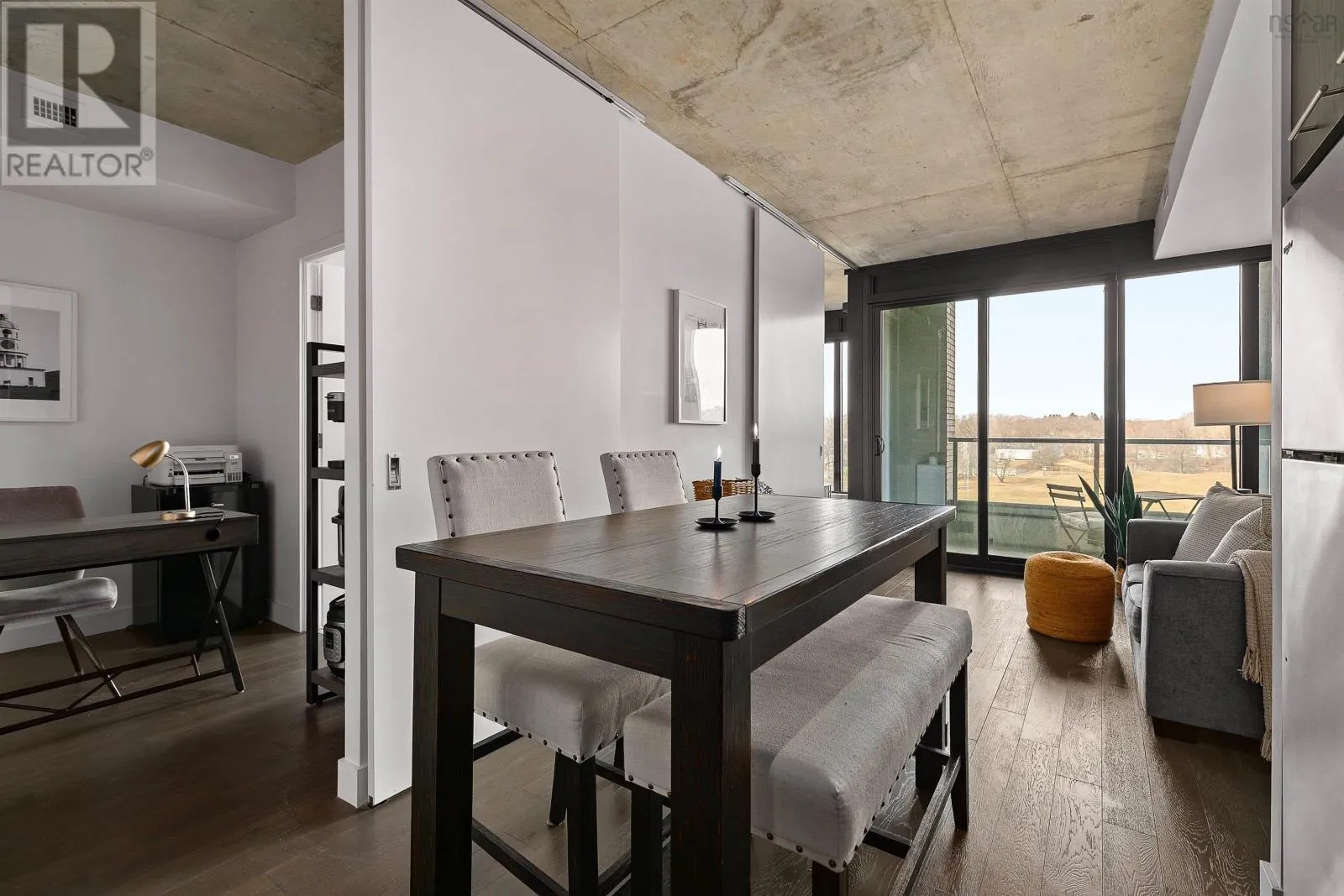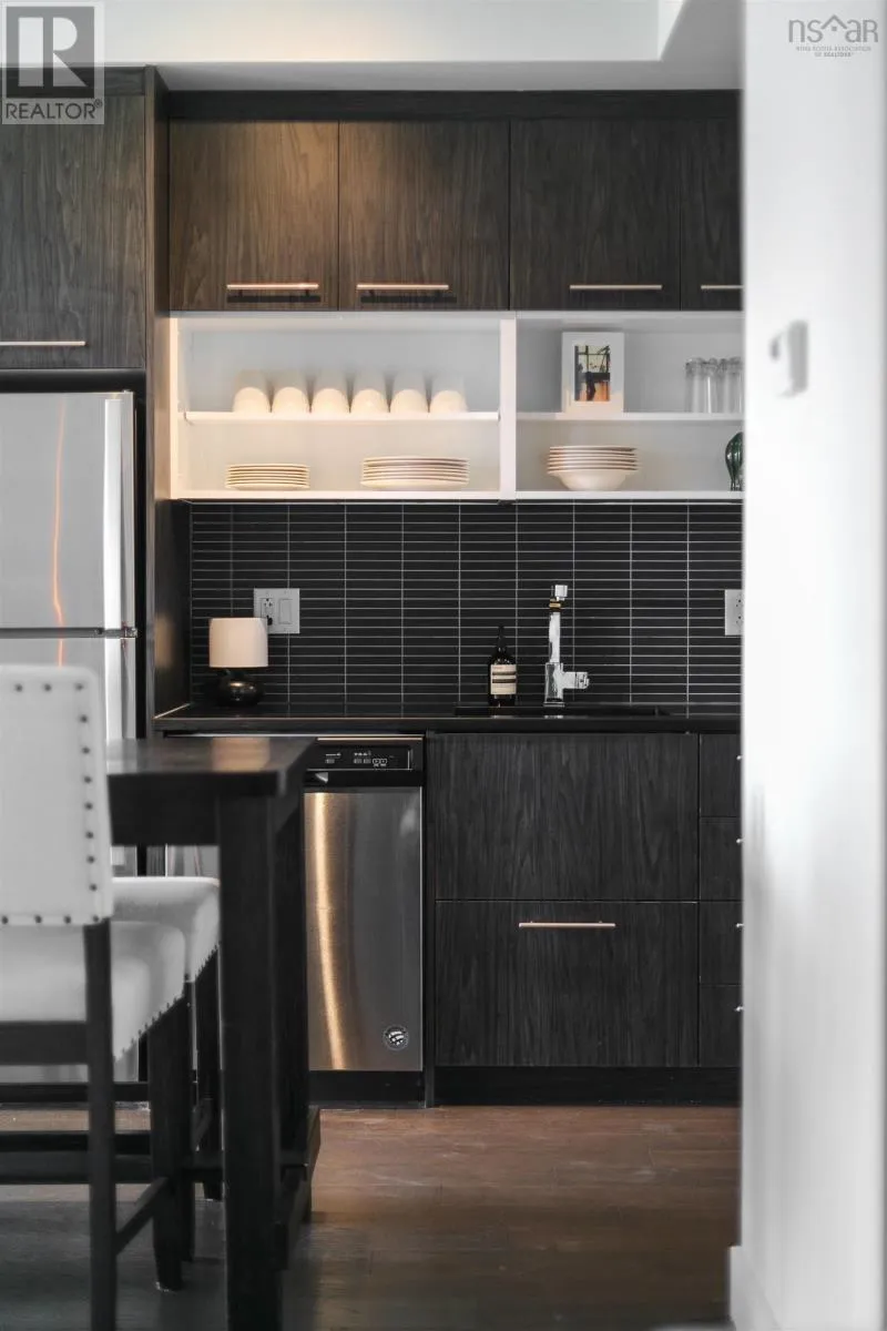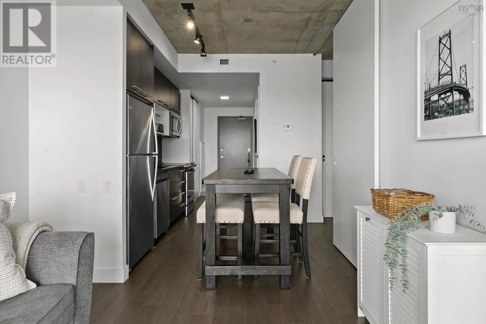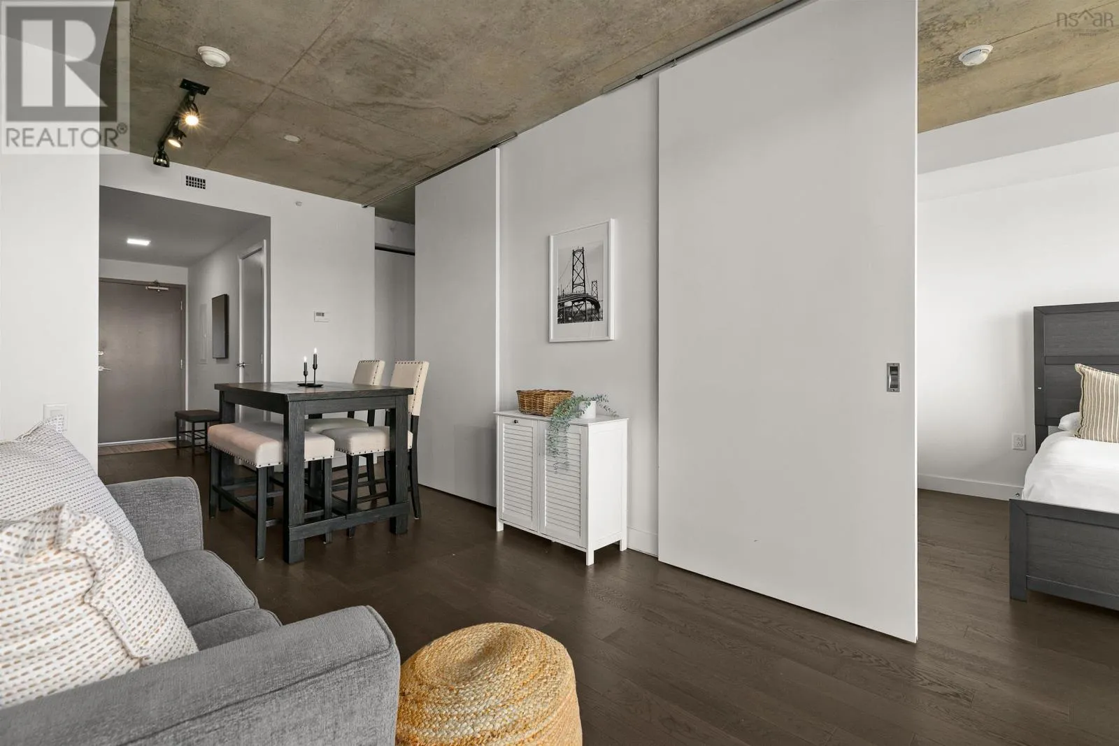 Google Maps: https://maps.app.goo.gl/WVjrkYeT2WuKm6ZE8 Quietly overlooking historic Gorsebrook Park, Unit 503 at 1048 Wellington Street is a beautifully configured, fully furnished, 1 bedroom + den condo offering modern finishes, western exposure, and full park-facing views. Just steps from the elevator, the thoughtful layout begins with a generous coat closet and separate laundry closet before opening into a bright open-concept living, dining, and kitchen area complete with quartz countertops, stainless steel appliances, integrated lighting, and ceiling-height cabinetry. Natural light pours through the main living space and bedroom, both positioned to capture the units peaceful park outlook. The bedroom features a double closet, while the den, connected by the adjoining full bath, offers flexible use as a home office, guest space, or dressing room and includes its own spacious closet. Built in 2019, The Gorsebrook is one of South End Halifaxs most sought-after condo residences, offering concierge service, secure entry, a fitness room, common and social spaces, outdoor lounge areas, and a seasonal pool overlooking the park. With a Walk Score of 89 and deeded heated underground parking included, this is refined urban living just moments from universities, hospitals, parks and downtown amenities & experiences. (id:27476)