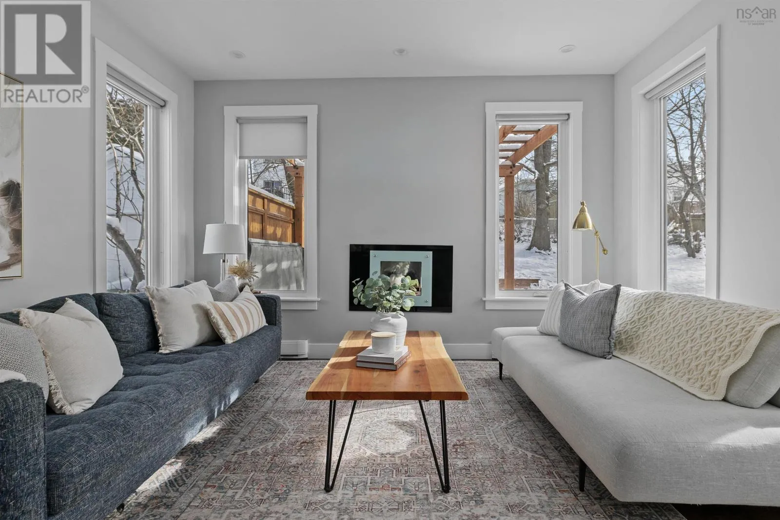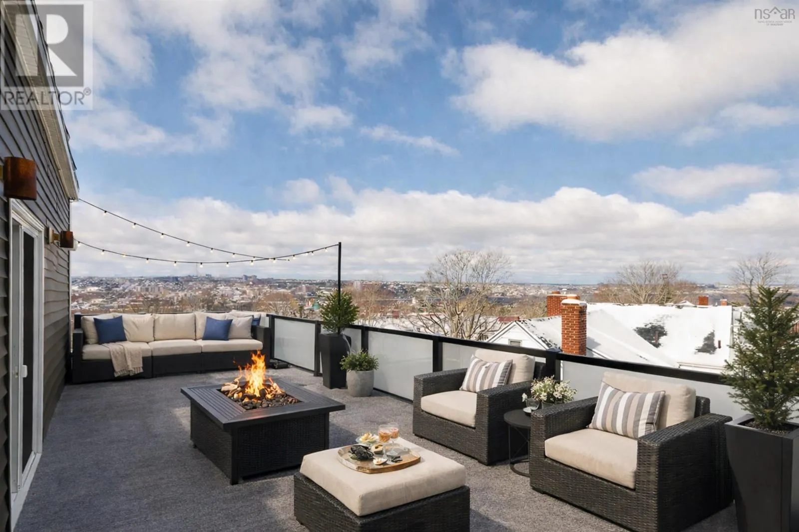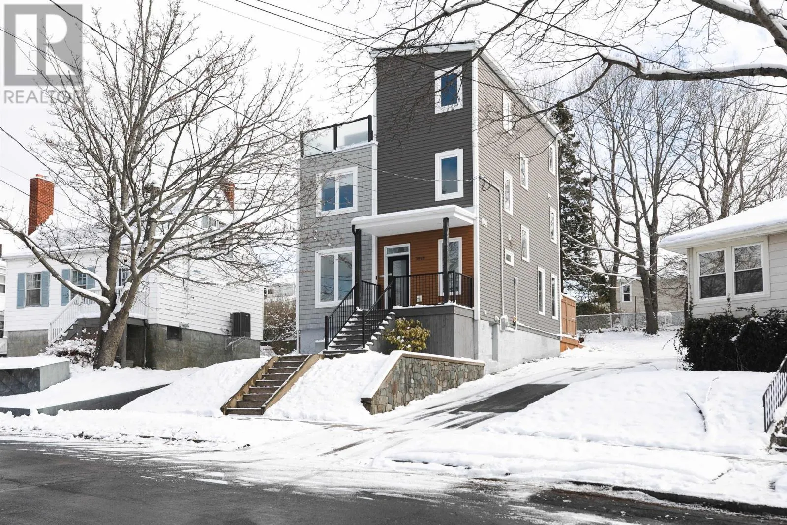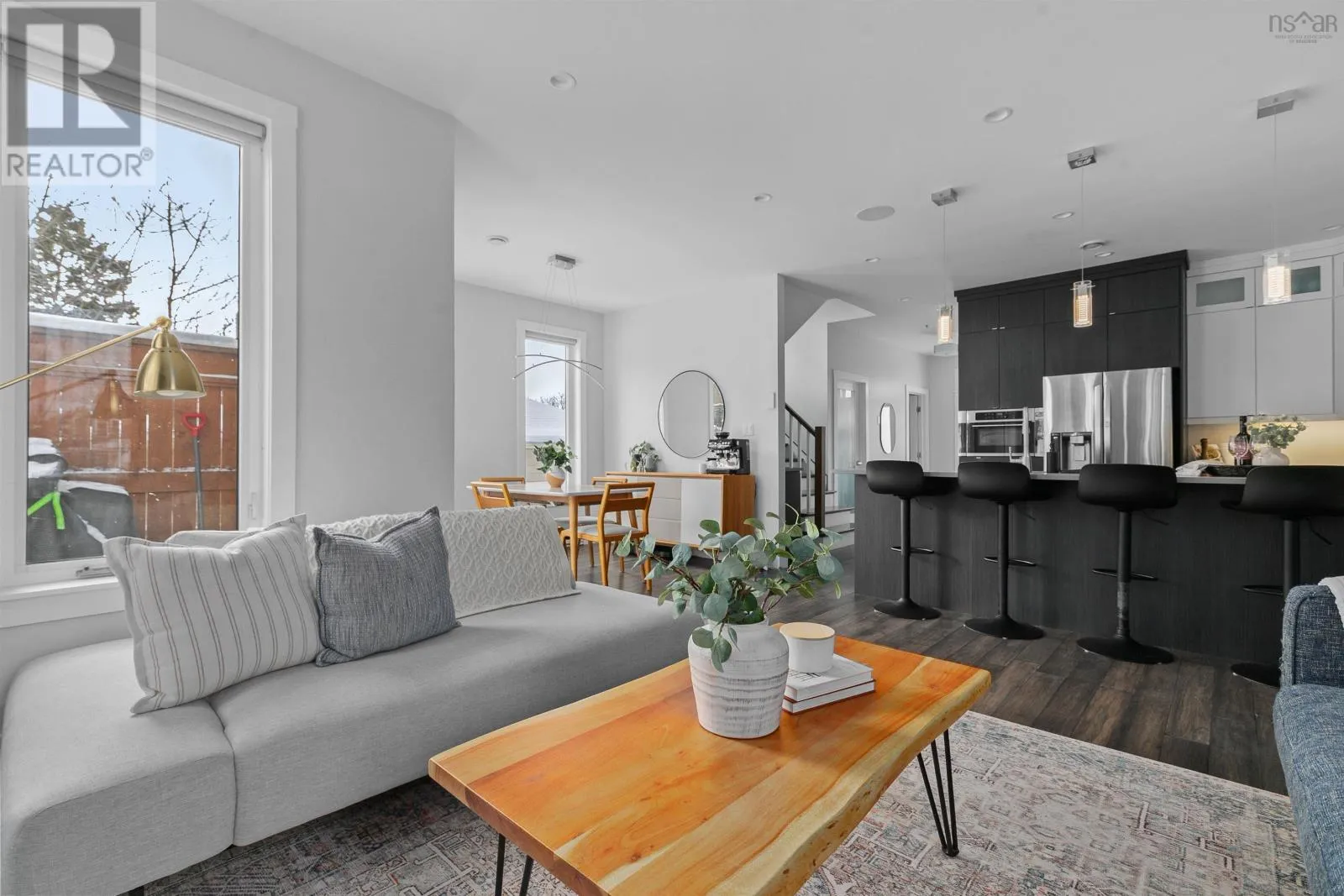 Lady Hammond Rd. to Basinview Drive Welcome to this architecturally impressive residence in Halifaxs coveted North End, just moments from the iconic Hydrostone Market, Needham Park, and some of the citys most beloved local amenities. Offering 3 beds, 3 baths, this home is a rare blend of urban convenience and classic Halifax charm. The location delivers effortless access in and out of the city while maintaining a vibrant, community-driven feel. Thoughtfully designed and recently upgraded, the main level is designed for both everyday living and elevated entertaining. A sun-filled open-concept layout is anchored by a cozy oil fireplace, while the chef-inspired kitchen impresses with floor-to-ceiling cabinetry, quartz countertops, an oversized peninsula, and a dedicated serving station. Just off the dining area, step onto the newly constructed deck and pergola (2022), overlooking a large and private, tree-lined backyard retreat complete with a hot tub (2022) and dedicated electrical, an ideal setting for outdoor living and relaxation. Upstairs, the second level offers a serene primary suite featuring a walk-in closet and a spa-like ensuite with double vanities and a custom tiled shower. Two additional bedrooms, filled with natural light, and a well-appointed full bath complete this level. The third floor is a true showpiece, an exceptional lifestyle space featuring a bright family lounge, wet bar, and access to an expansive, newly renovated rooftop terrace (2025/2026). Here, panoramic views of the city and Bedford Basin create a stunning backdrop for entertaining or unwinding at the end of the day. Further enhancing the homes appeal are thoughtful investments in efficiency and comfort, including solar panel installation (2023) and updated heat pump motors (2024). With nearly $85,000 in upgrades, this turn-key property offers a refined balance of design, performance, and location. A rare opportunity to own a like-new, design-forward home in one of Halifaxs most sought-after neighbourhoods. (id:27476)