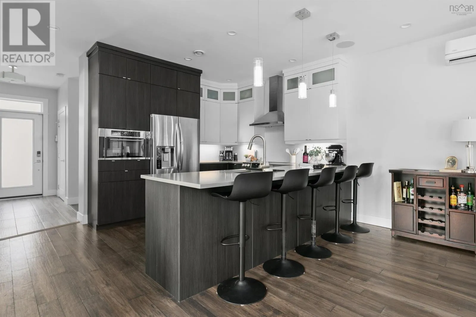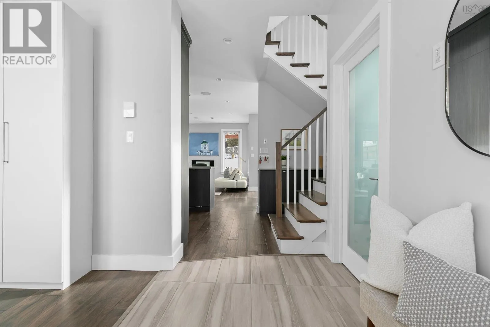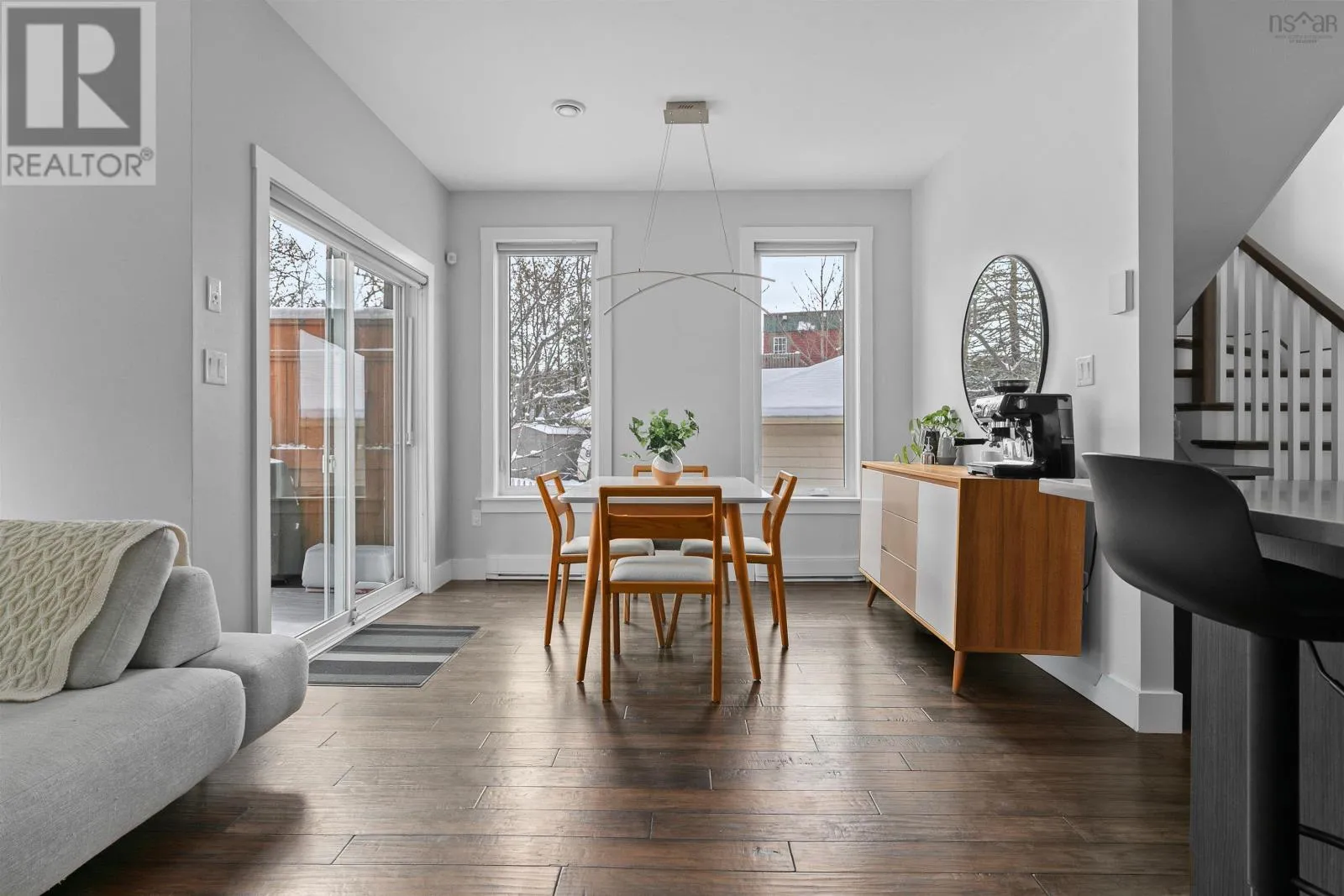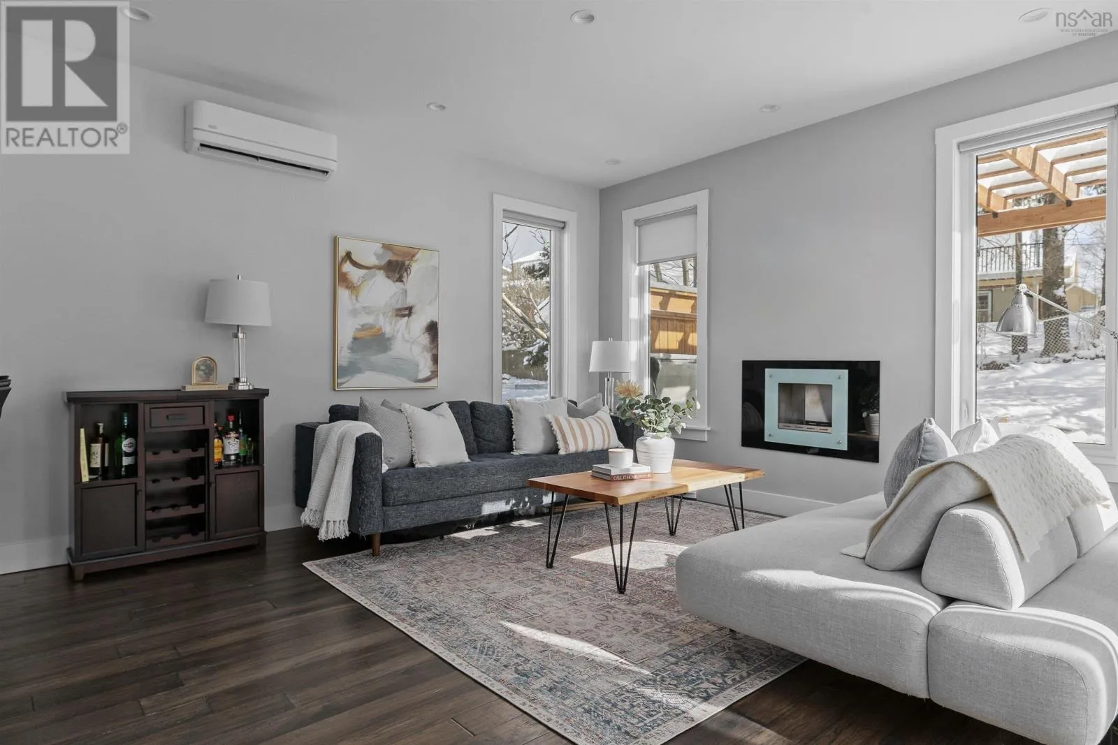 Lady Hammond Rd. to Basinview Drive Welcome to this architecturally impressive residence in Halifaxs coveted North End, just moments from the iconic Hydrostone Market, Needham Park, and some of the citys most beloved local amenities. Offering 3 beds, 3 baths, this home is a rare blend of urban convenience and classic Halifax charm. The location delivers effortless access in and out of the city while maintaining a vibrant, community-driven feel. Thoughtfully designed and recently upgraded, the main level is designed for both everyday living and elevated entertaining. A sun-filled open-concept layout is anchored by a cozy oil fireplace, while the chef-inspired kitchen impresses with floor-to-ceiling cabinetry, quartz countertops, an oversized peninsula, and a dedicated serving station. Just off the dining area, step onto the newly constructed deck and pergola (2022), overlooking a large and private, tree-lined backyard retreat complete with a hot tub (2022) and dedicated electrical, an ideal setting for outdoor living and relaxation. Upstairs, the second level offers a serene primary suite featuring a walk-in closet and a spa-like ensuite with double vanities and a custom tiled shower. Two additional bedrooms, filled with natural light, and a well-appointed full bath complete this level. The third floor is a true showpiece, an exceptional lifestyle space featuring a bright family lounge, wet bar, and access to an expansive, newly renovated rooftop terrace (2025/2026). Here, panoramic views of the city and Bedford Basin create a stunning backdrop for entertaining or unwinding at the end of the day. Further enhancing the homes appeal are thoughtful investments in efficiency and comfort, including solar panel installation (2023) and updated heat pump motors (2024). With nearly $85,000 in upgrades, this turn-key property offers a refined balance of design, performance, and location. A rare opportunity to own a like-new, design-forward home in one of Halifaxs most sought-after neighbourhoods. (id:27476)