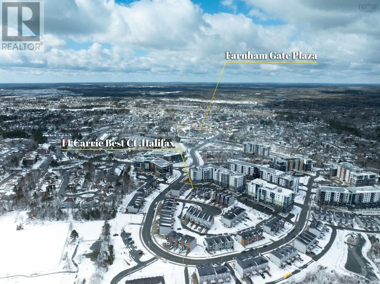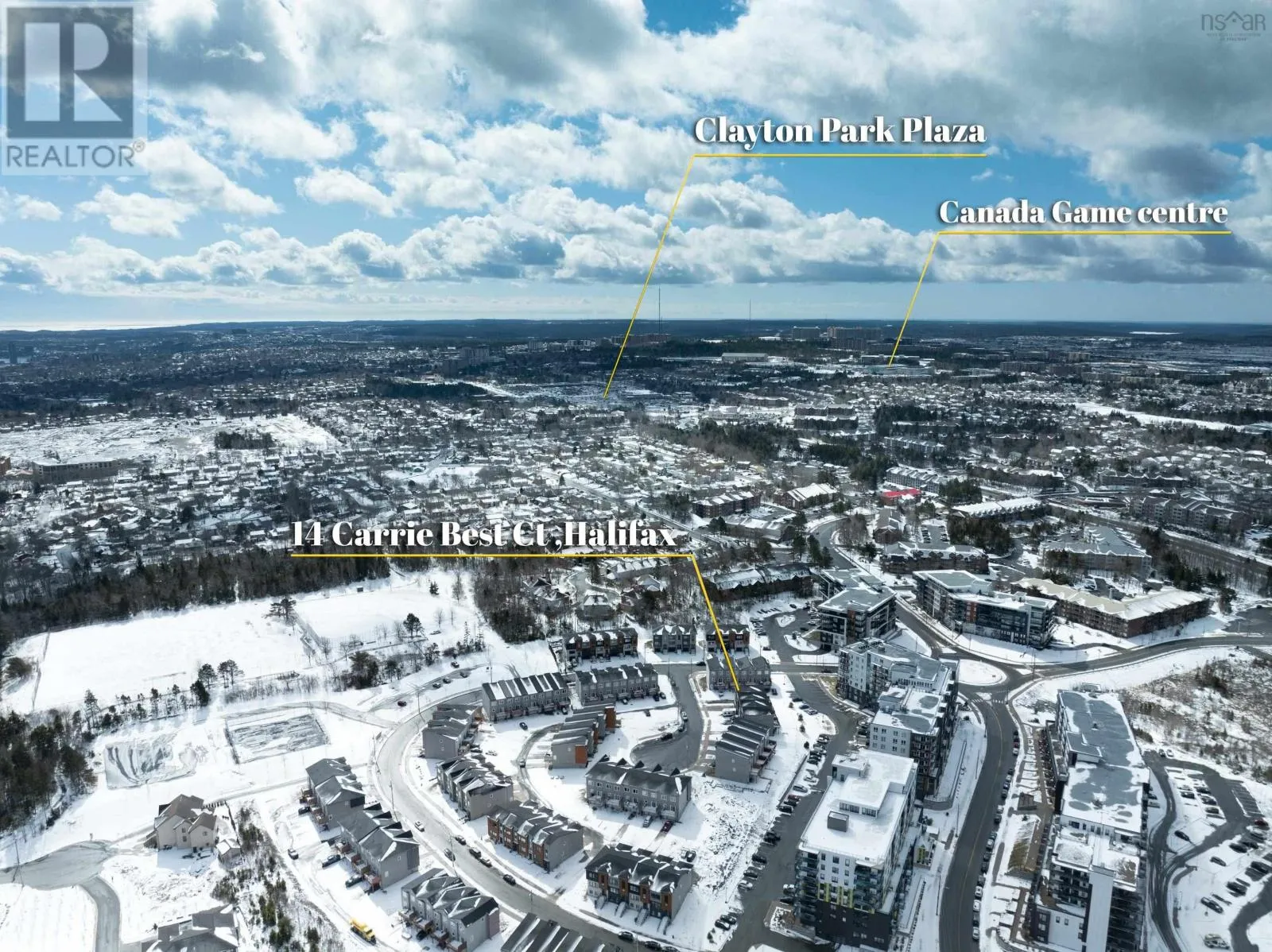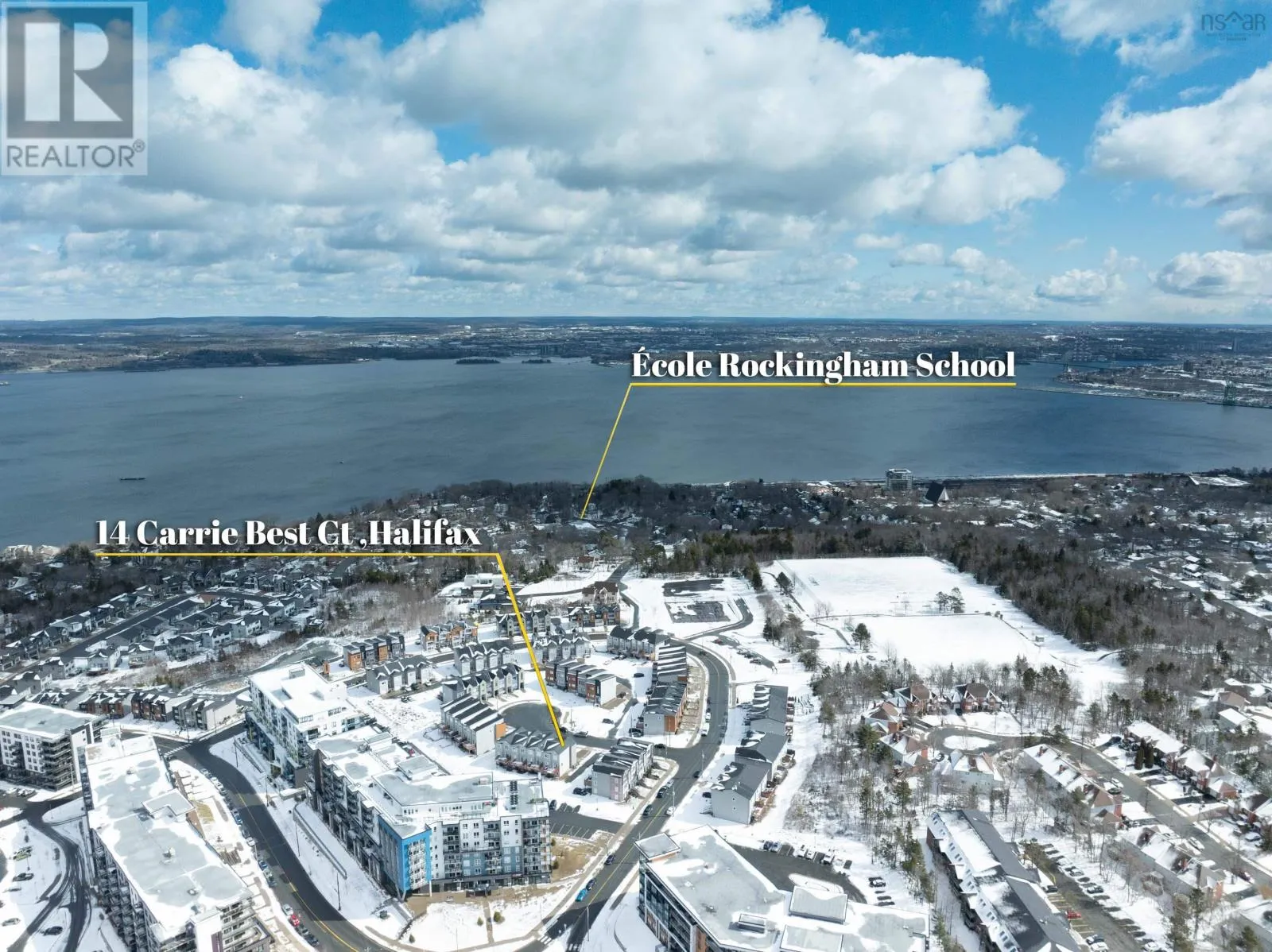 Dunbrack St.to Wentworth Dr.to Eliza Ritchie Cres.to Carrie Best Crt Welcome to 14 Carrie Best Court, a stunning end-unit townhouse nestled in the highly sought-after Rockingham South development. This property offers the perfect blend of modern luxury and suburban tranquility. As you arrive, the double-wide brushed concrete driveway leads to a built-in garage, ensuring you stay warm and dry year-round. Inside, the home boasts a completely carpet-free interior, featuring gleaming hardwood throughout the main and upper levels with high-quality laminate gracing the lower floor. A spacious living room flows seamlessly into a chef-inspired kitchen, complete with premium granite countertops, a large hard-surface island, and sleek stainless steel appliances. Adjacent to the dining area, you can step out to the deck to enjoy your morning coffee. For ultimate efficiency, a fully ducted heat pump provides cost-effective heating and cooling throughout every season. The upper level serves as a private sanctuary, featuring a generous primary suite with a walk-in closet and a 3-piece ensuite. Two additional bedrooms with ample closet space and a conveniently located laundry room complete this floor. The lower level offers a large fourth bedroom and a full bathroom, providing an ideal getaway for guests or a growing family. Perfectly positioned just minutes from the amenities of Clayton Park and only 15 minutes to downtown Halifax, this move-in-ready home allows you to enjoy the vibrant lifestyle of Halifaxs most exciting neighborhood. (id:27476)