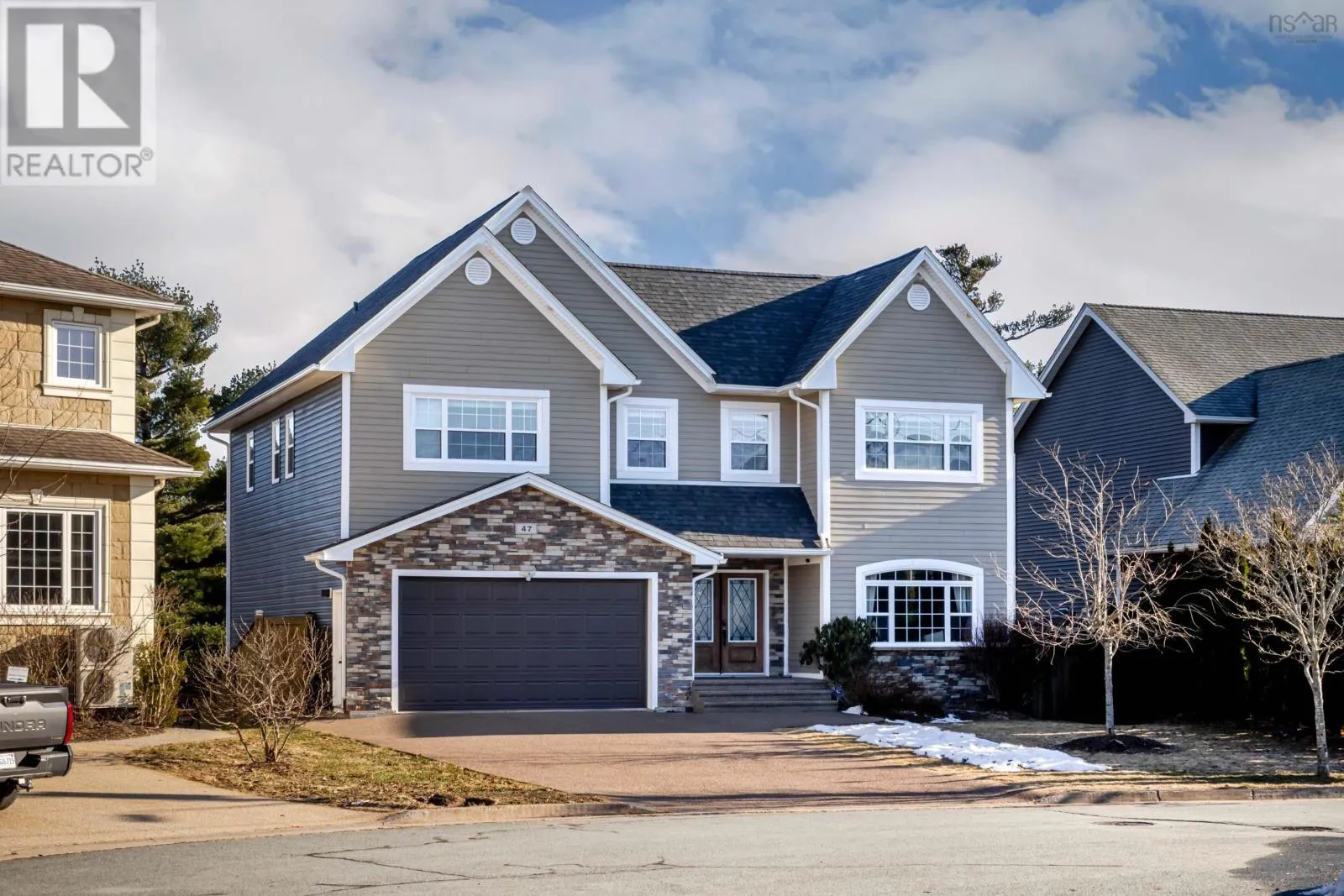 Starboard Dr. to Transom Dr. to Crozier Ct. Welcome to 47 Crozier Court, a rare and expansive seven-bedroom executive two-storey home situated on a prime cul-de-sac and backing onto a serene, private greenbelt. This residence is designed for the modern lifestyle, offering unparalleled versatility for large families, dedicated home offices, and extended guest stays. The main level invites you into a bright, open-concept floor plan perfect for entertaining, complemented by a private living room for quiet relaxation. The gourmet kitchen is enhanced with smart lighting, while the entire homes climate is effortlessly managed by a fully ducted heat pump. The upper level is impressively scaled with five spacious bedrooms, including a primary retreat featuring a custom walk-in closet and a luxurious five-piece ensuite. The fully finished walk-out lower level serves as a fantastic getaway or secondary living suite, boasting two additional bedrooms and a convenient extra kitchen perfect for hosting summer gatherings. This level offers peak comfort with hydronic in-floor radiant heating with electric boiler and a supplemental ductless heat pump installed in 2025 for localized climate control. Step outside into your private backyard oasis, where a massive extended deck leads down to beautiful concrete stonework and a professional landscaping package complete with a hot tub. Recent high-value upgrades provide ultimate peace of mind, including a brand-new hot water tank replaced in 2026, a new deck fence for added modern elements installed in 2024, and a robust 400-amp electrical service. An attached double garage and an exposed aggregate driveway provide ample storage and parking spots for a large family. This meticulously maintained home offers a lifestyle of comfort and convenience that is truly hard to find in today's market. (id:27476)