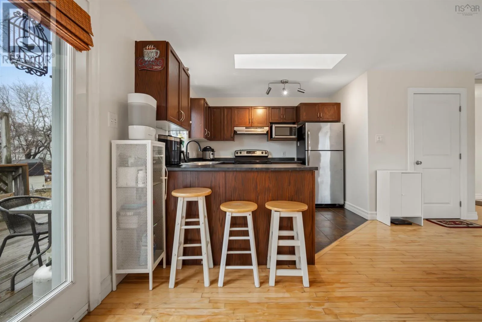 Herring Cove Road to Hartlen Ave Welcome to 17B Hartlen Avenue, a modern semi-detached split-entry home located in the heart of the desirable Spryfield community. This well-maintained property features 3 bedrooms and 1.5 bathrooms, offering a functional and versatile layout ideal for a wide range of buyers. The main level boasts a bright and inviting living room with a convenient common closet, an open-concept four-appliance kitchen with a dishwasher hookup option enhanced by a skylight, and a dining area with patio doors leading to the rear deck, along with a convenient half-bath. The lower level offers a spacious primary bedroom with a walk-in closet, two additional bedrooms, a full bathroom, and a dedicated laundry area. Outside, the rear deck overlooks a large, lush, and quiet backyard, finished with clotheslineperfect for relaxing or entertaining. The front driveway accommodates up to three vehicles for residents and guests. Built in 2008, this home has seen several recent upgrades, including a new kitchen countertop with range hood (2026), electric hot water tank (2026), front porch improvements (2025), installation of a smart energy-efficient thermostat (2026), fresh interior paint (2026), and hardwood flooring repairs and restoration (2026). Additional updates have also been completedplease refer to supporting documents for full details. Conveniently located just 15 minutes from downtown Halifax, the property offers excellent access to a wide range of amenities, including public transit, schools, restaurants, cafés, pubs, banks, places of worship, recreation centres, and major grocery stores. The home is only a 3-minute walk to a nearby bus stop with access to major routes, and within a 5-minute walk to amenities such as No Frills, Canadian Tire, Dollarama, McDonalds, Tim Hortons, Sobeys, and NSLC. For outdoor enthusiasts, the property is within a 10-minute walk to Long Lake and its popular trails. Commuters will also appreciate being just a 5-minute drive from major highways. (id:27476)